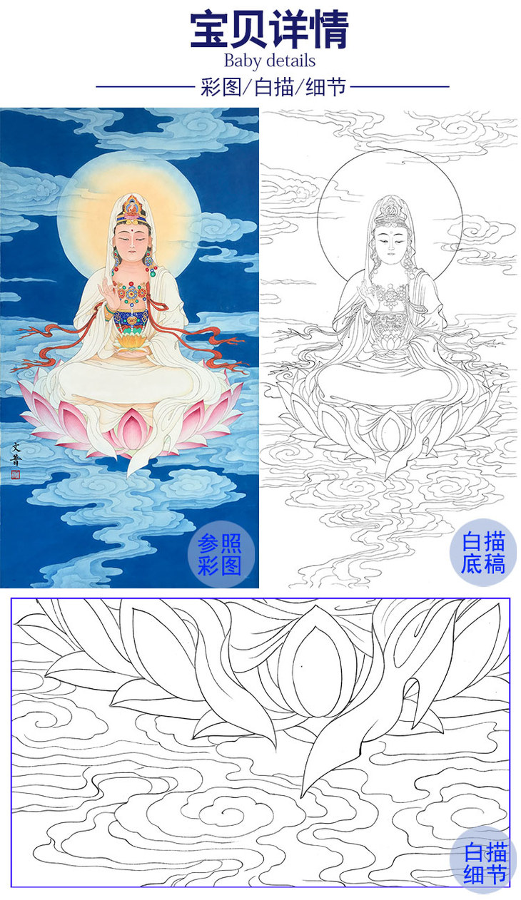 於文普竖幅工笔人物观音白描底稿-佛像菩萨-WP20