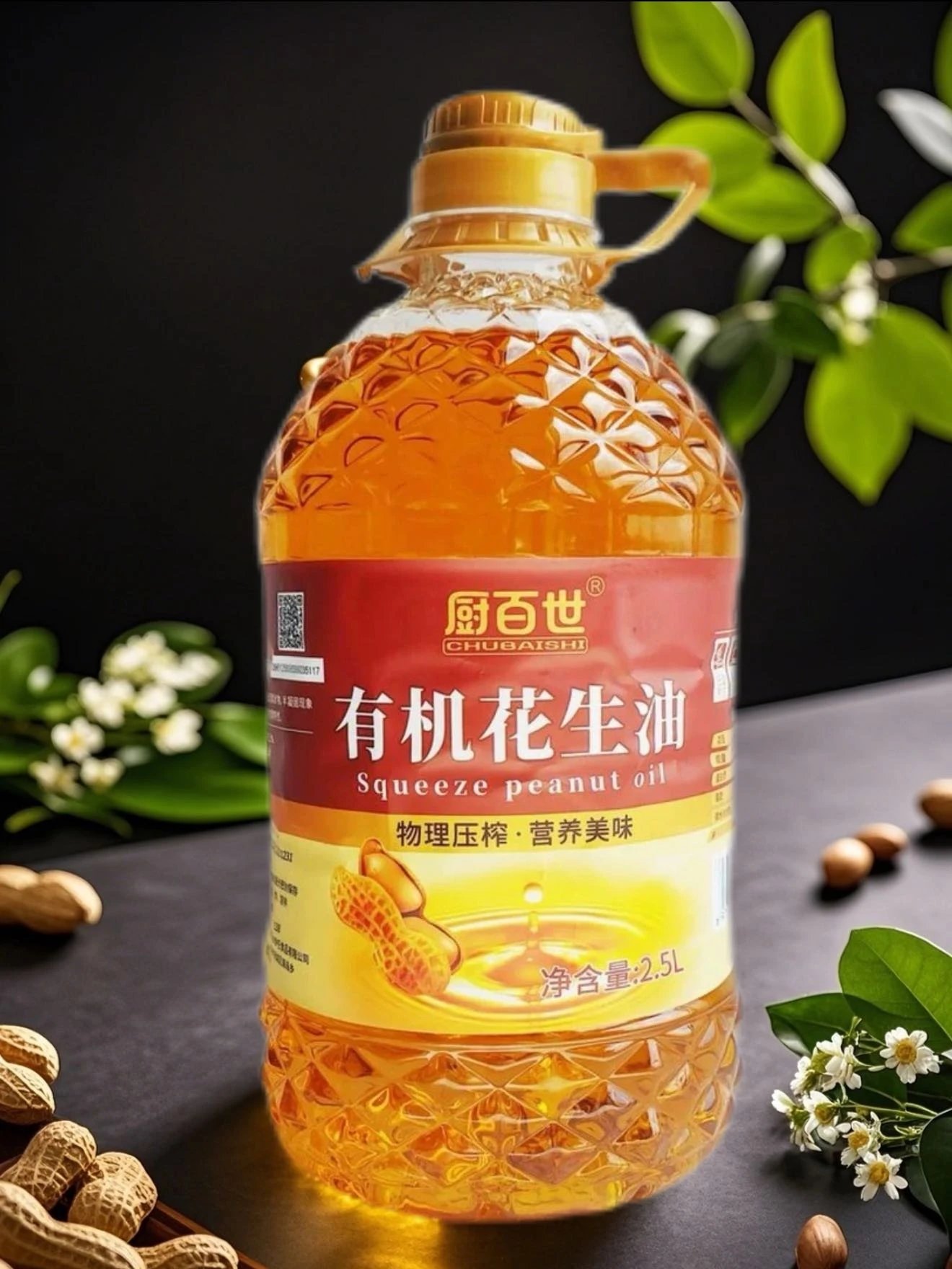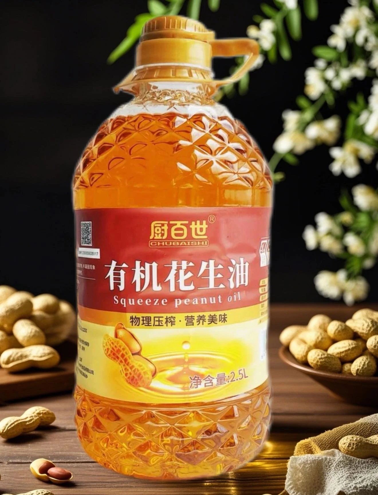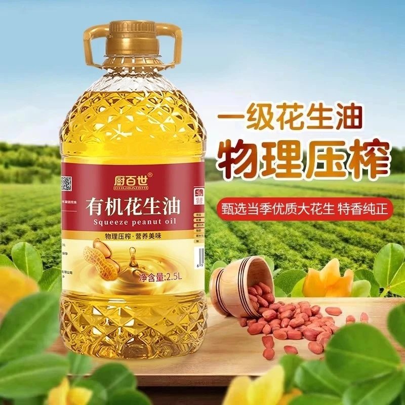 中秋福利,有机认证花生油,49.9抢2.5L装厨百世有机花生油 100%纯花生 物理一级压榨油 只榨取第一道花生原油 健康好油更健康更安全基地直邮