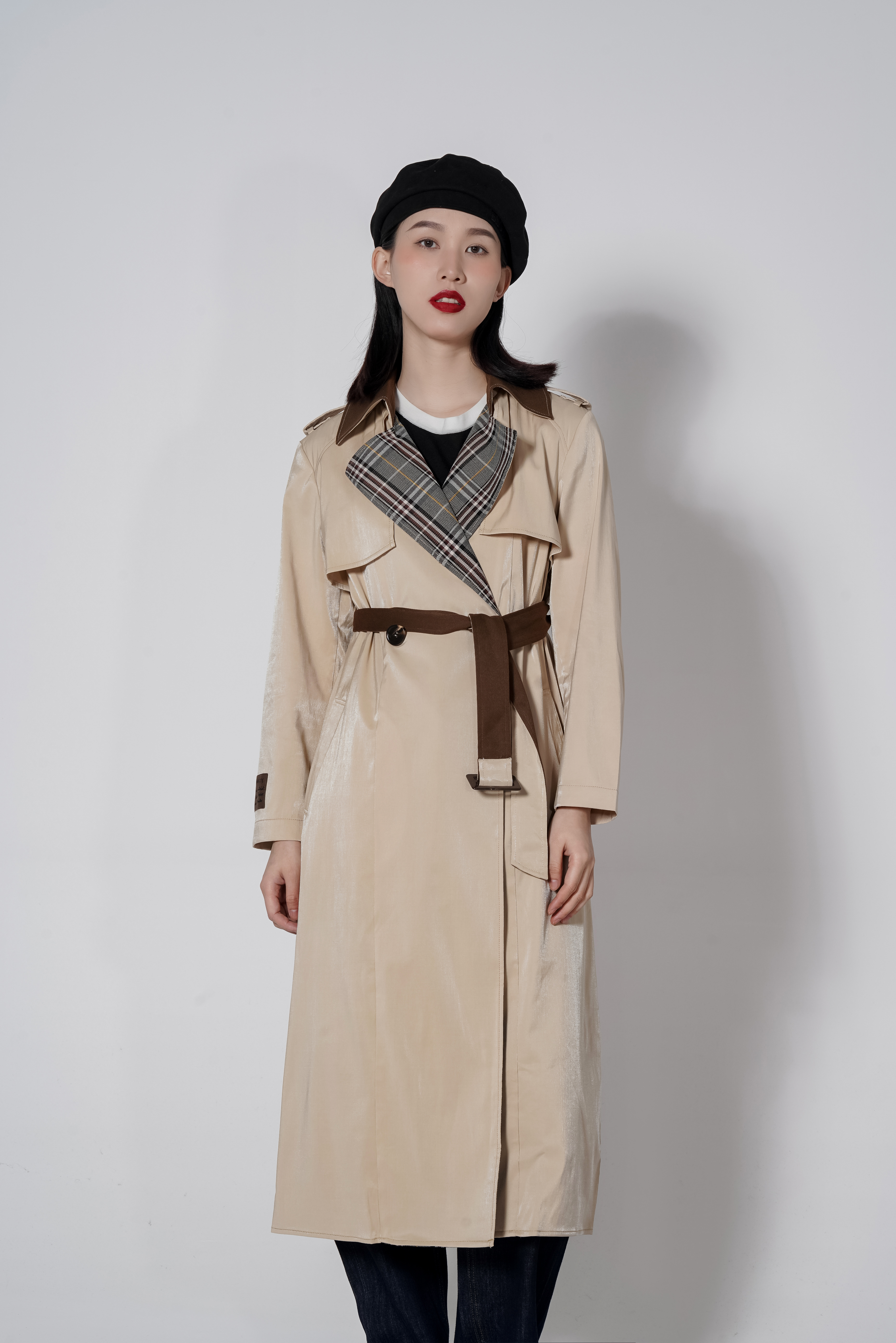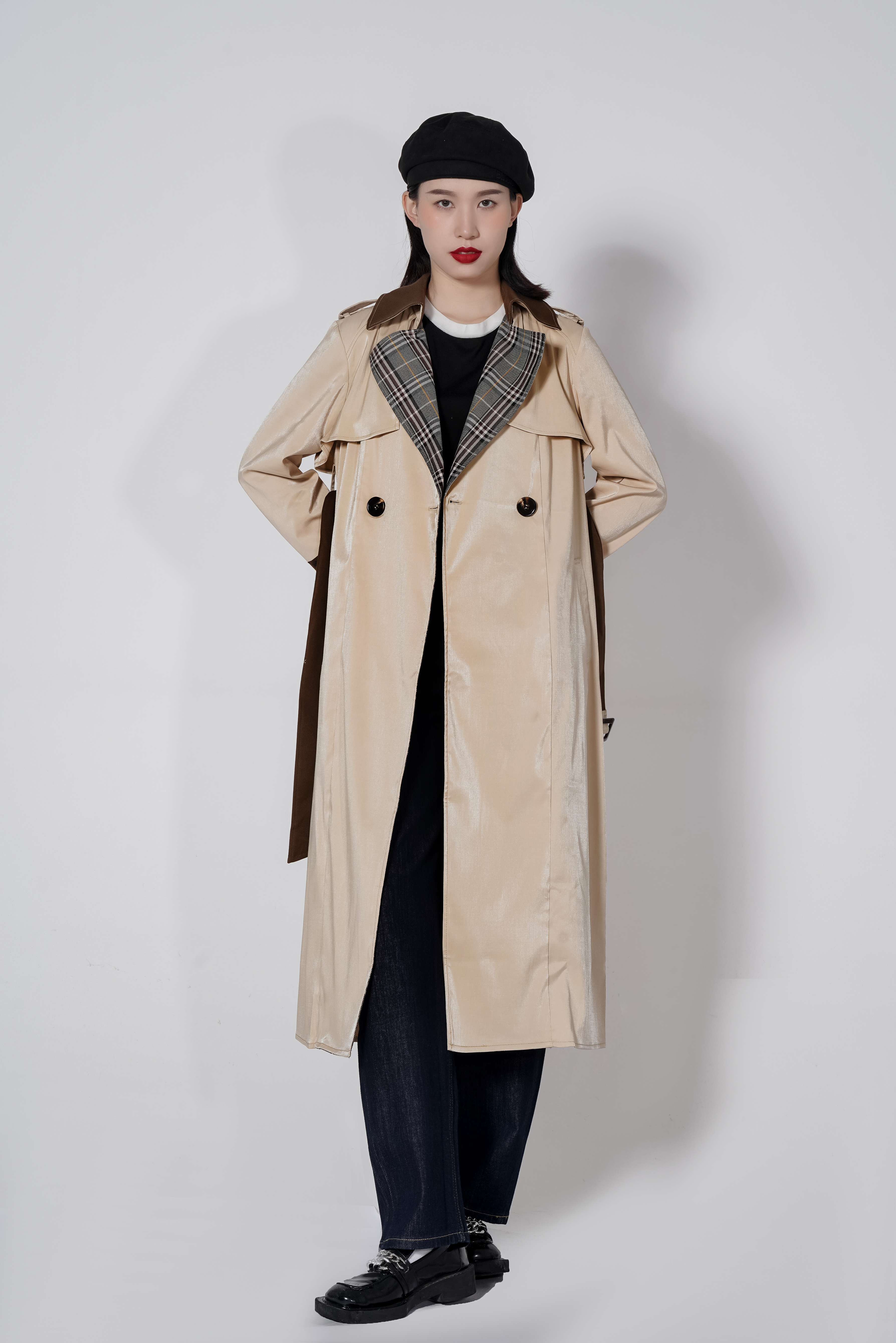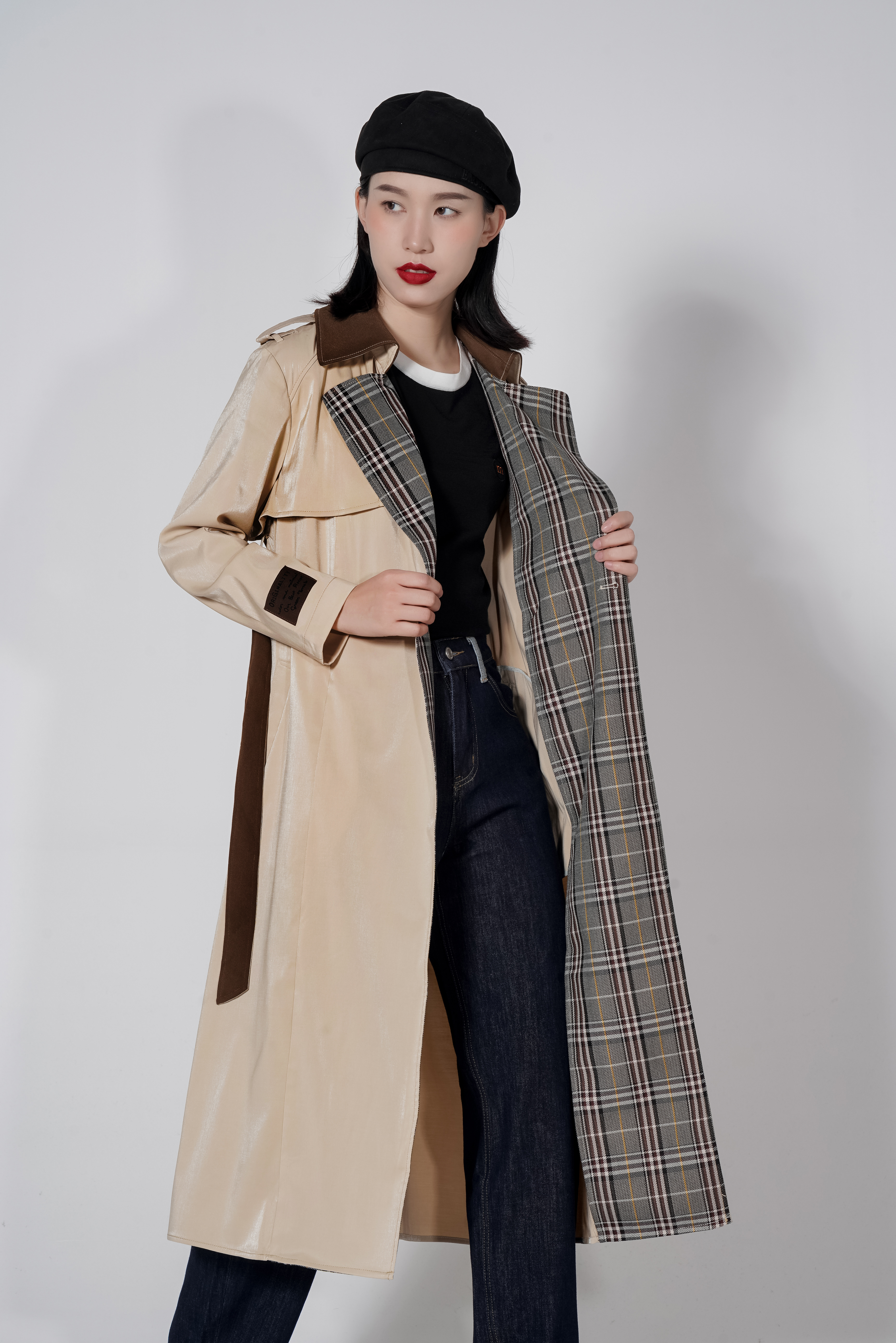 【1折】S1臣禾 拼接格纹撞色风衣K213011377