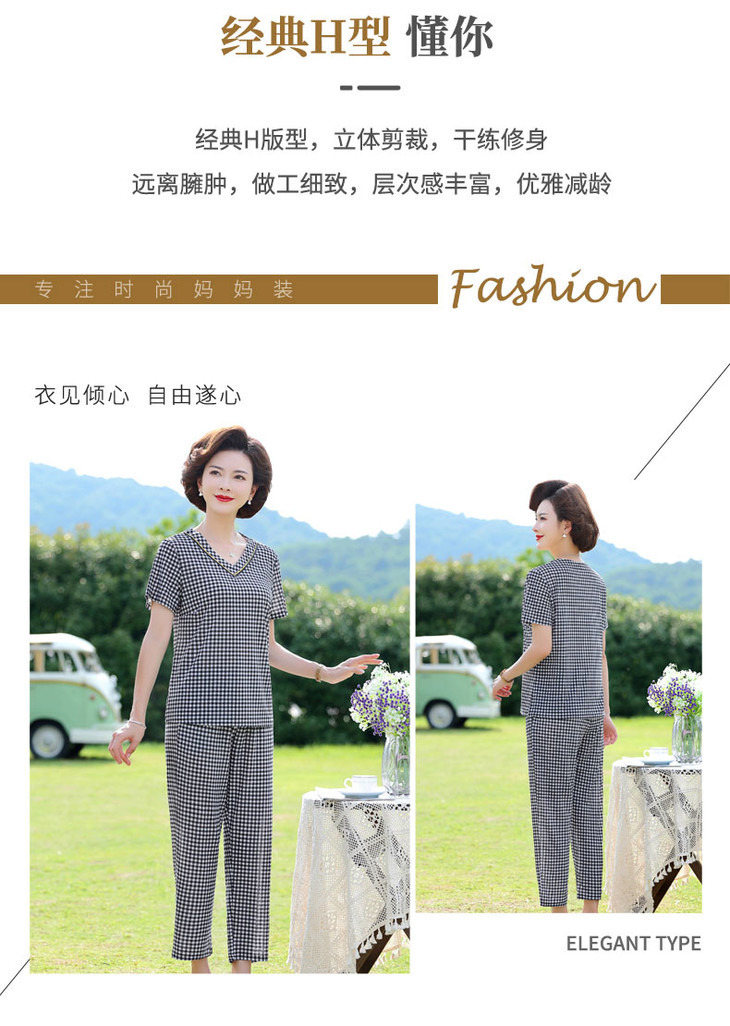 TM676504030876 洋气夏装套装女2022新款中老年人夏季短袖t恤上衣两件套