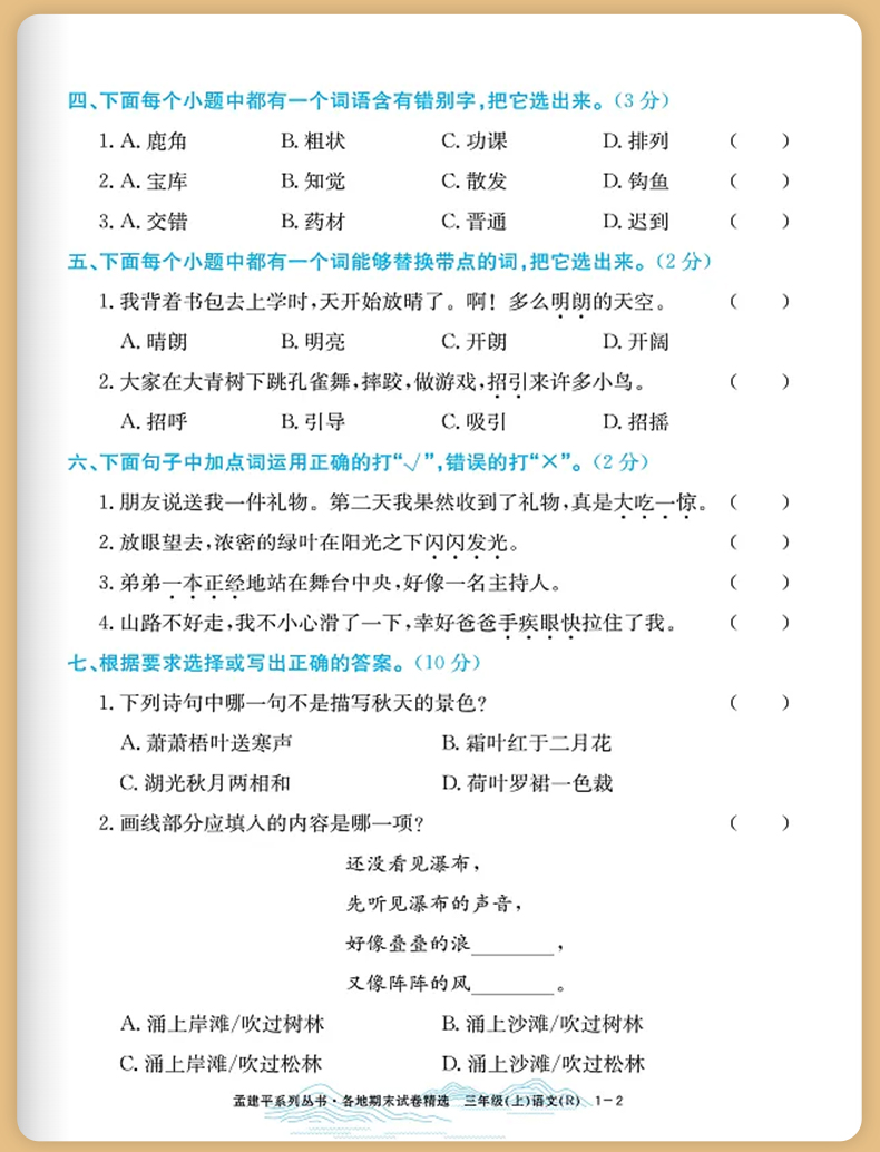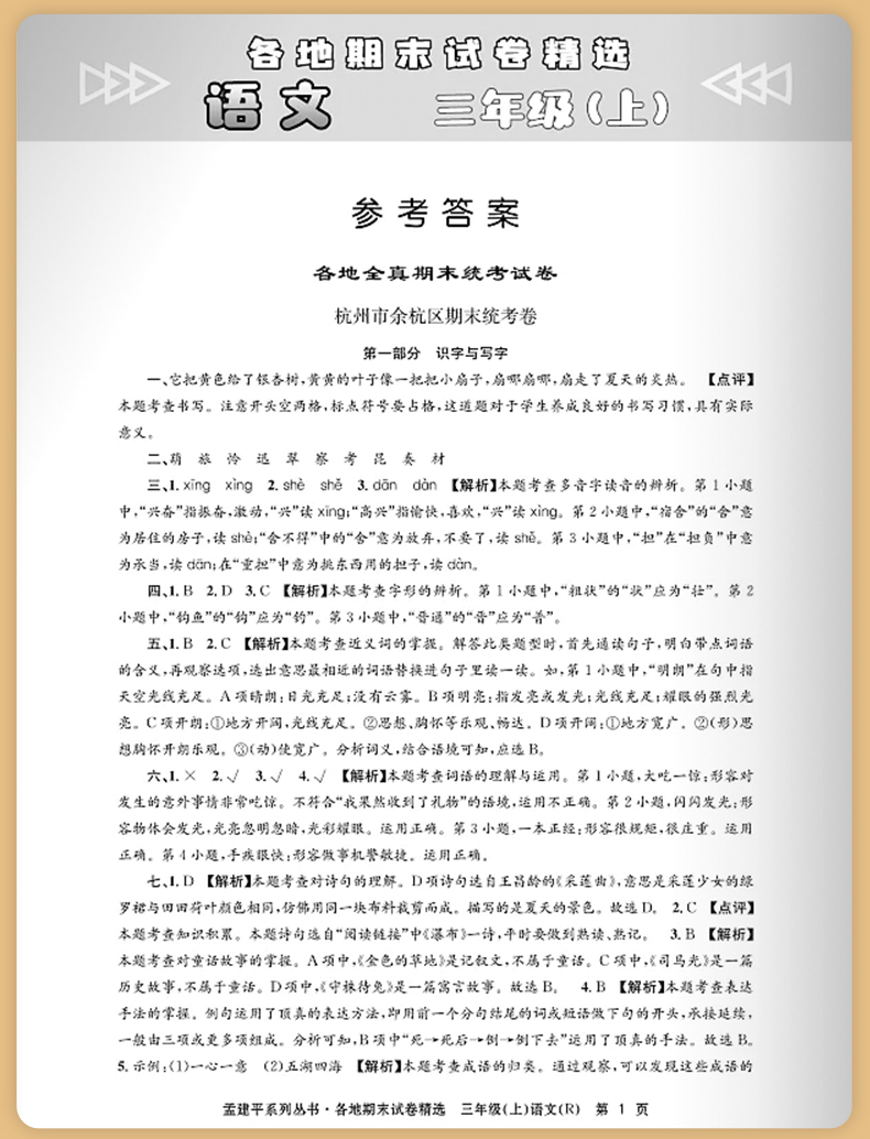 2025秋孟建平小学各地期末上册复习测试卷全套人教版小学期末卷