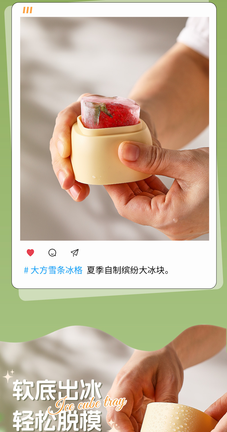 【超值19.9到手4个!!】新款方形冰块模具 食品级软胶按压式制冰膜具 威士忌大冰格雪糕模具-QQ