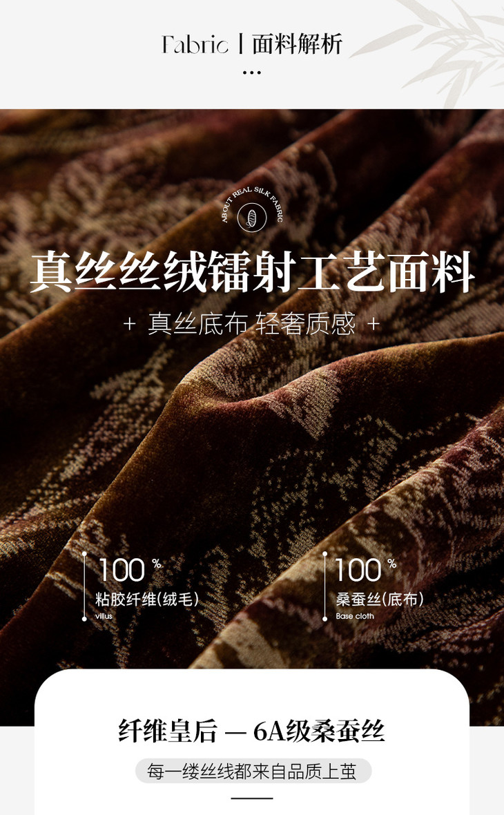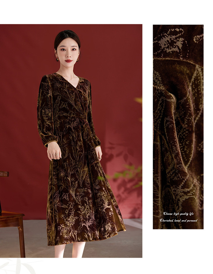 丝绒印花v领中长款优雅,重磅桑蚕丝连衣裙SM-82501829
