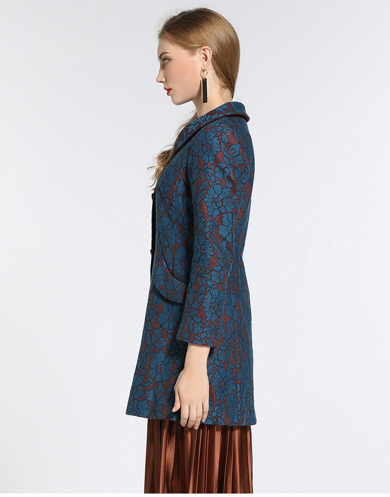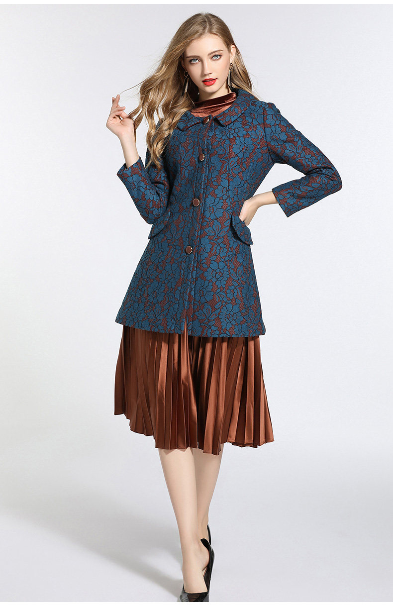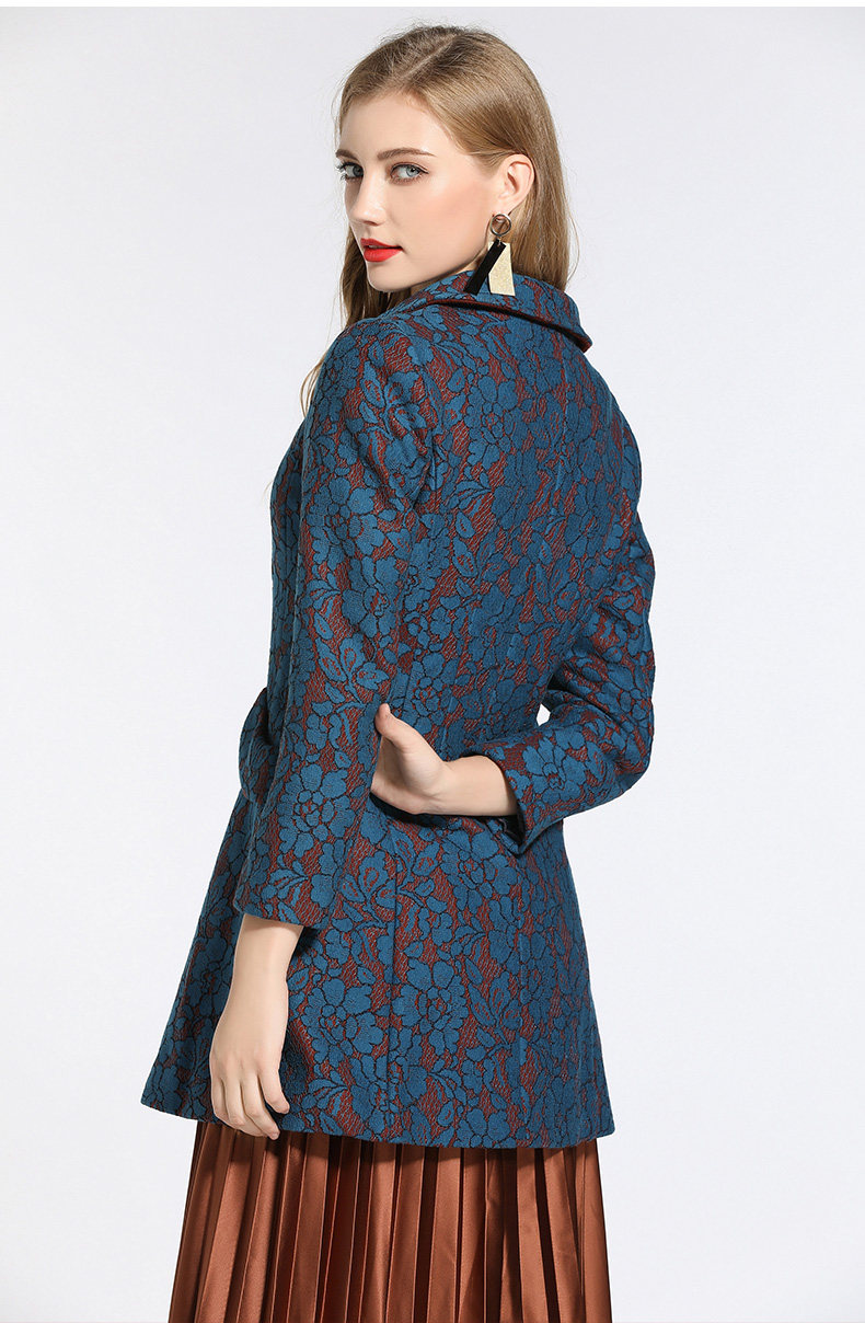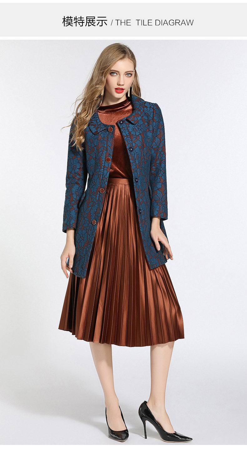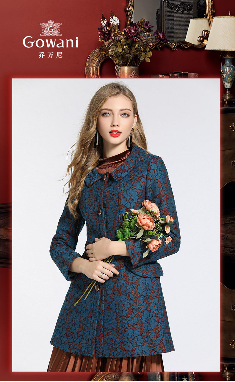 乔万尼冬季蕾丝修身娃娃领毛呢大衣外套E144A865