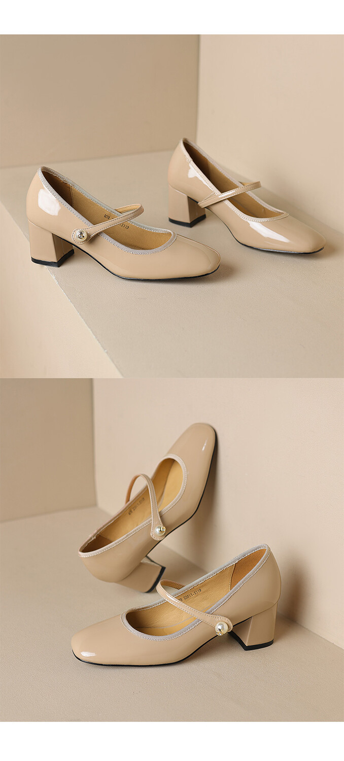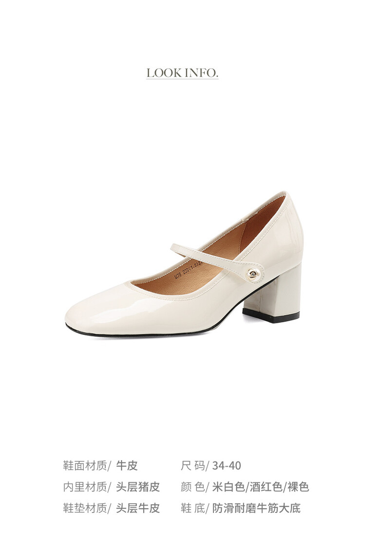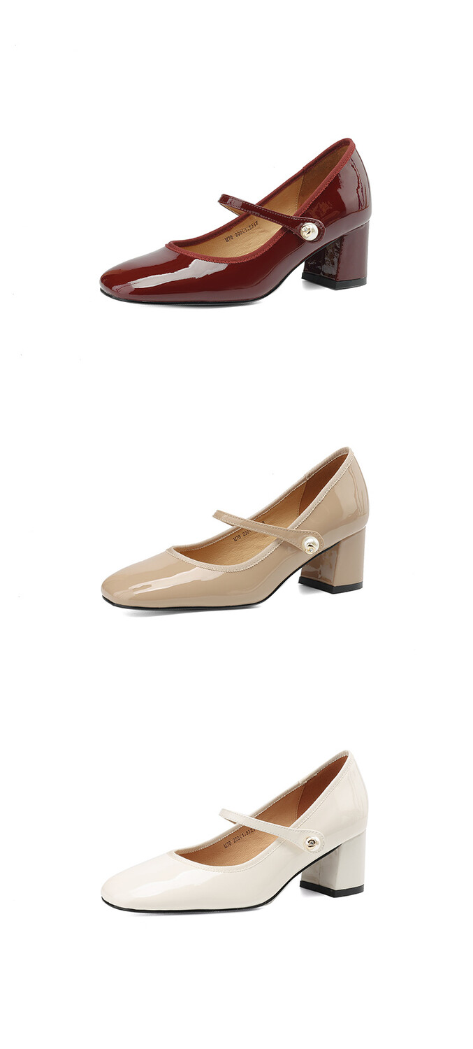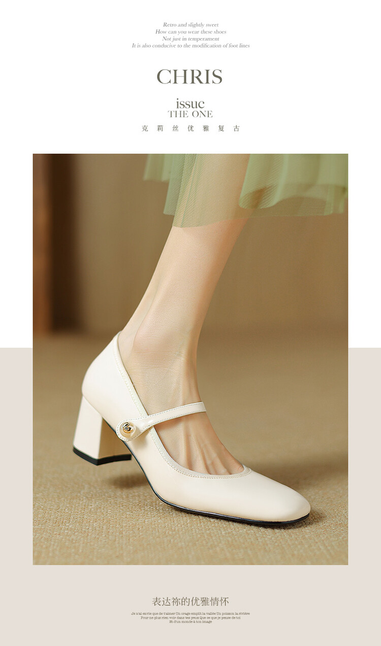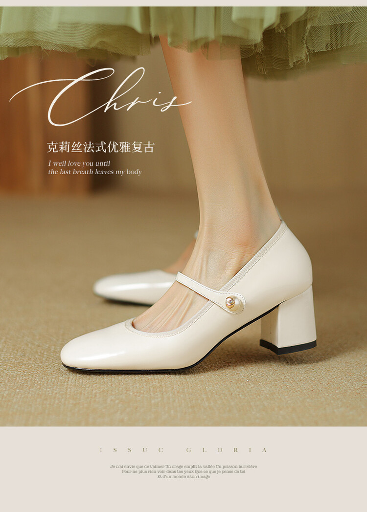 【预售5天】春夏新款单鞋女一字扣,带法式复古牛皮拼接粗跟女鞋DYJ&CM7804