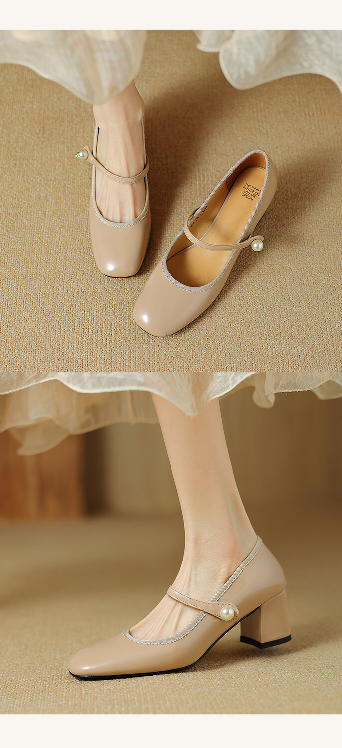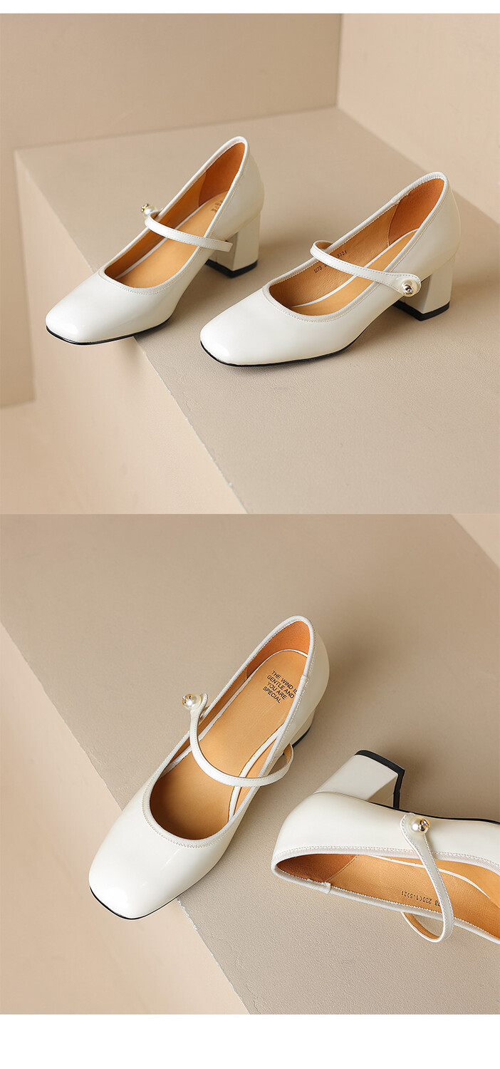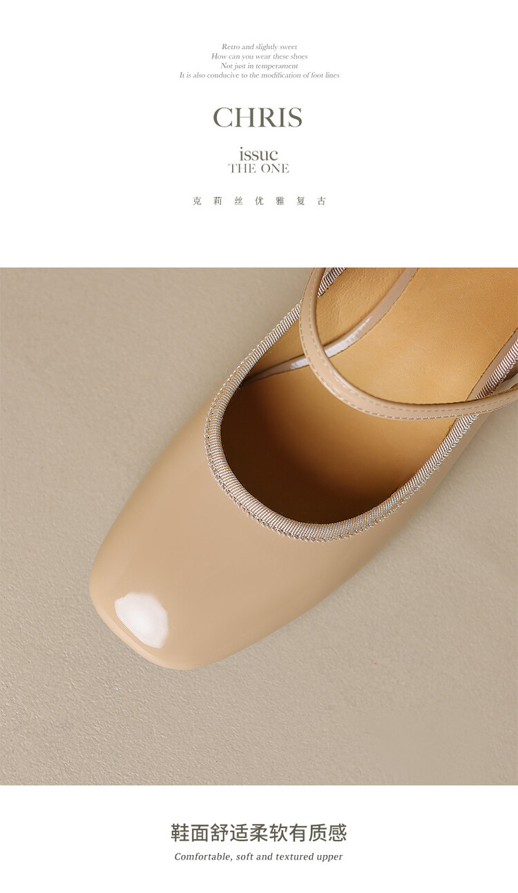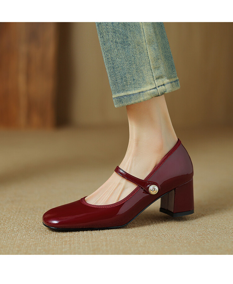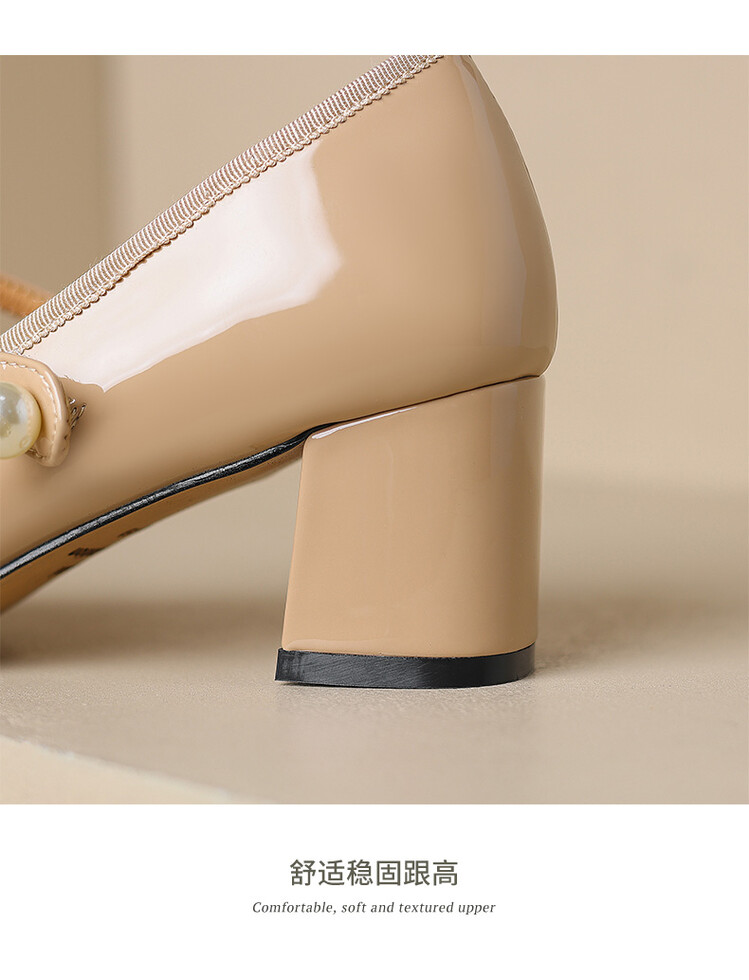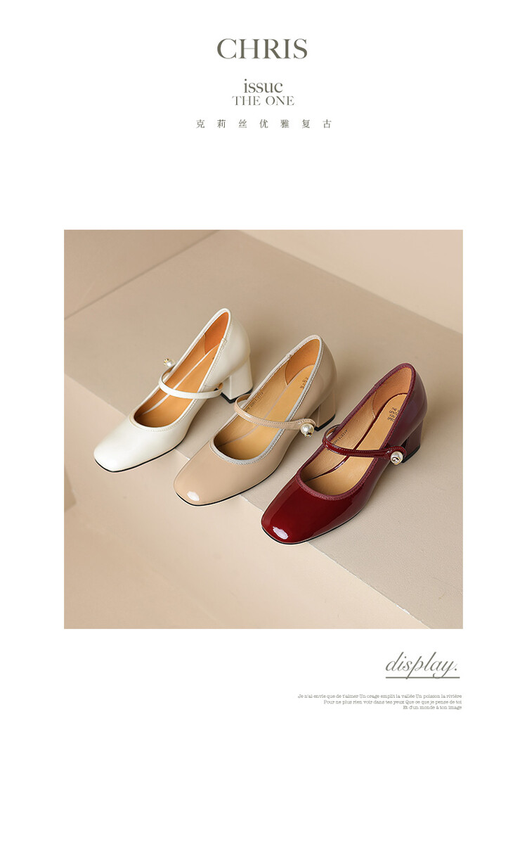 【预售5天】春夏新款单鞋女一字扣,带法式复古牛皮拼接粗跟女鞋DYJ&CM7804