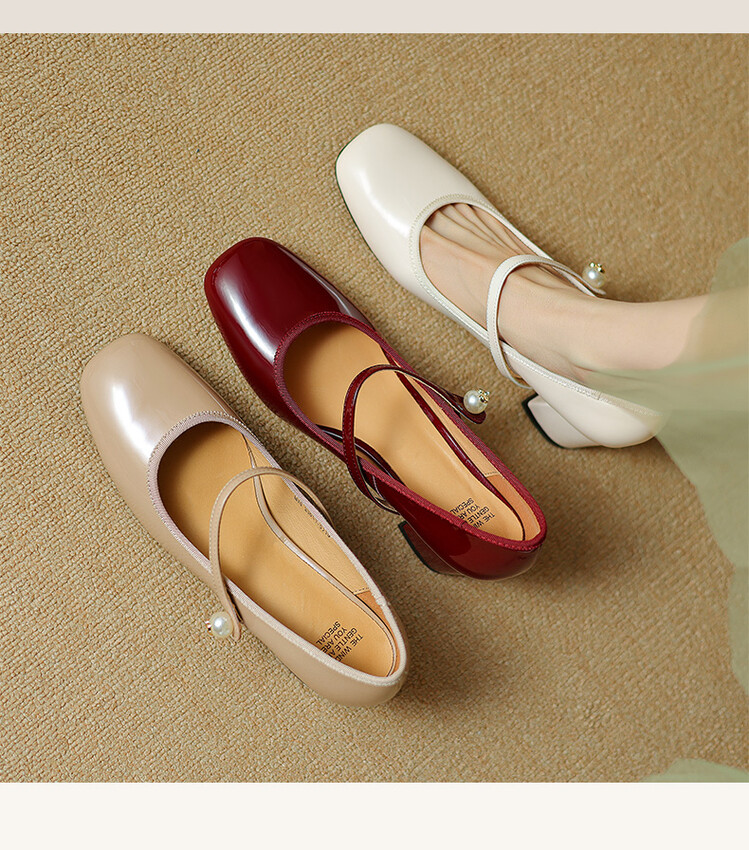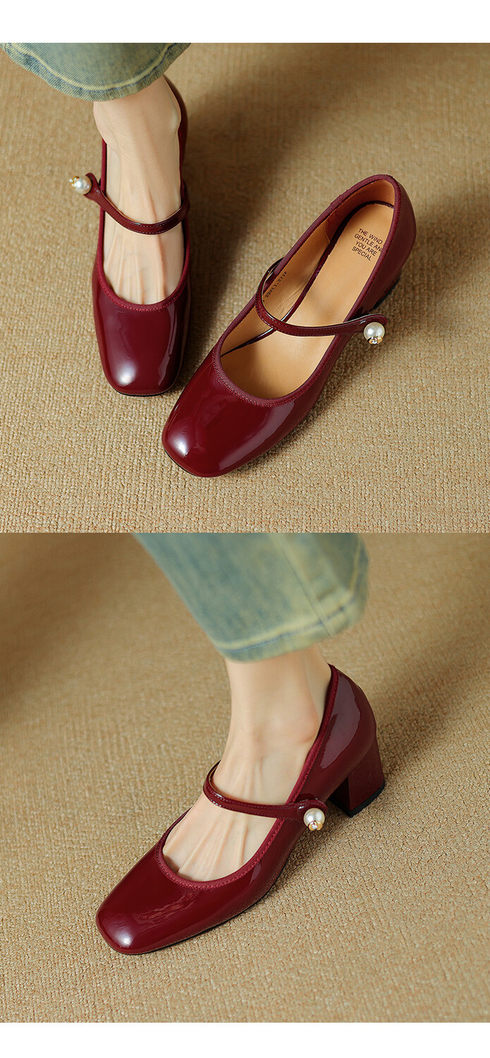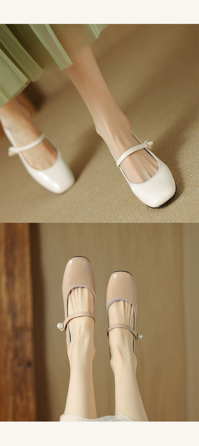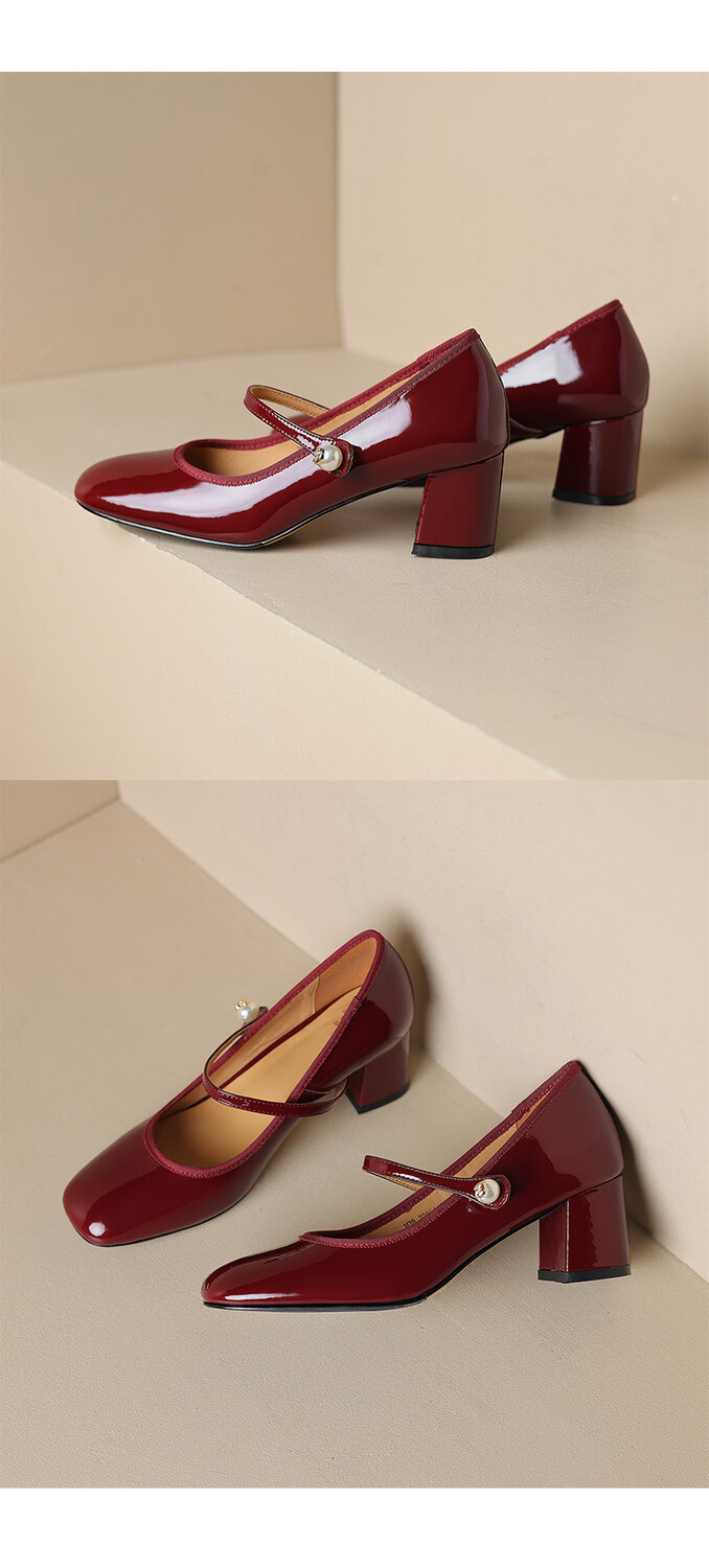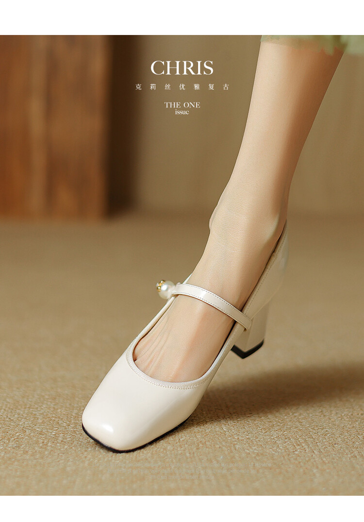 【预售5天】春夏新款单鞋女一字扣,带法式复古牛皮拼接粗跟女鞋DYJ&CM7804