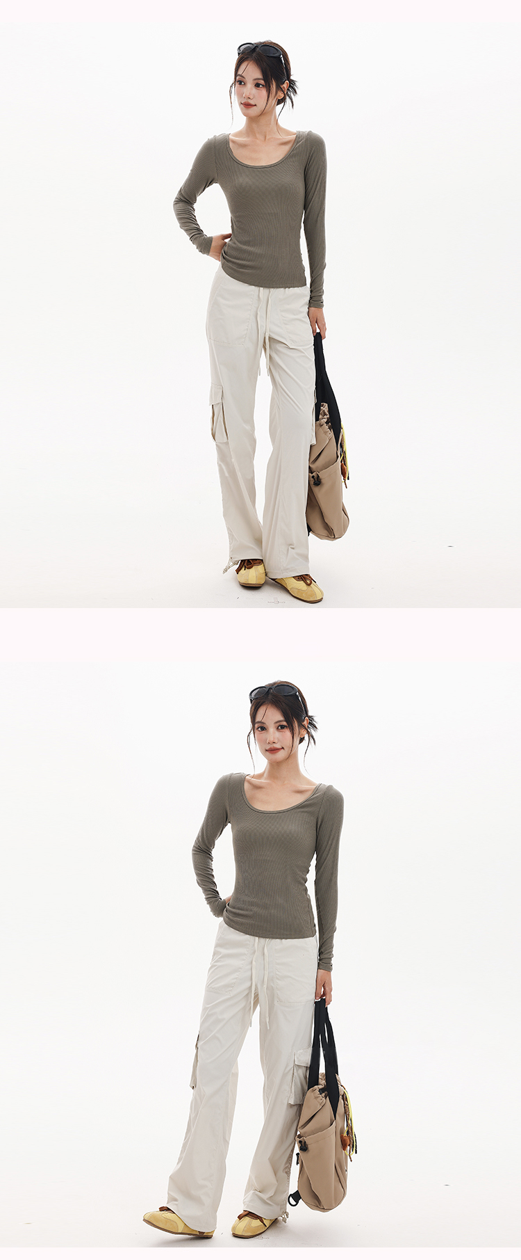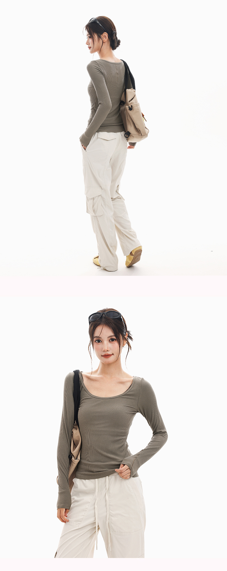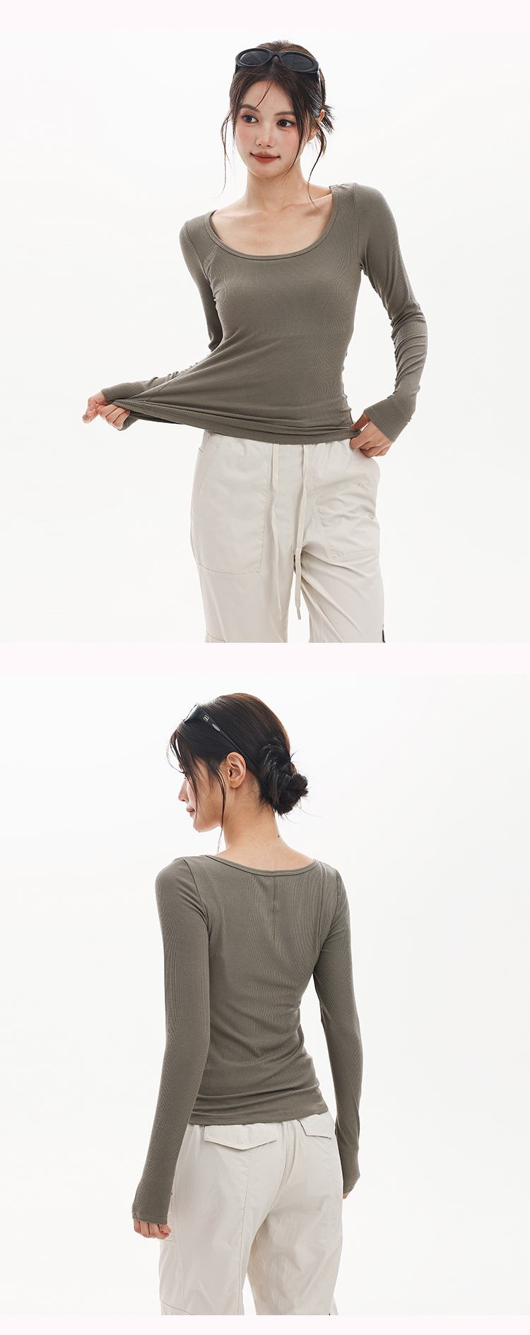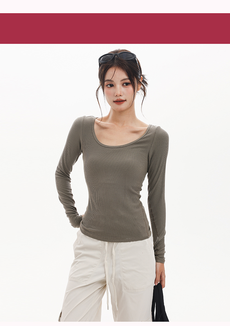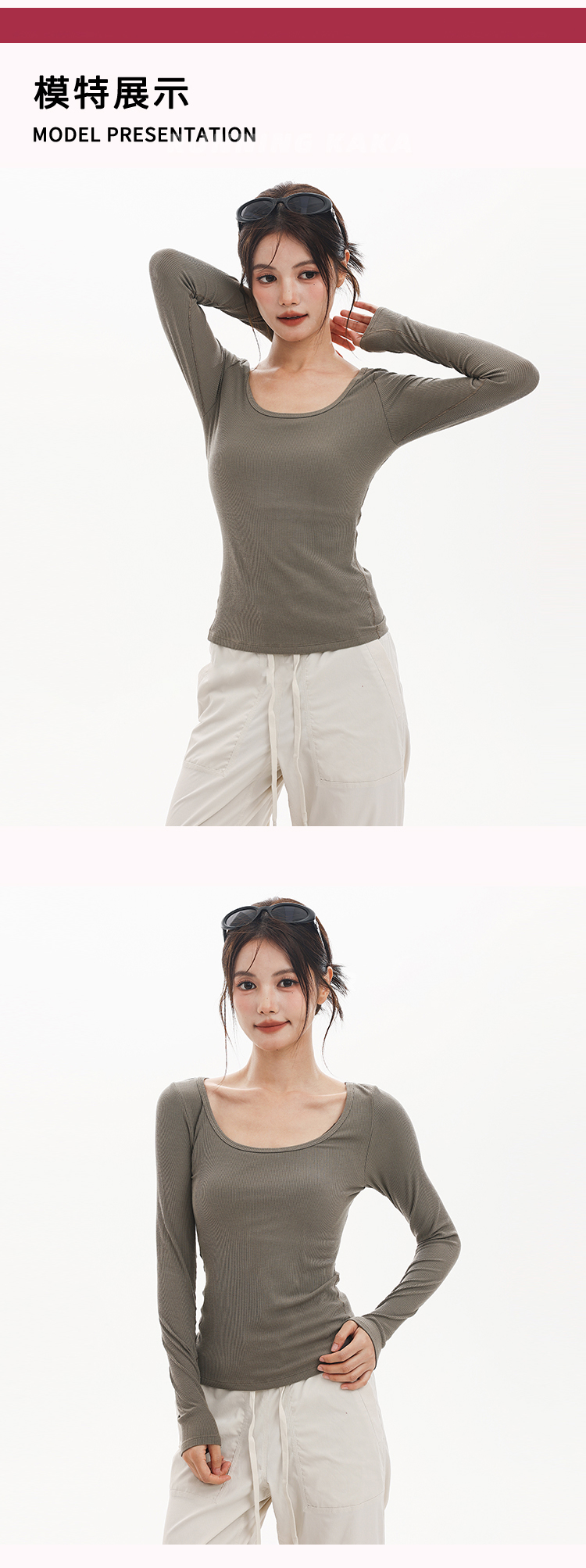 跃牌【周游世界】秋冬新款莫代尔韩系罗纹内搭上衣薄款修身短款长袖T恤TP0767