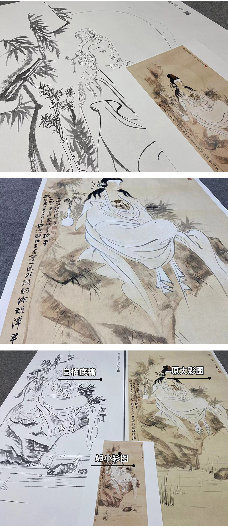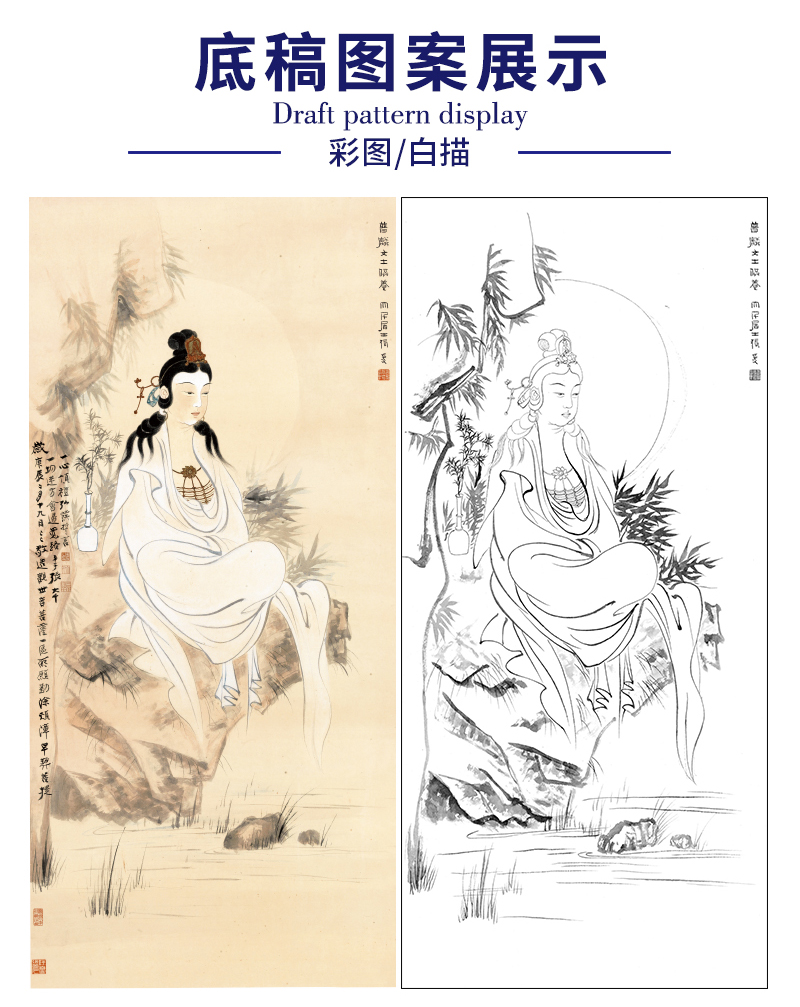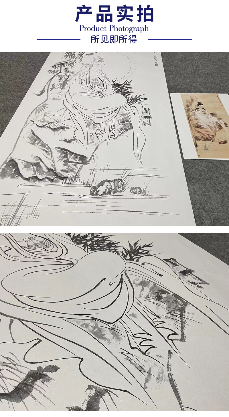 【大彩图】张大千工笔画白描底稿《观音造像》佛像菩萨临摹勾线高清打印稿QD53