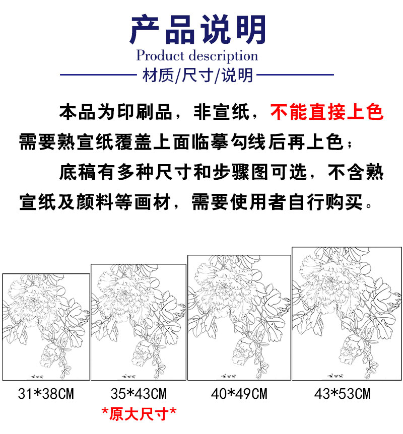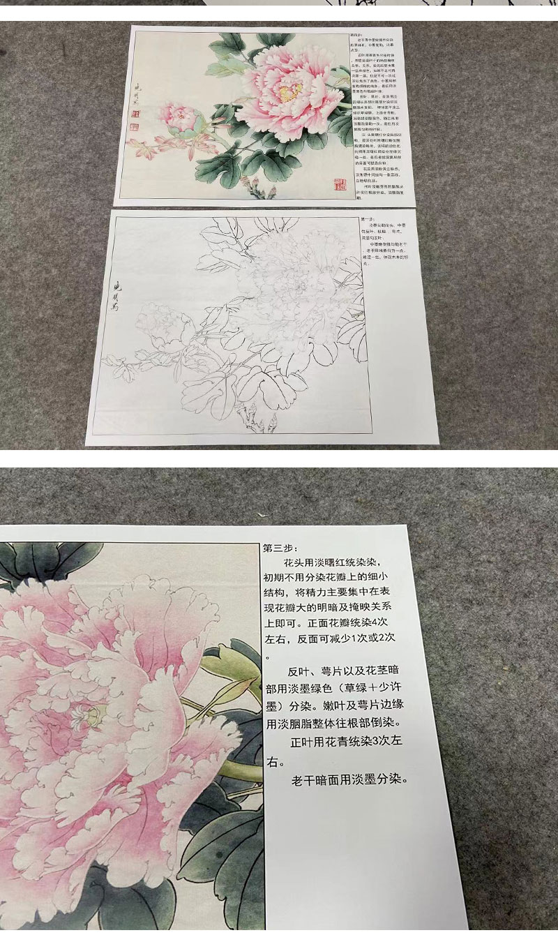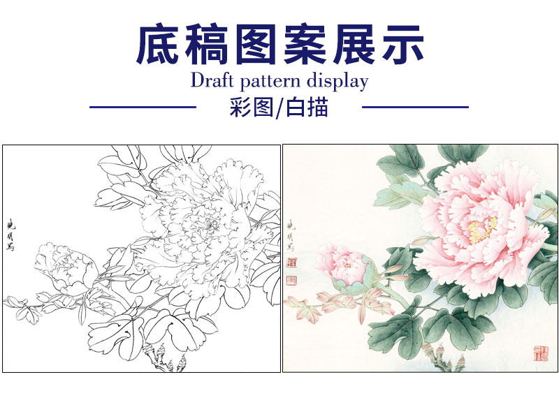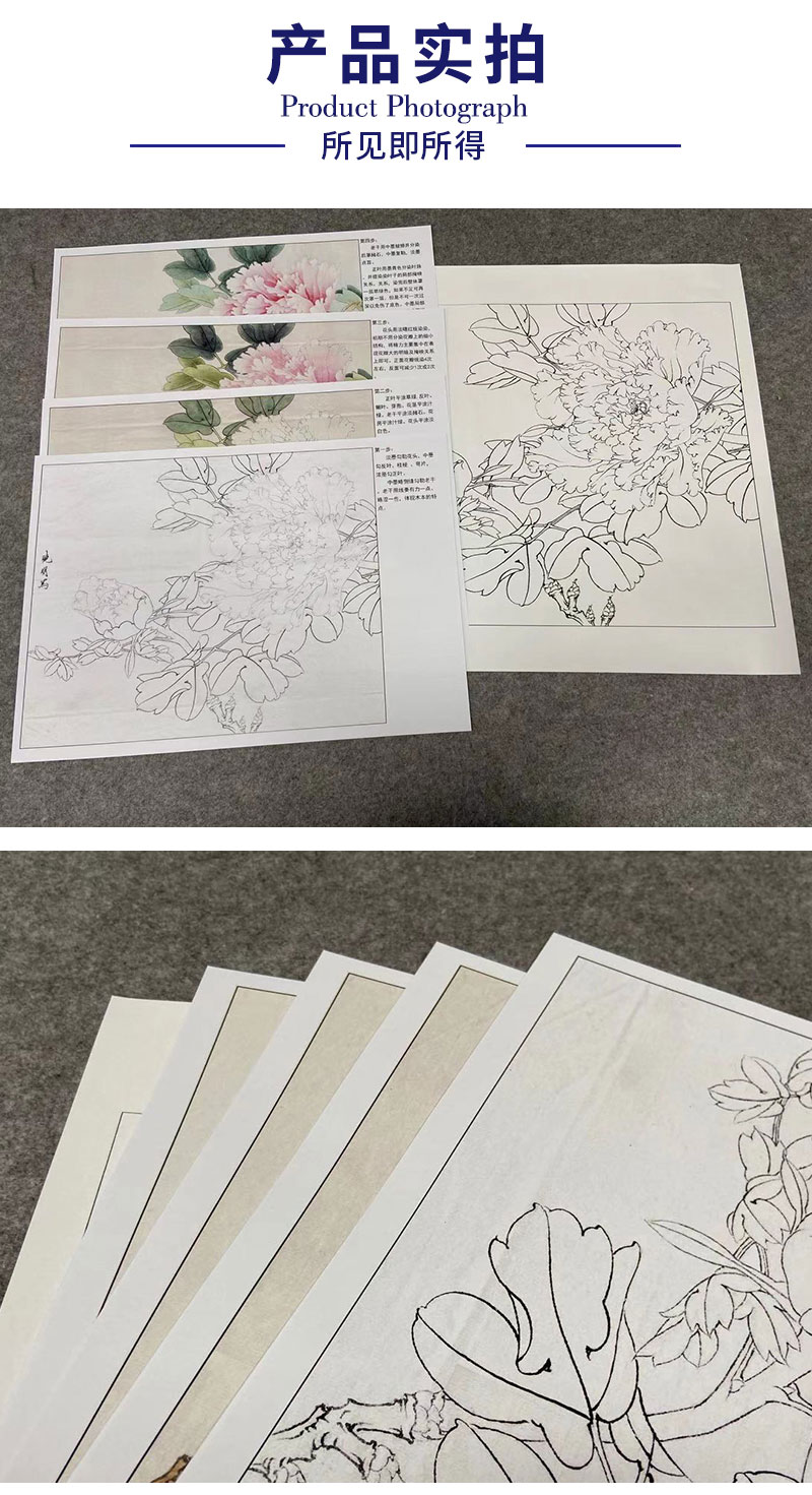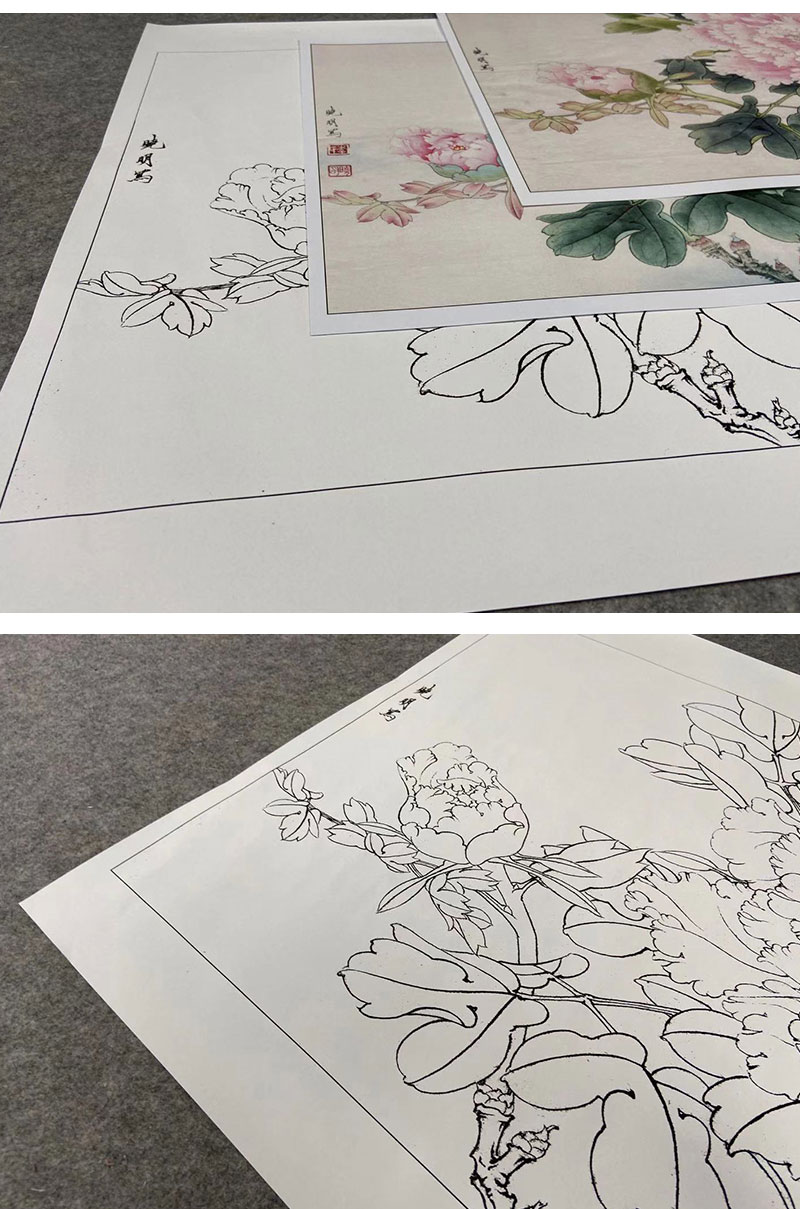 【有步骤、大彩图】李晓明工笔画白描底稿斗方小品《赵粉》牡丹初学者临摹花鸟线稿KD44