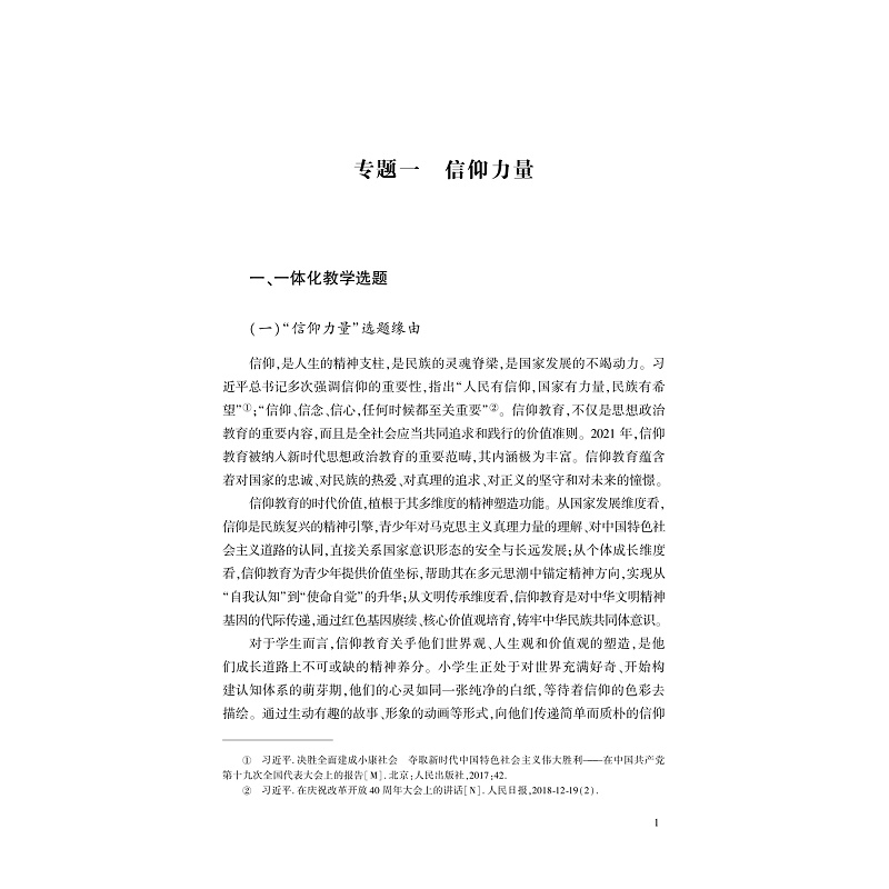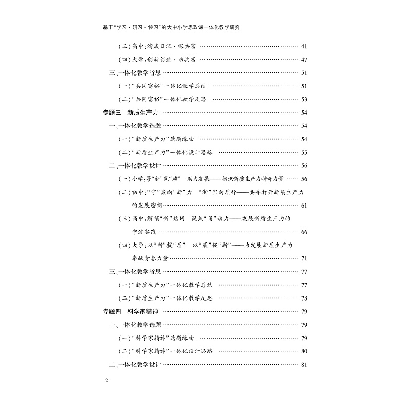本书为国家社科基金项目研究成果,采用“三习”教学模式,探索一体化教学新路径,旨在推进大中小学思政课一体化建设,对广大思政课教师具有极高的参考价值,有助于推动思政课教学的创新与发展。以习近平新时代中国特色社会主义思想为指导,围绕“信仰力量”“共同富裕”“全过程人民民主”“新质生产力”“全面依法治国”“人类命运共同体”等十大专题,分小学、初中、高中、大学四个学段进行了系统的教学设计,内容构架层次分明、逻辑清晰,强调各学段教学目标的统一与进阶,并对一体化设计内在联系进行深入分析探讨。