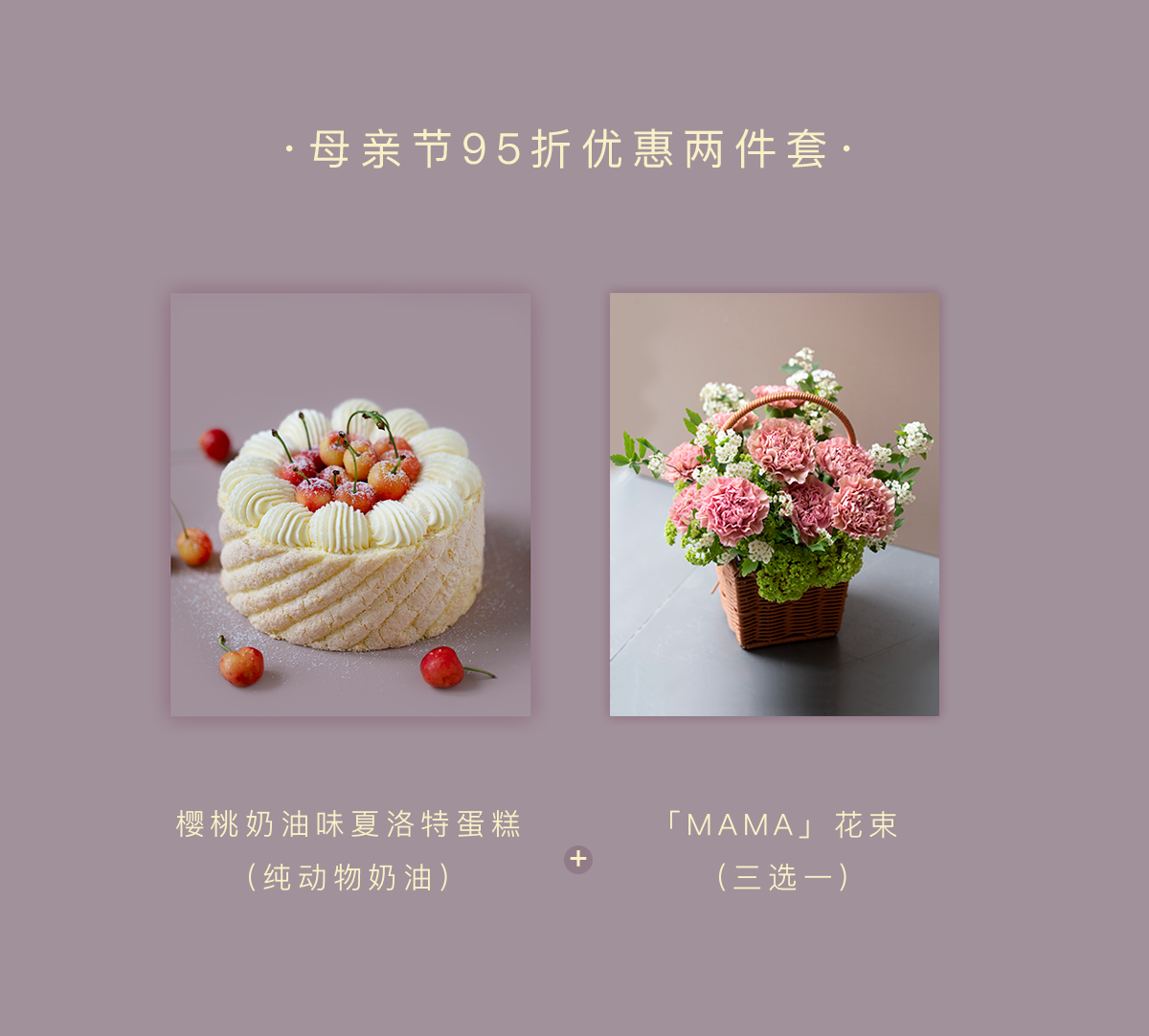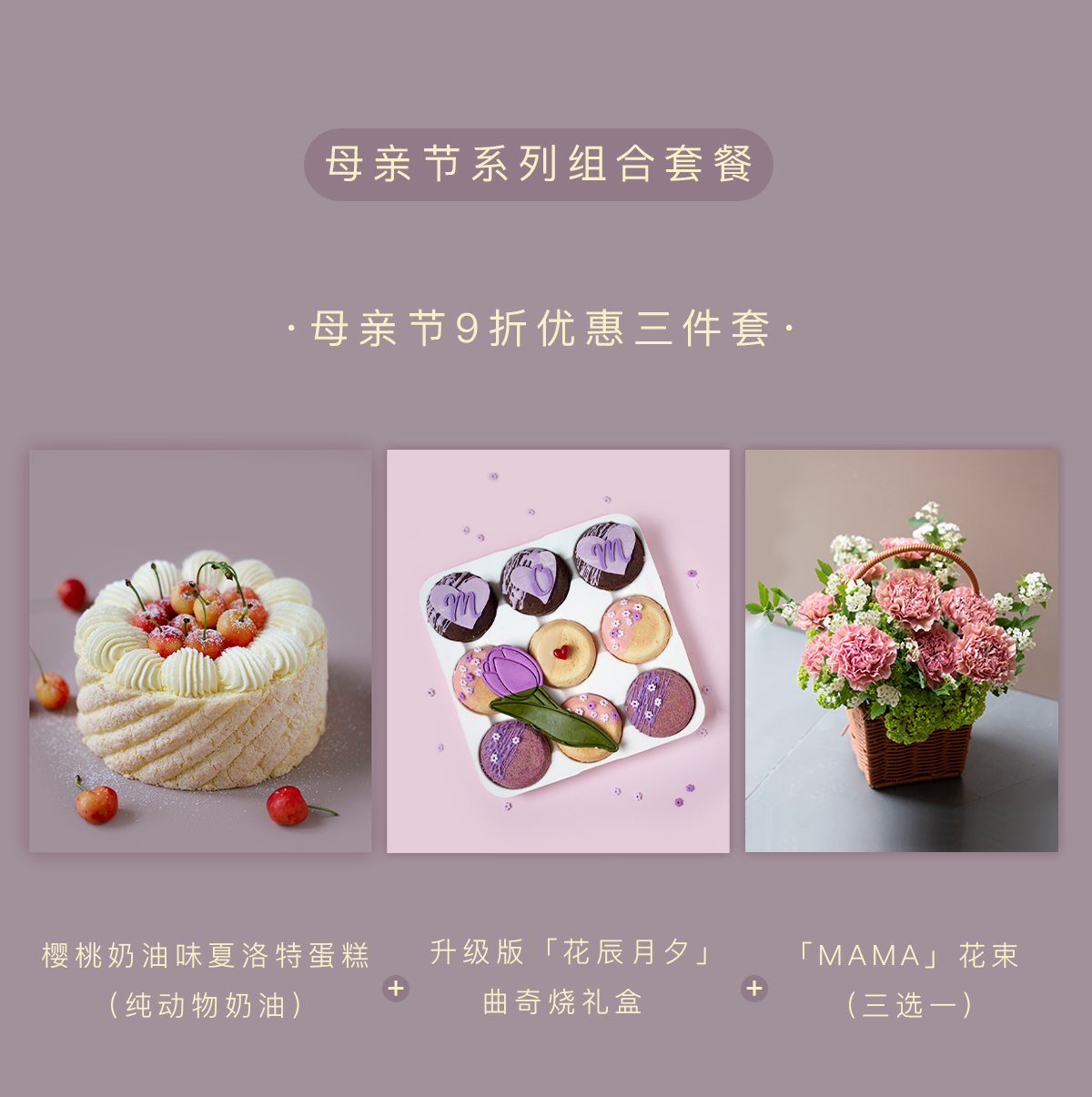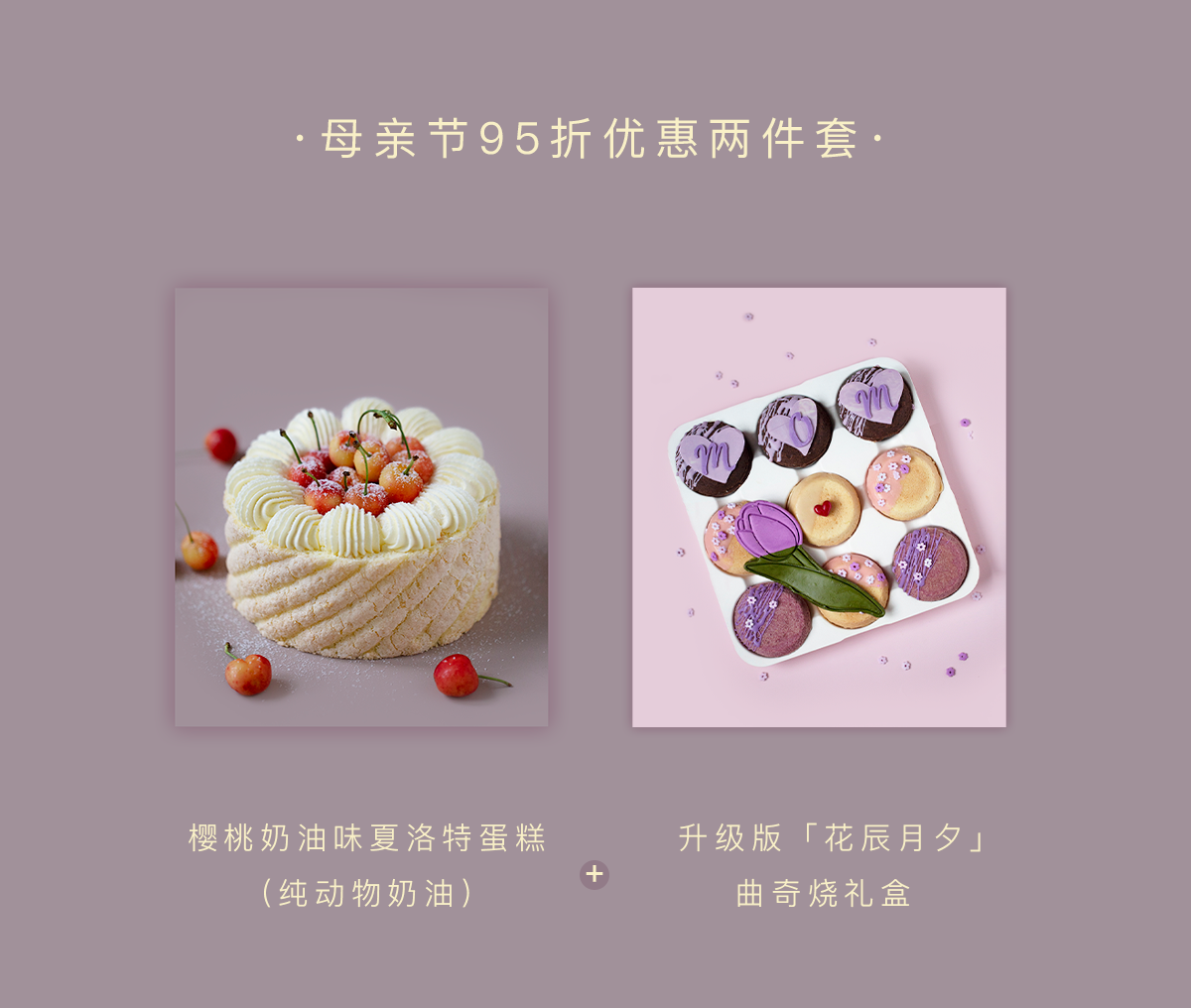 母亲节95折优惠两件套|樱桃奶油味夏洛特蛋糕(纯动物奶油)+「花辰月夕」曲奇烧礼盒
