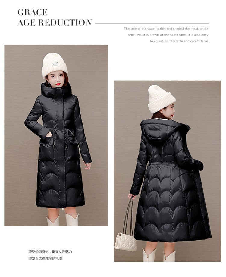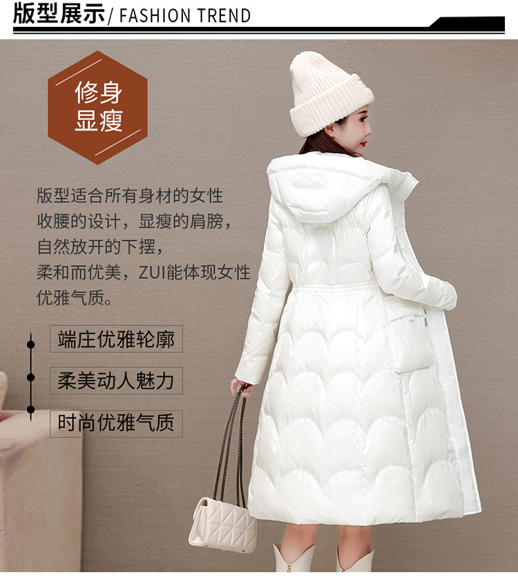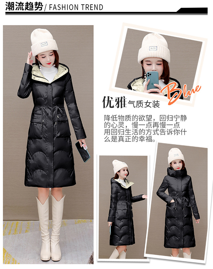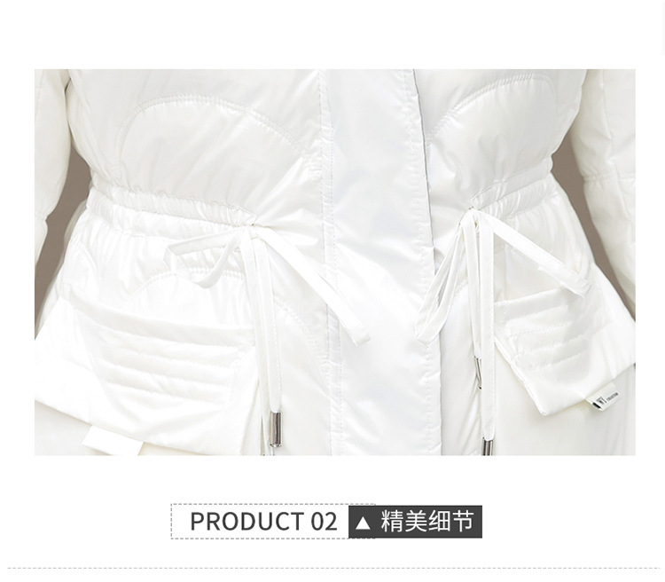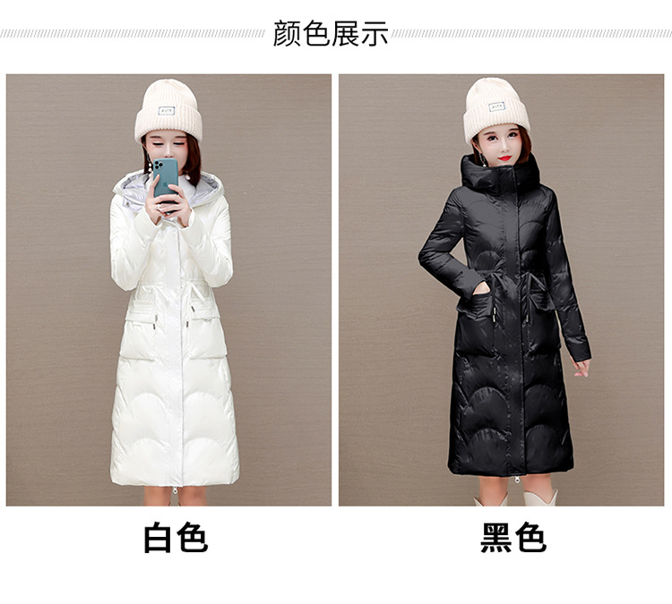 QYMAH-21A1083-L 2023年冬款长款修身时尚保暖羽绒服长袖连帽防寒洋气白鸭绒外套 商品图2