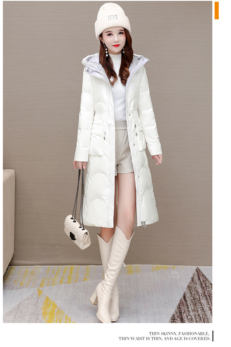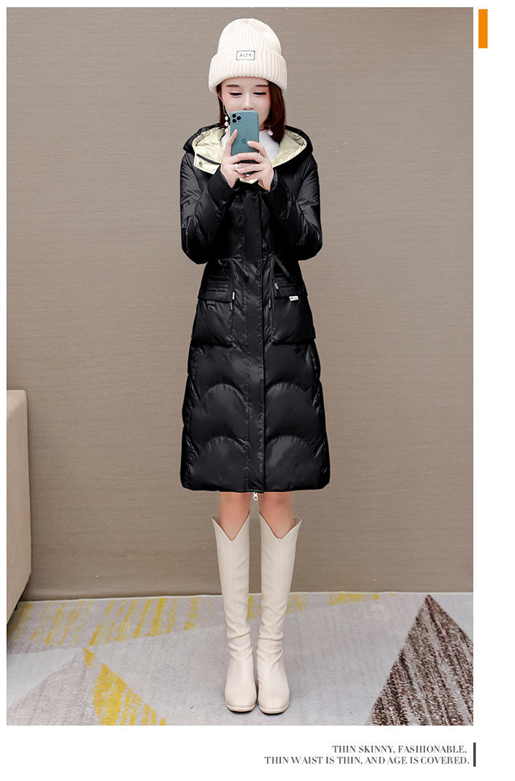 QYMAH-21A1083-L 2023年冬款长款修身时尚保暖羽绒服长袖连帽防寒洋气白鸭绒外套 商品图1