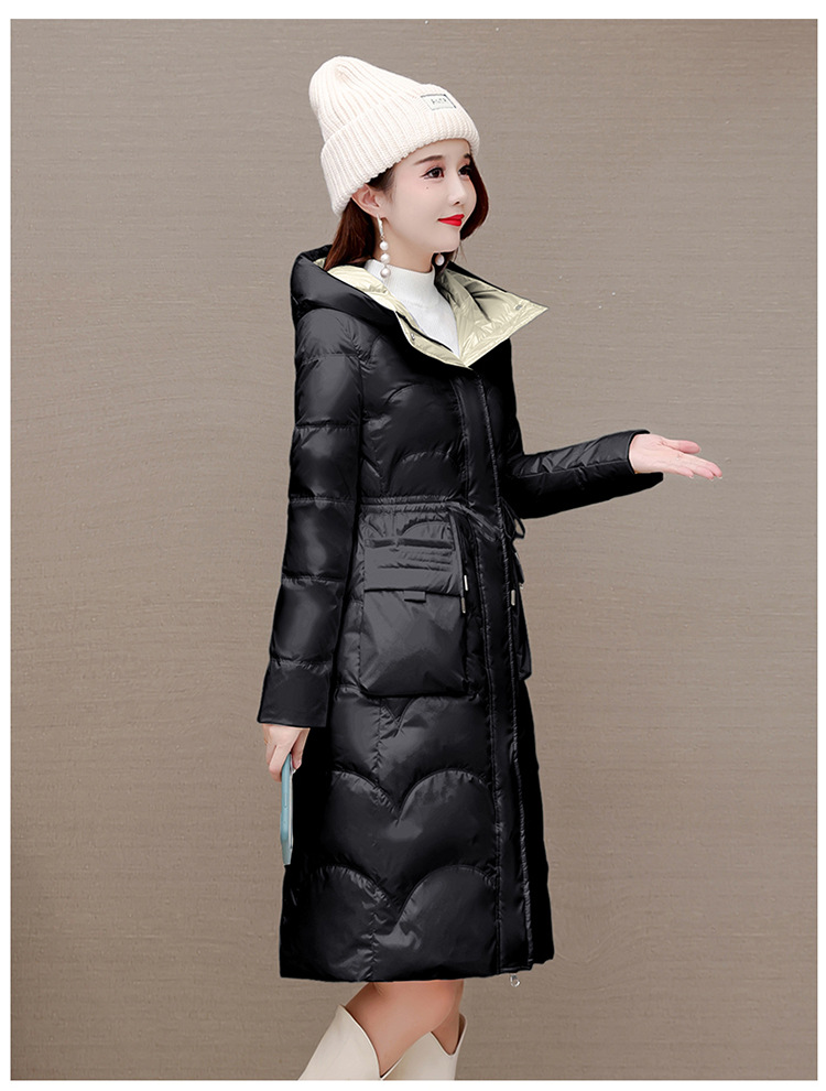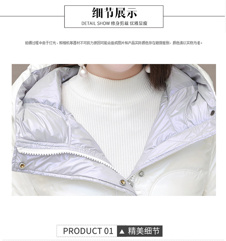 QYMAH-21A1083-L 2023年冬款长款修身时尚保暖羽绒服长袖连帽防寒洋气白鸭绒外套 商品图3