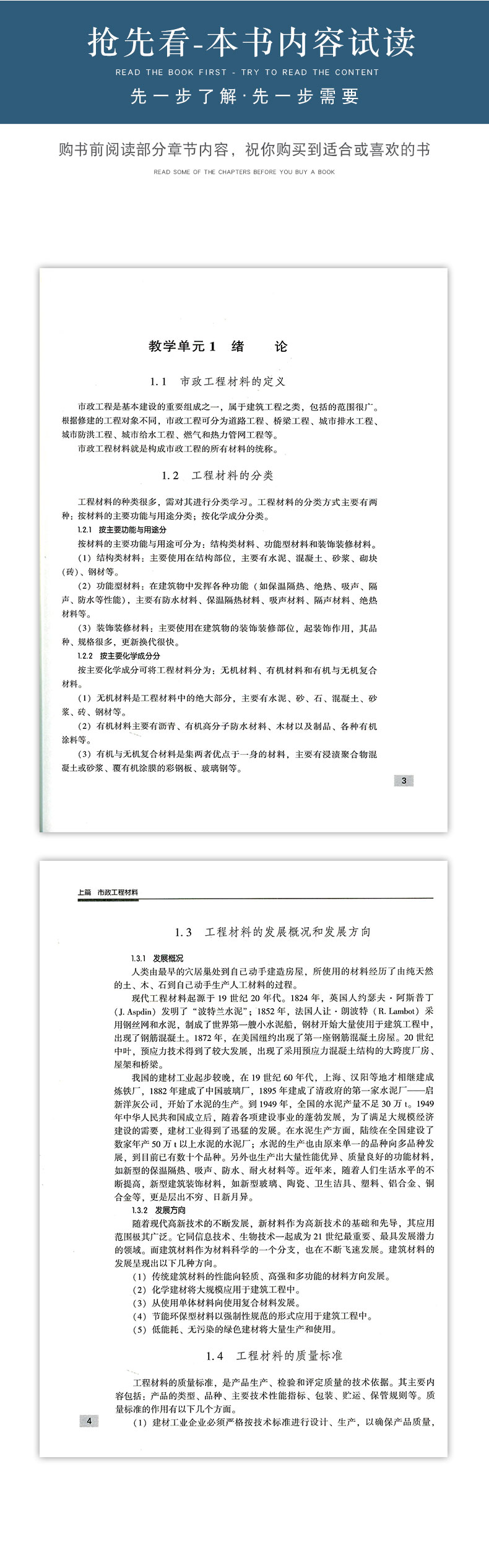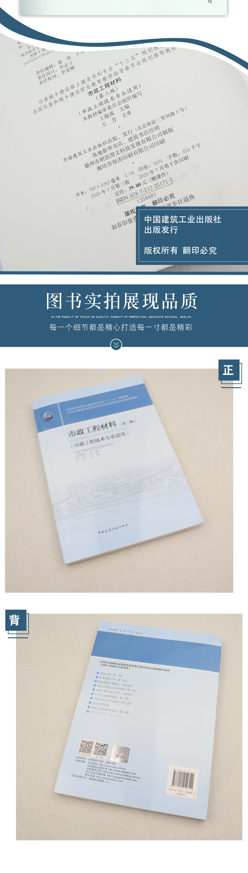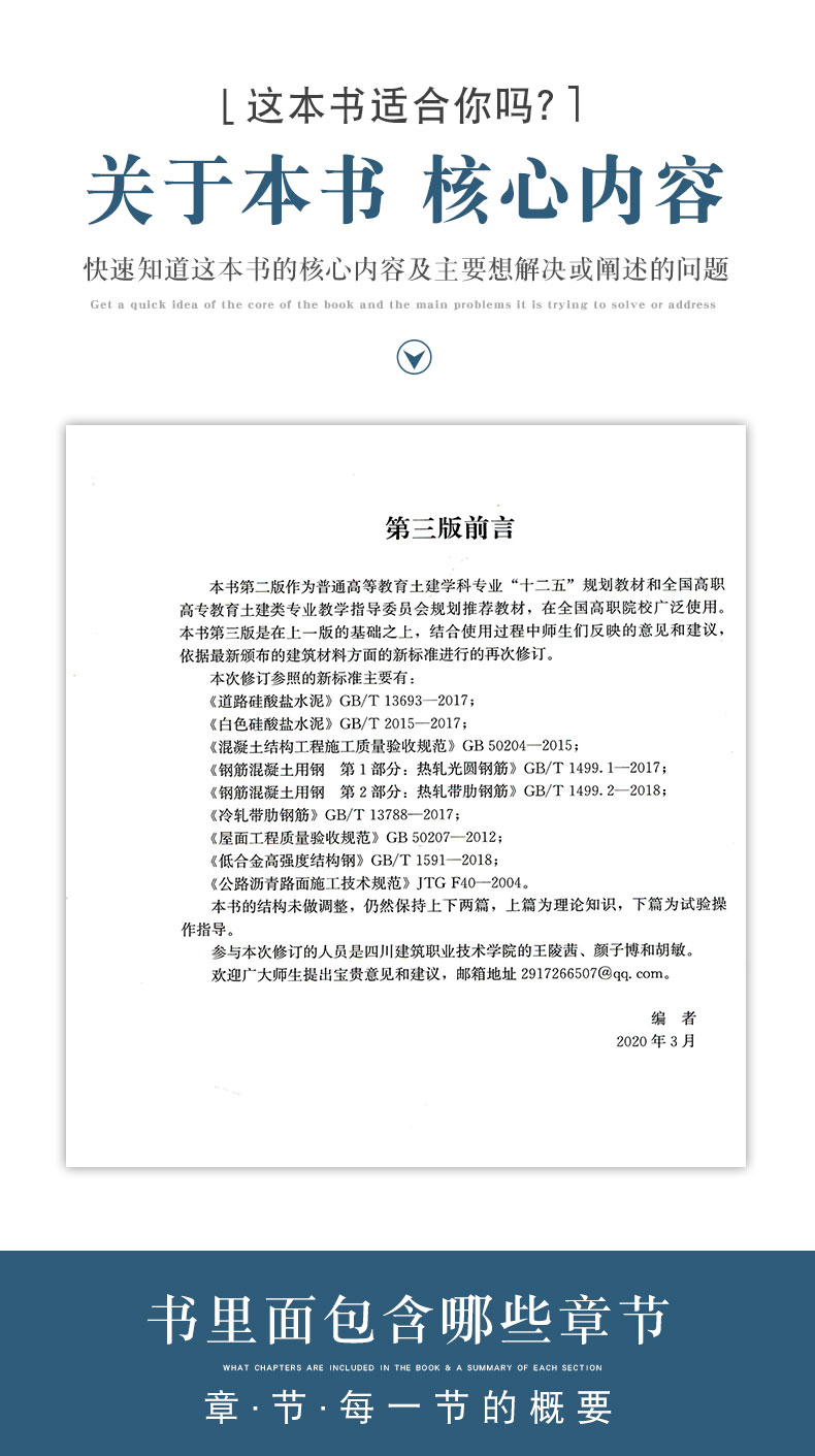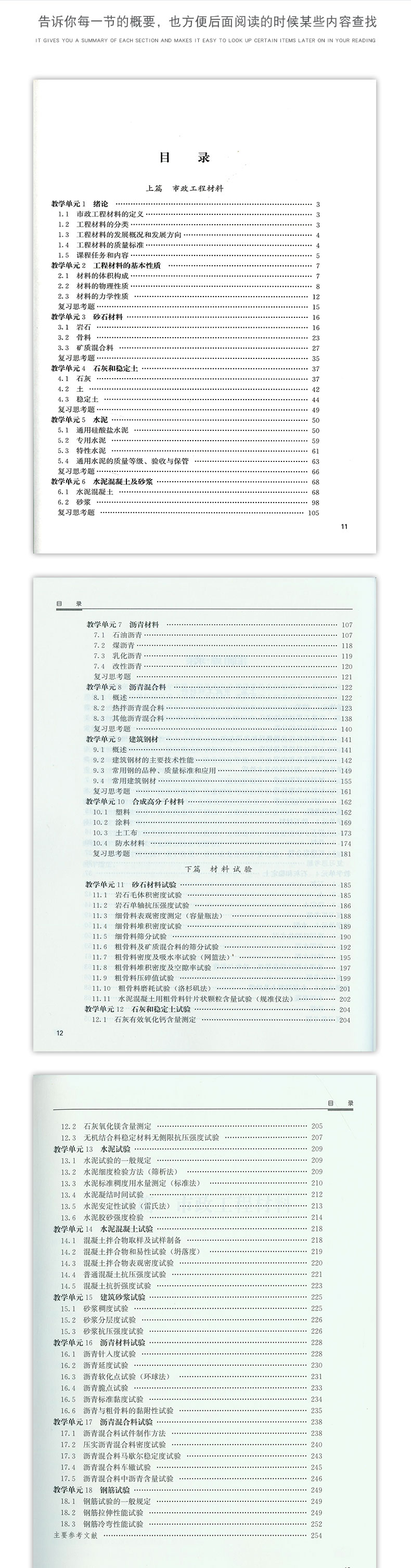 本书为住房城乡建设部土建类学科专业“十三五”规划教材、全国住房和城乡建设职业教育教学指导委员会规划推荐教材。本书是配合市政工程技术专业基础课程《市政工程材料》的一本技能型指导教材,旨在提升学习者对常用市政工程材料进行质量检测和判断的专业知识和实操技能。本书主要内容包括:绪论、工程材料的基本性质、砂石材料、石灰和稳定土、水泥、水泥混凝土及砂浆、沥青材料、沥青混合料、建筑钢材、合成高分子材料、砂石材料试验、石灰和稳定土试验、水泥试验、水泥混凝土试验、建筑砂浆试验、沥青砂浆试验、沥青混合料试验、钢筋试验。
