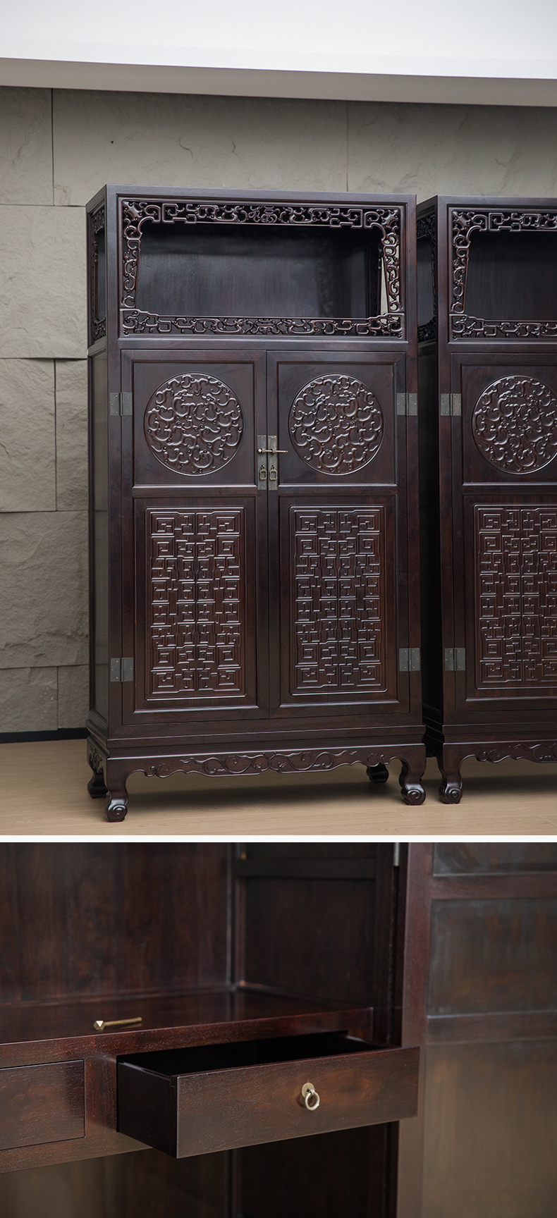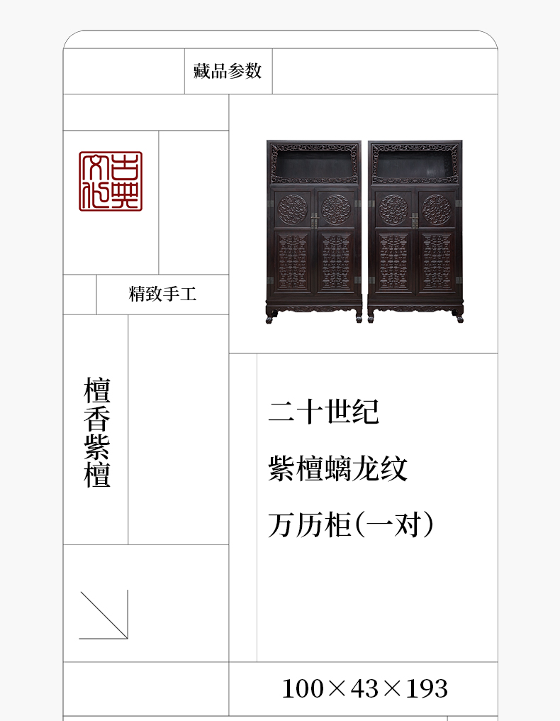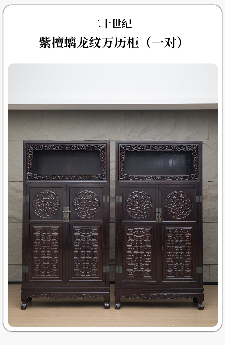 二十世纪 紫檀螭龙纹万历柜(一对)