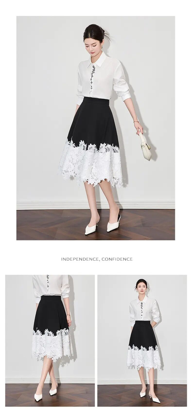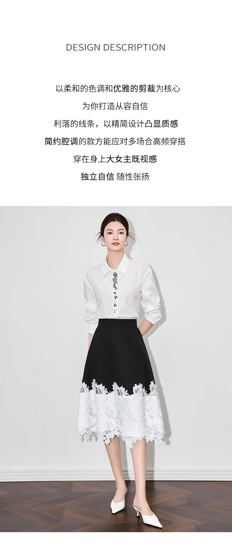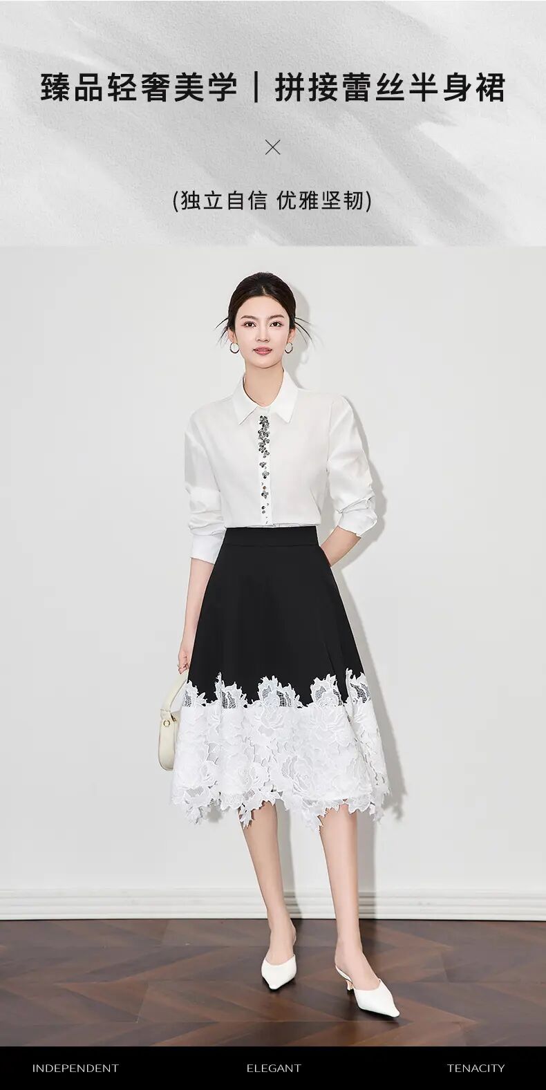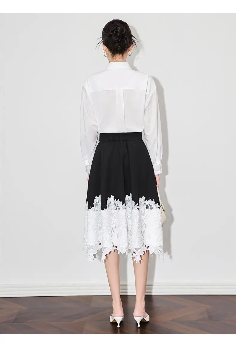 【高货wl】全新升级【铂金会员247/天猫329/差价82】(91825) 洛诗琳典雅设计感轻熟撞色拼接蕾丝高腰女夏新款半身裙