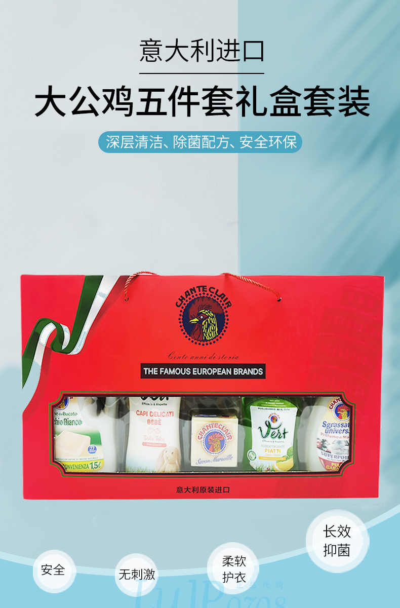 【 大公鸡五件套 礼送呵护 】大公鸡五件套礼盒装 天然植萃 持久香氛 去臭除味 呵护宝宝健康肌肤(礼盒)
