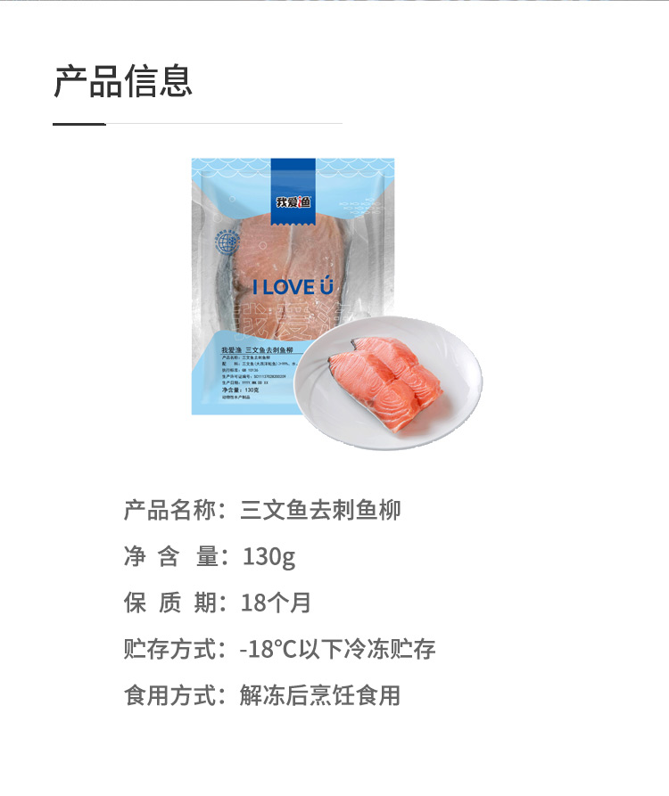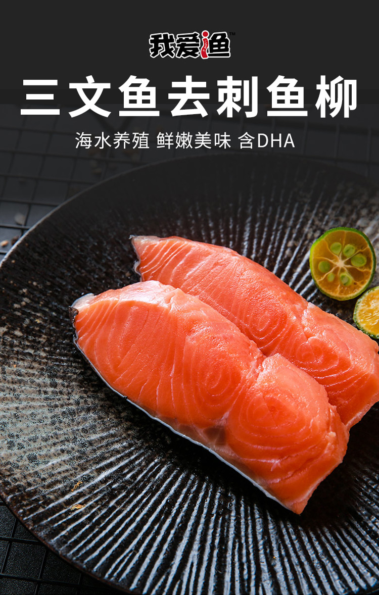 *【我爱渔】 新鲜冷冻智利三文鱼去刺斜切鱼柳130g/袋×3袋
