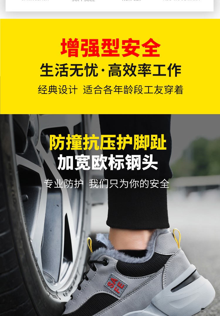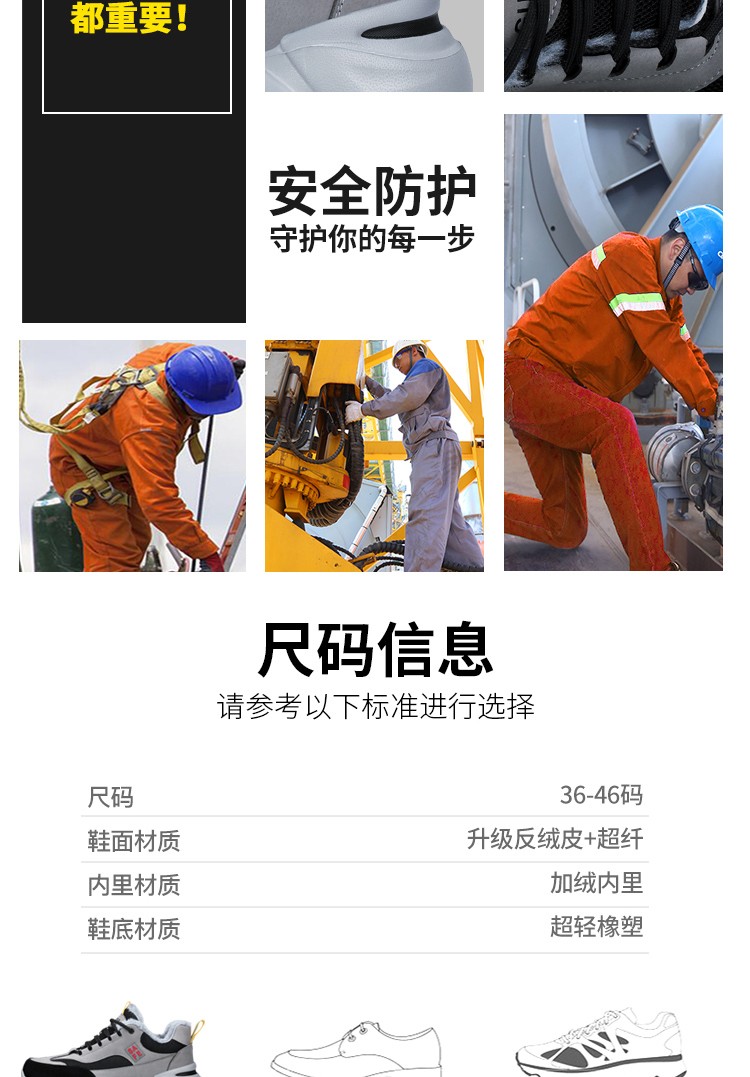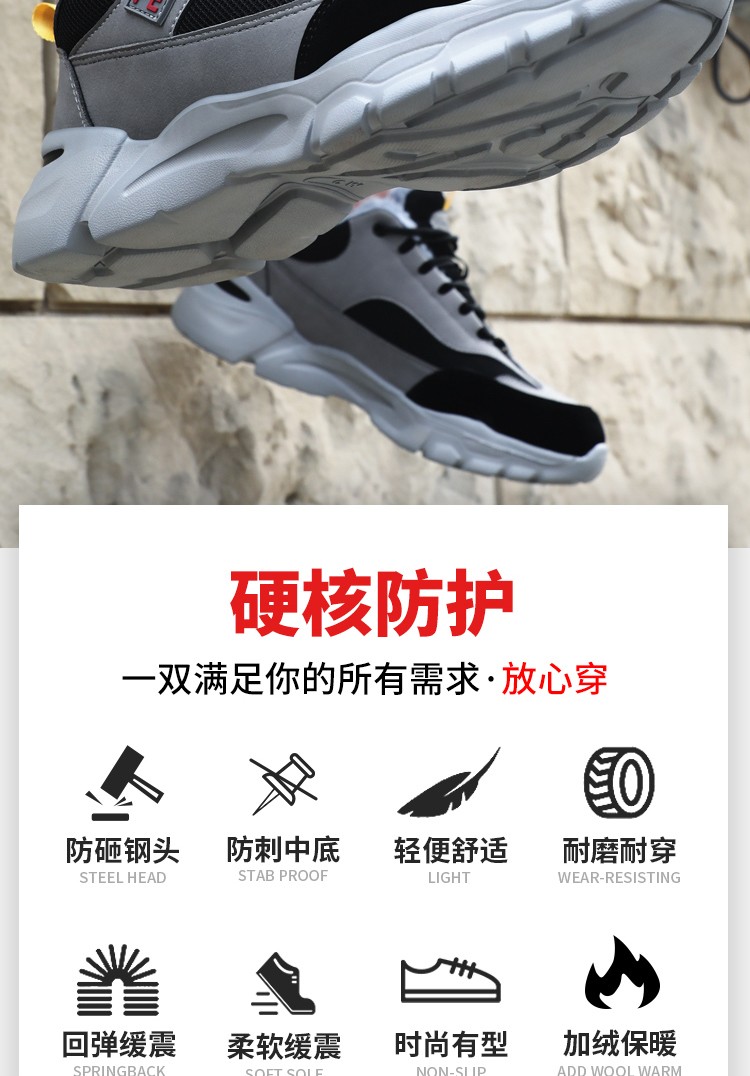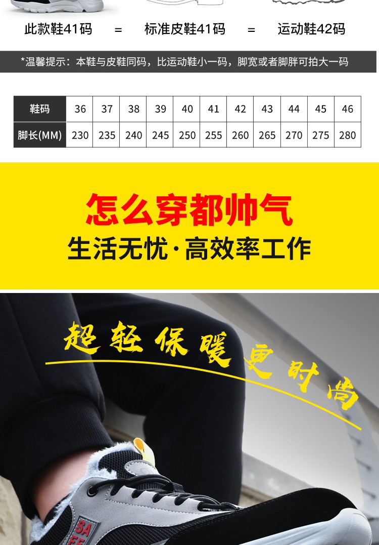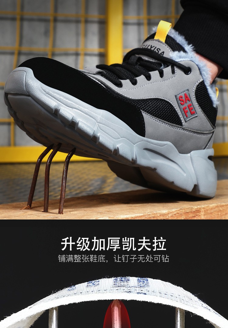 冬季加绒劳保鞋男钢包头防砸防刺穿安全工作鞋EVA大底超轻防护功能鞋
