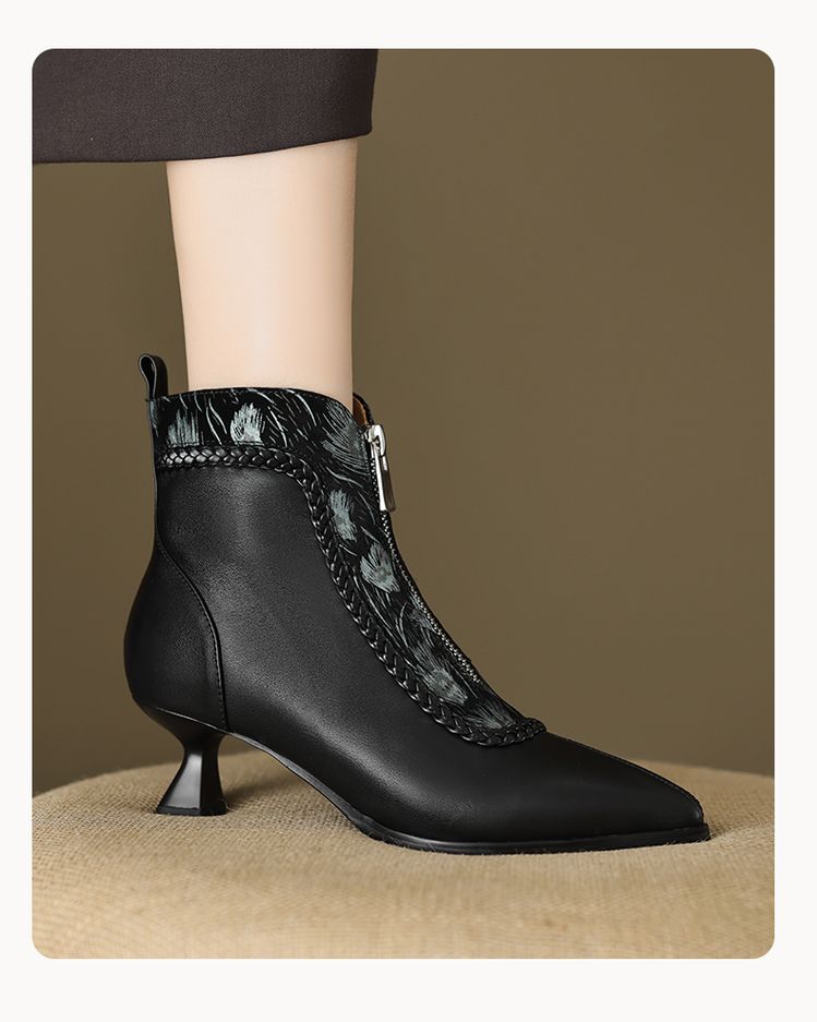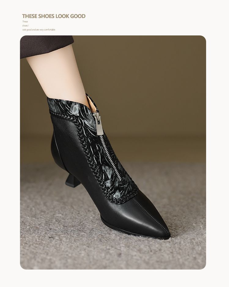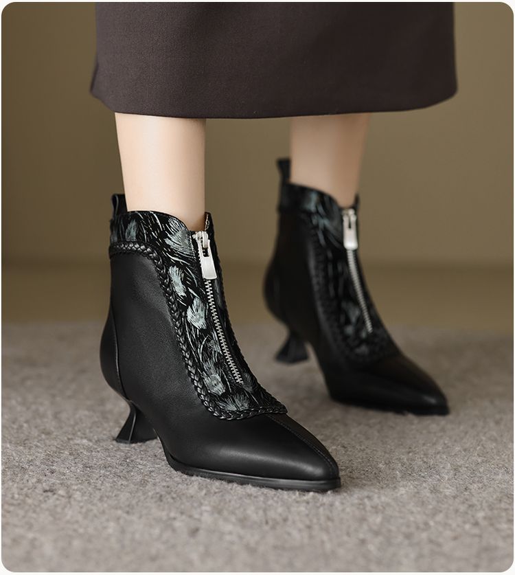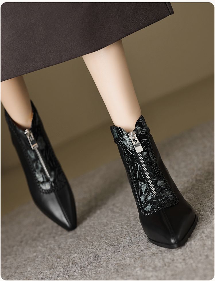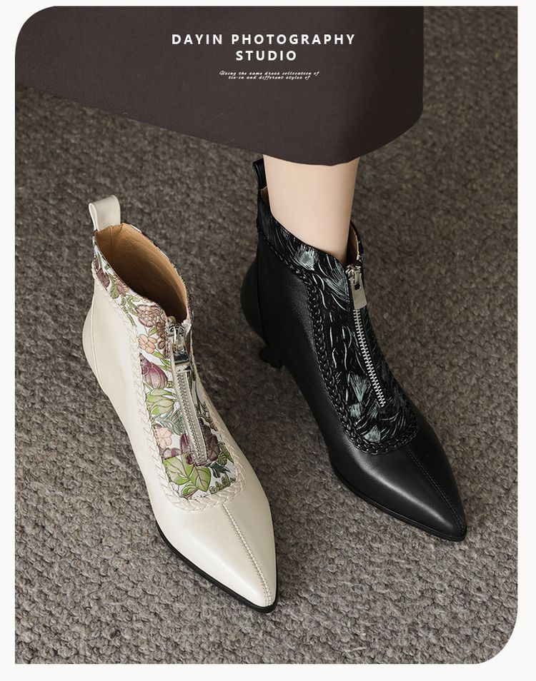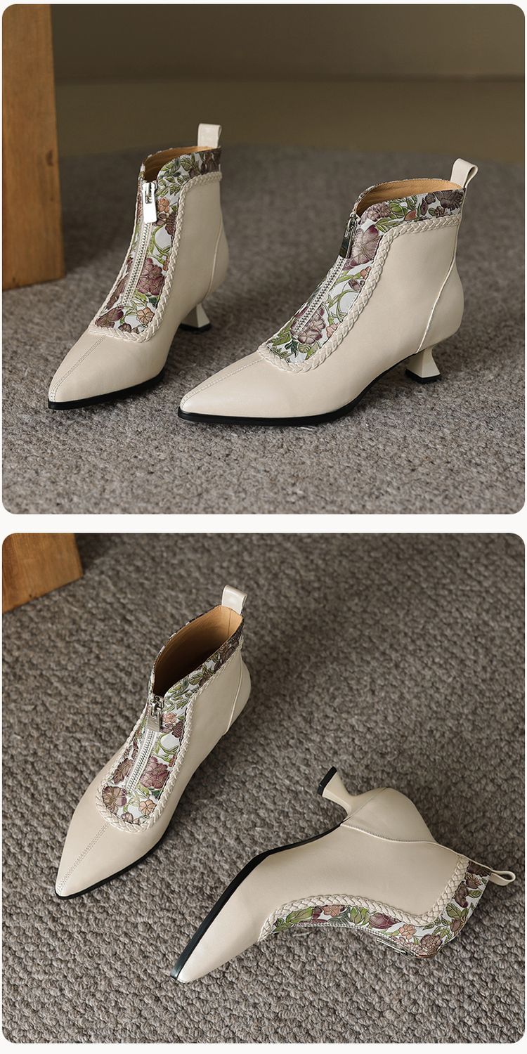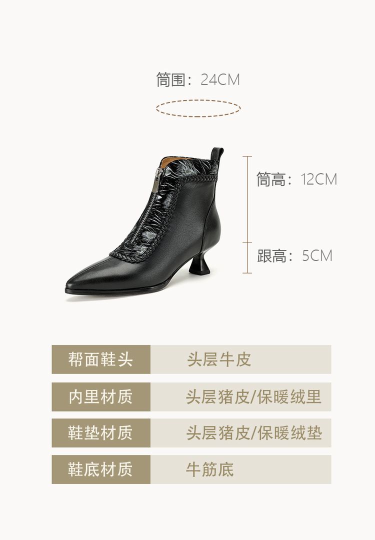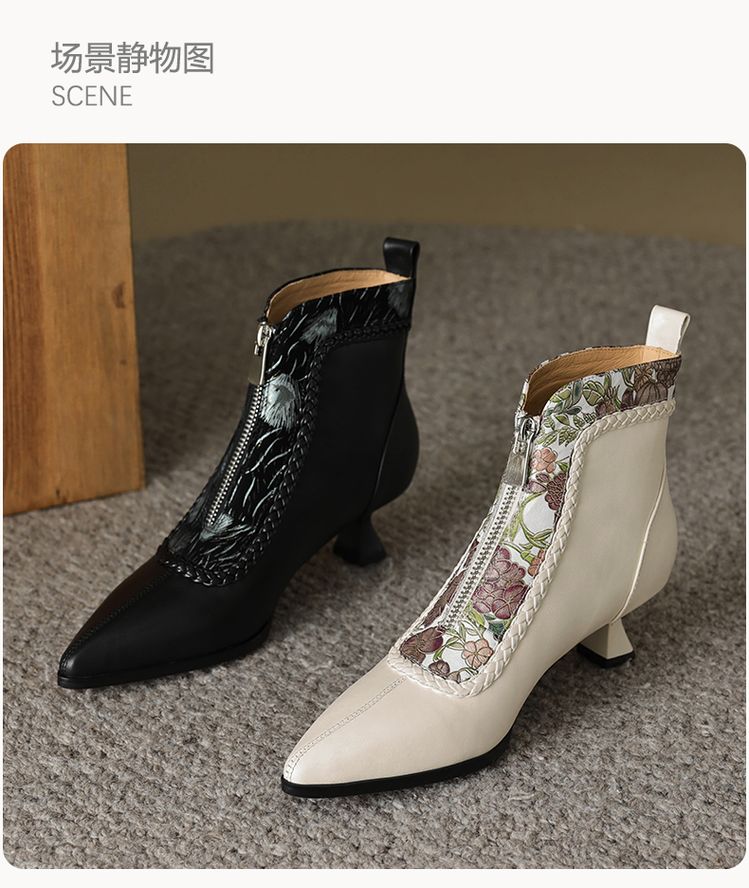 【预售5天】法式复古前拉链,尖头马丁靴真皮低跟短靴YCJX&H-6138