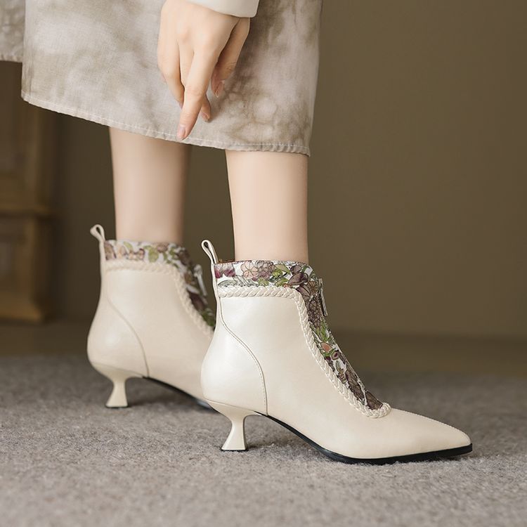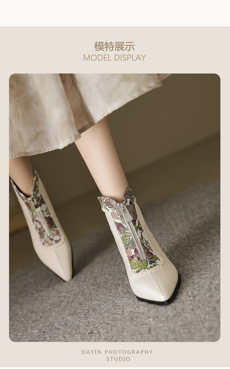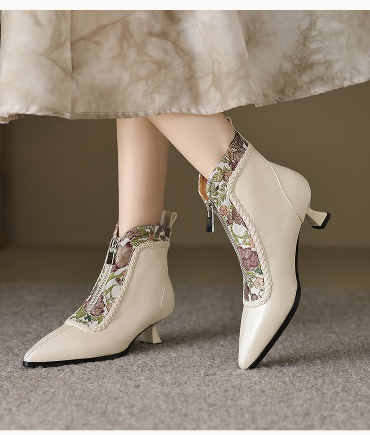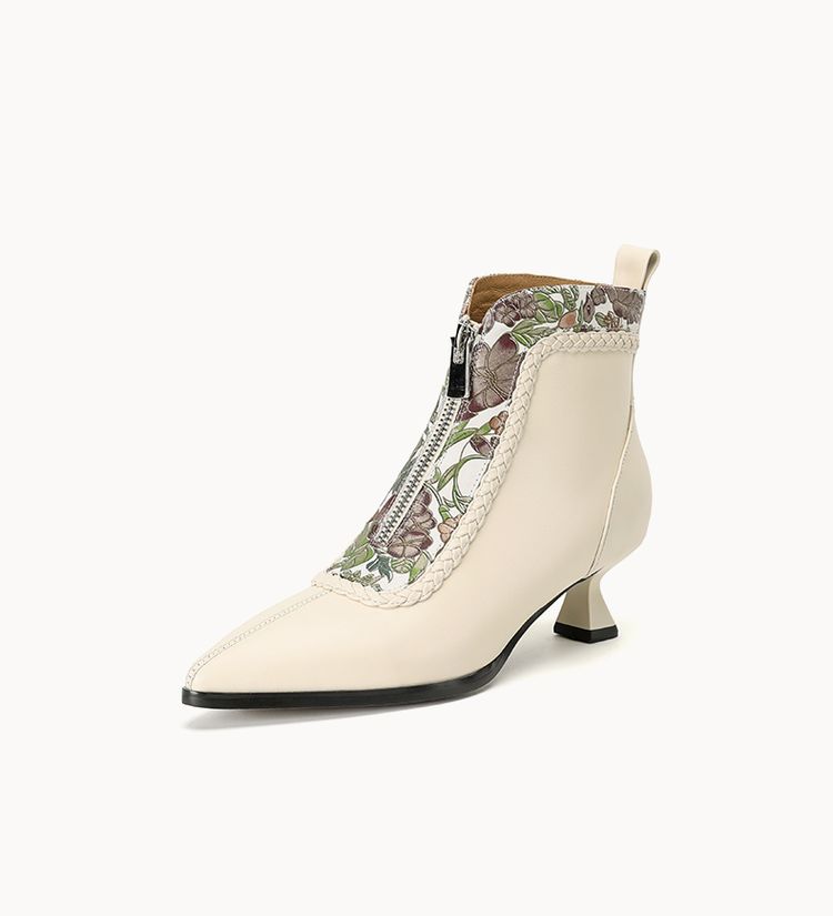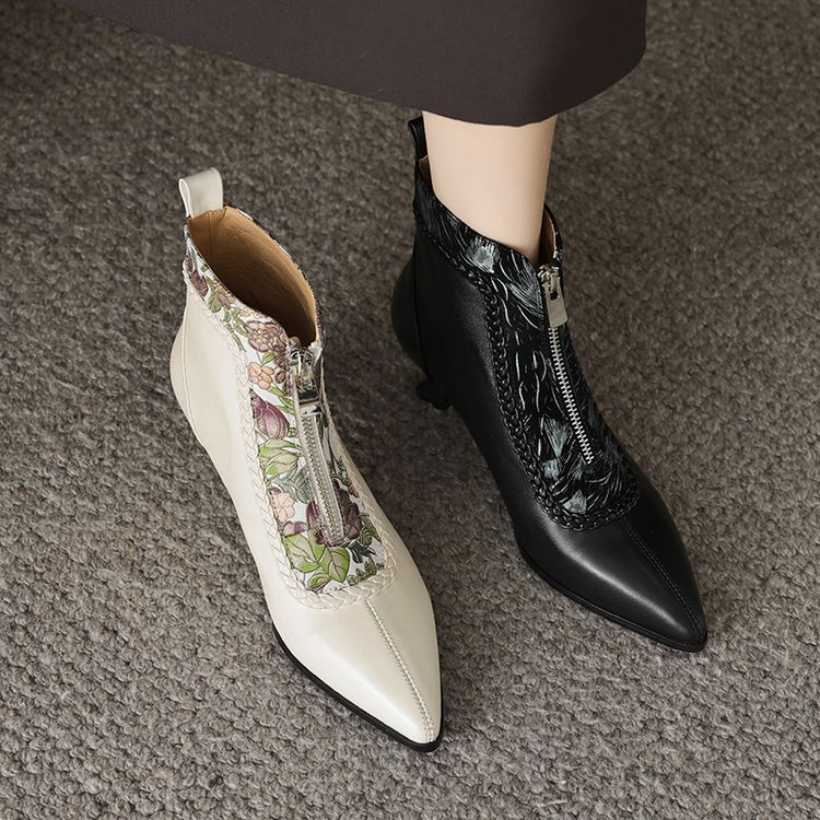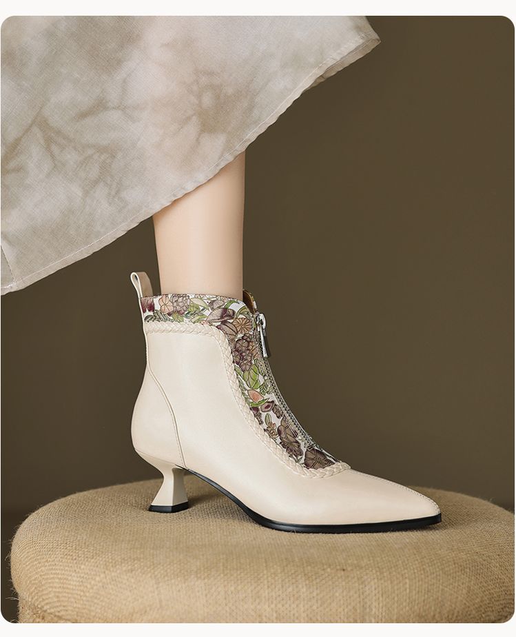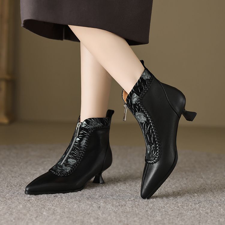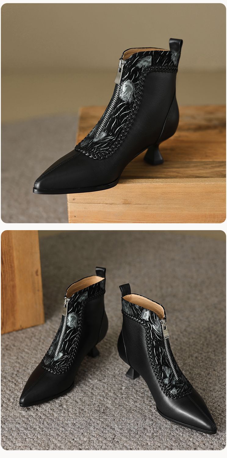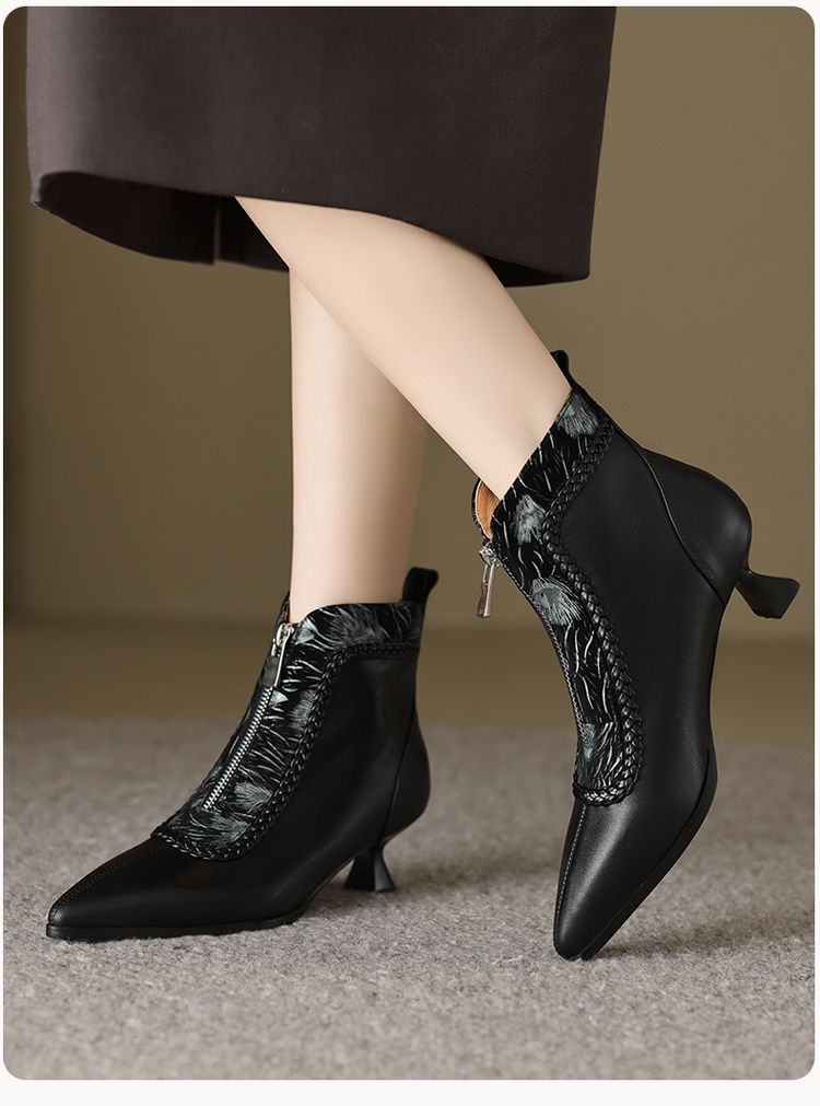 【预售5天】法式复古前拉链,尖头马丁靴真皮低跟短靴YCJX&H-6138