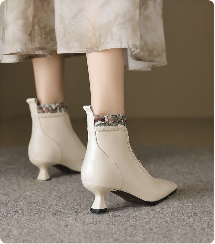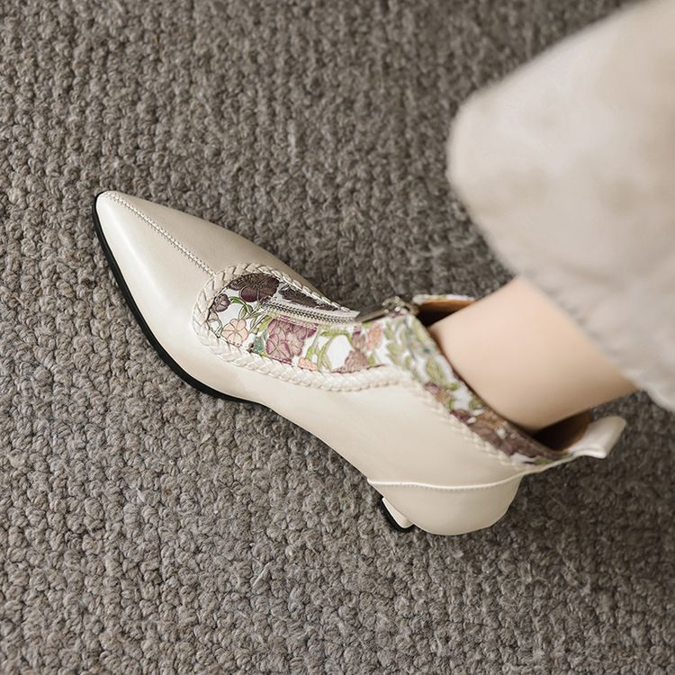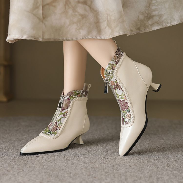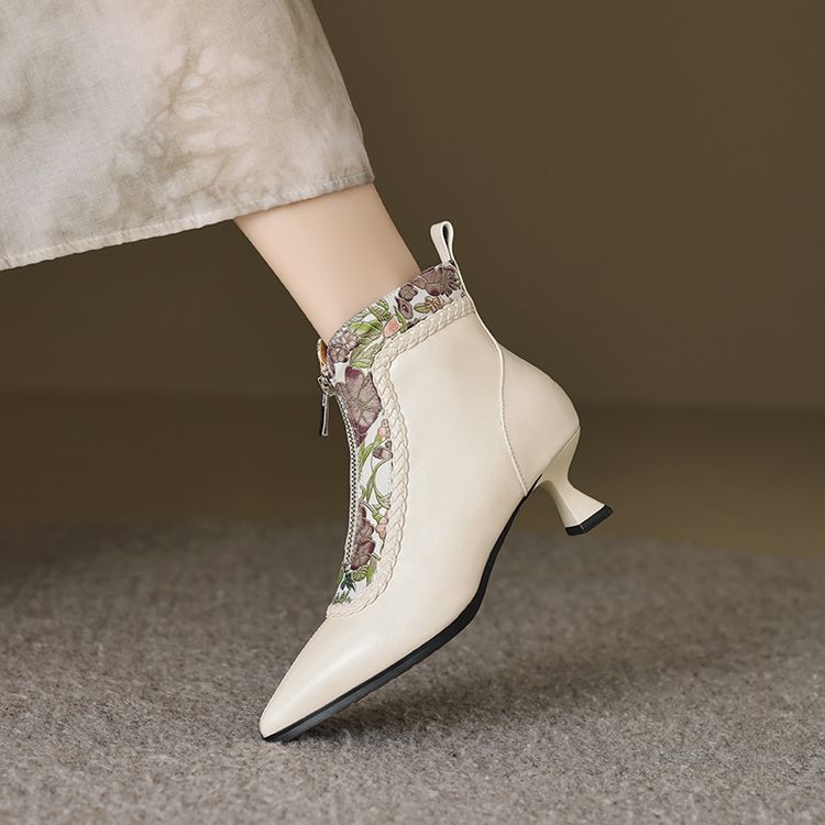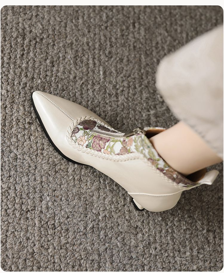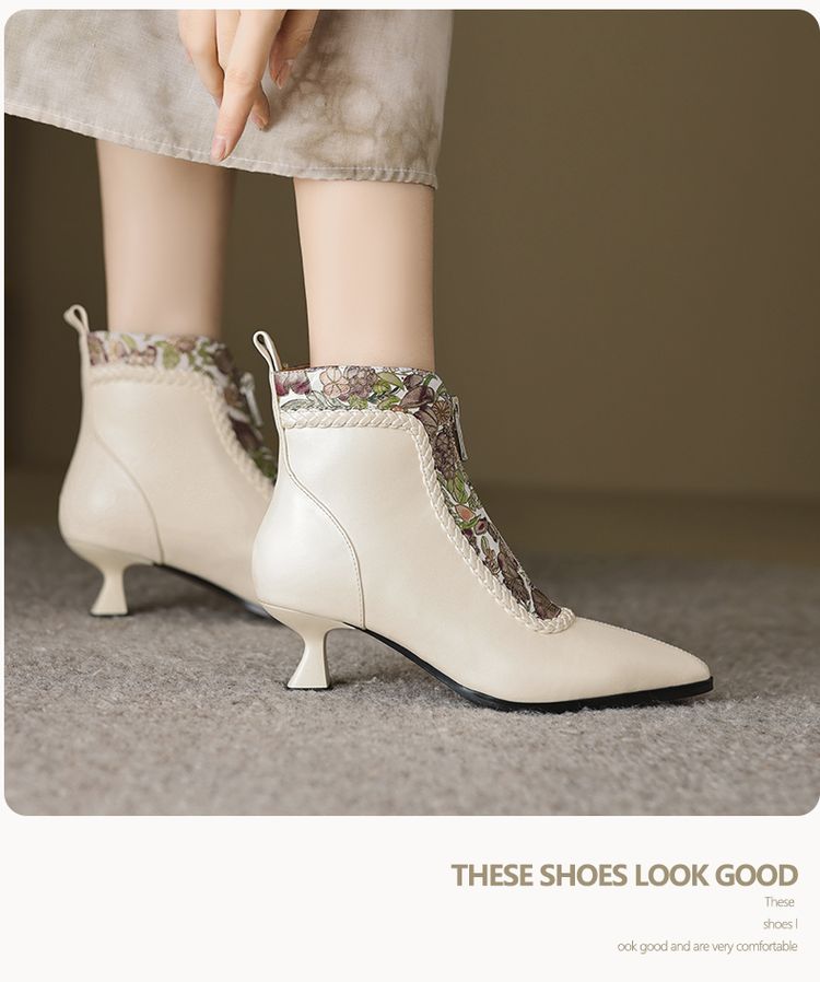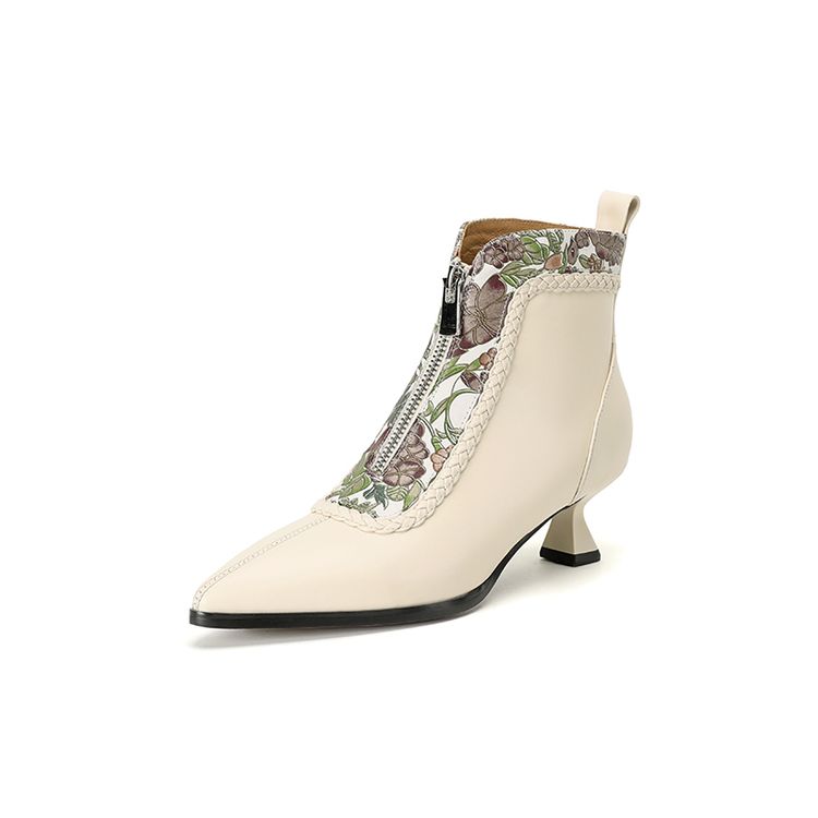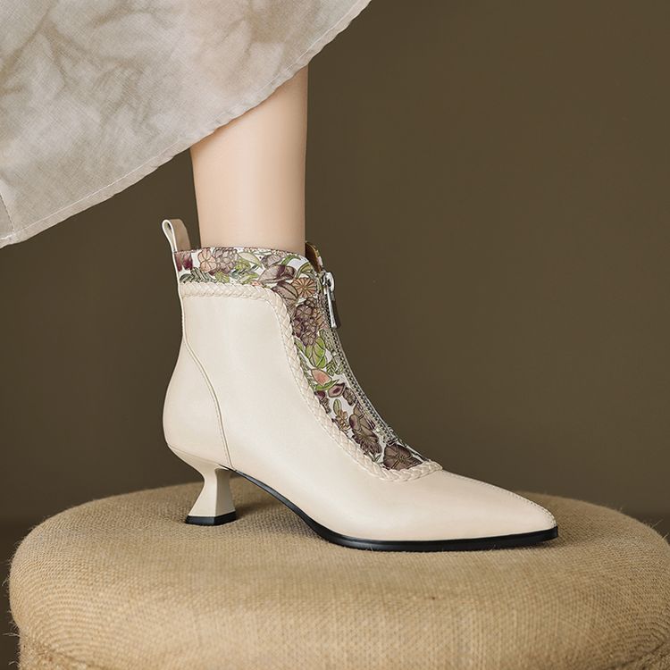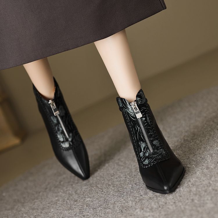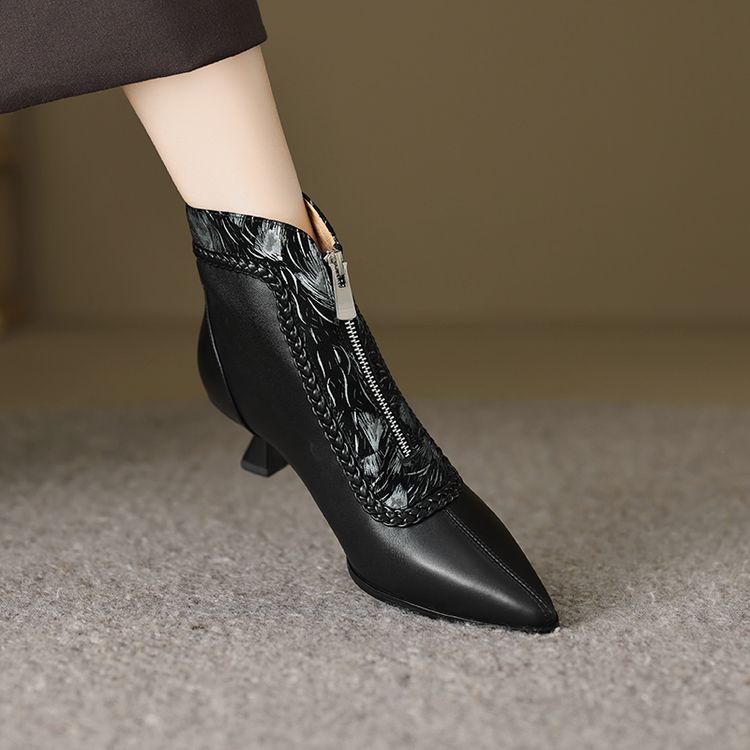 【预售5天】法式复古前拉链,尖头马丁靴真皮低跟短靴YCJX&H-6138