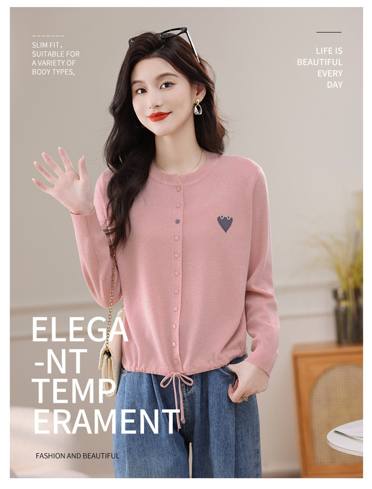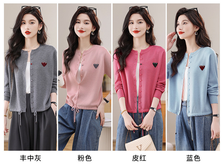 短款抽绳针织开衫,薄款洋气时髦毛衣外套减龄CC-XFY-3006
