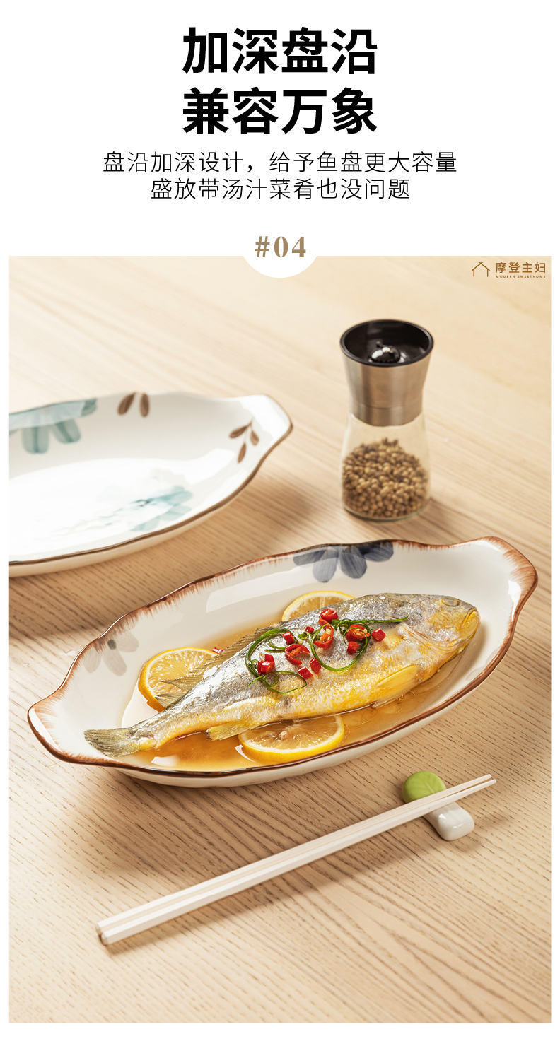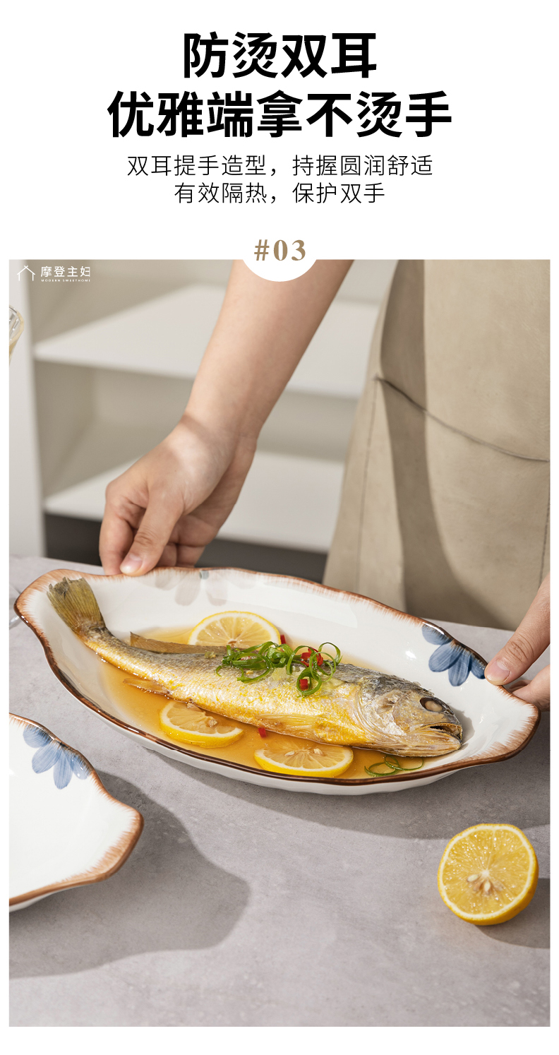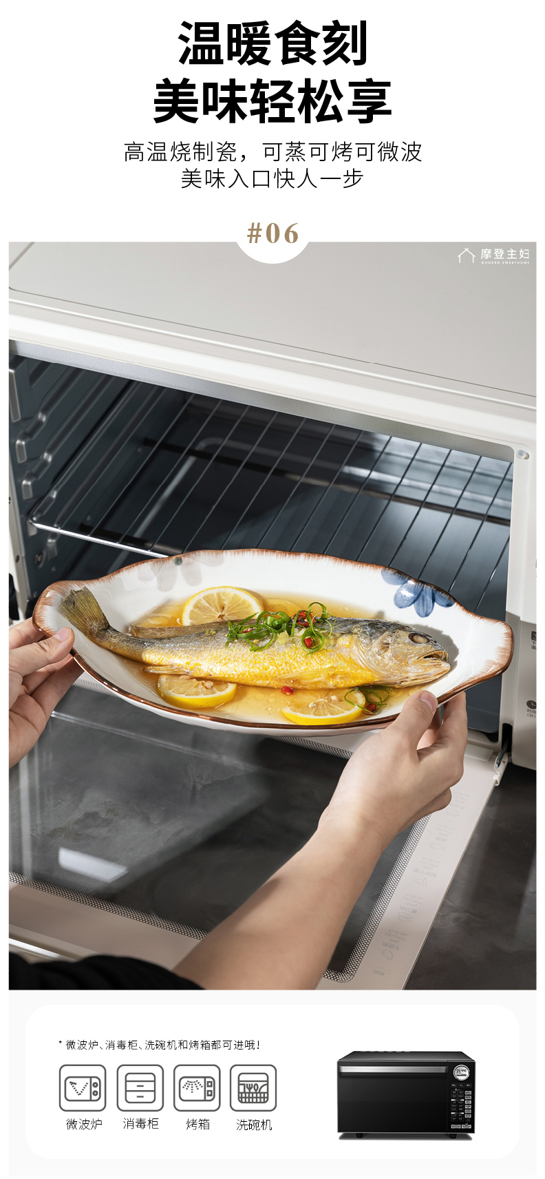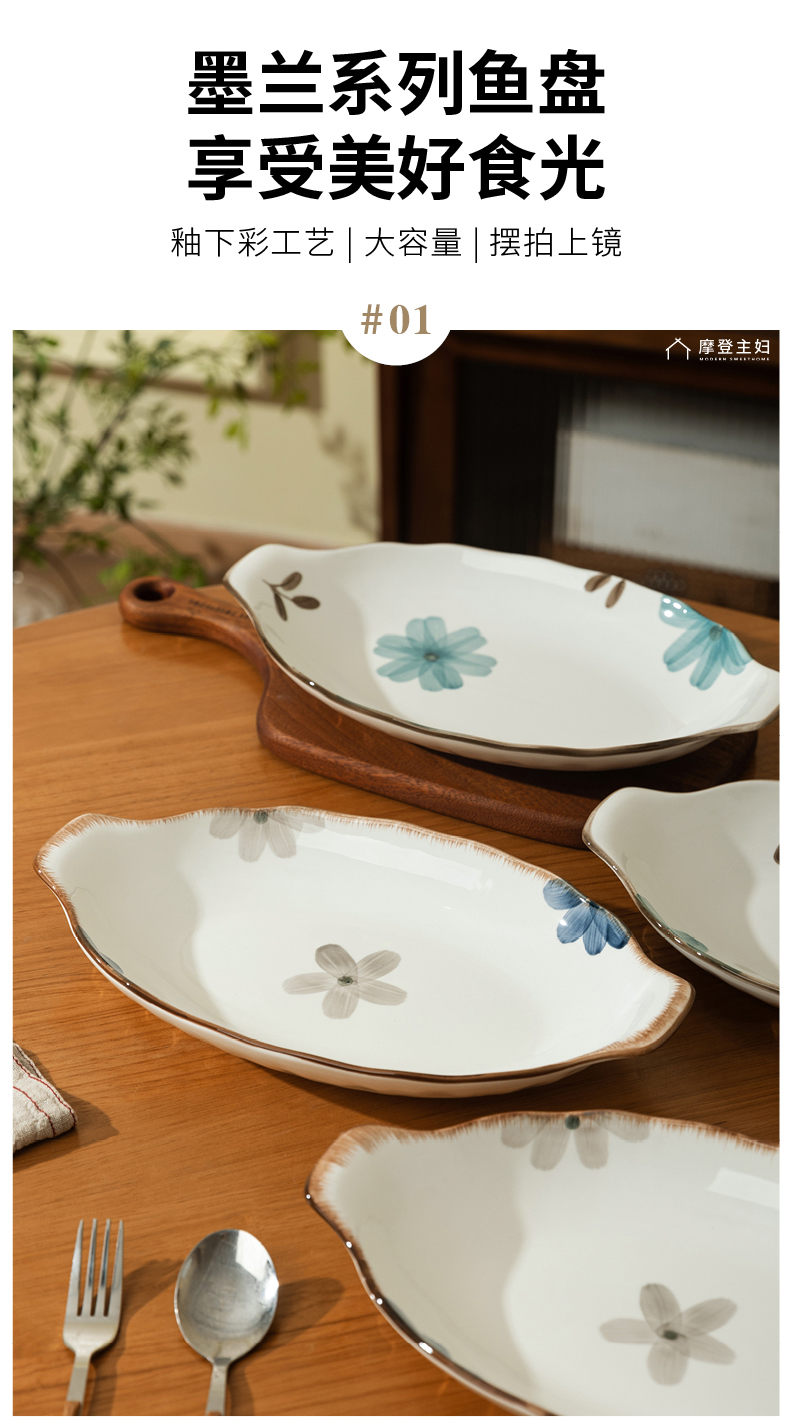 摩登主妇墨蓝蒸鱼专用盘子家用2024新款蒸鱼碟大号鱼碗高级感鱼盘