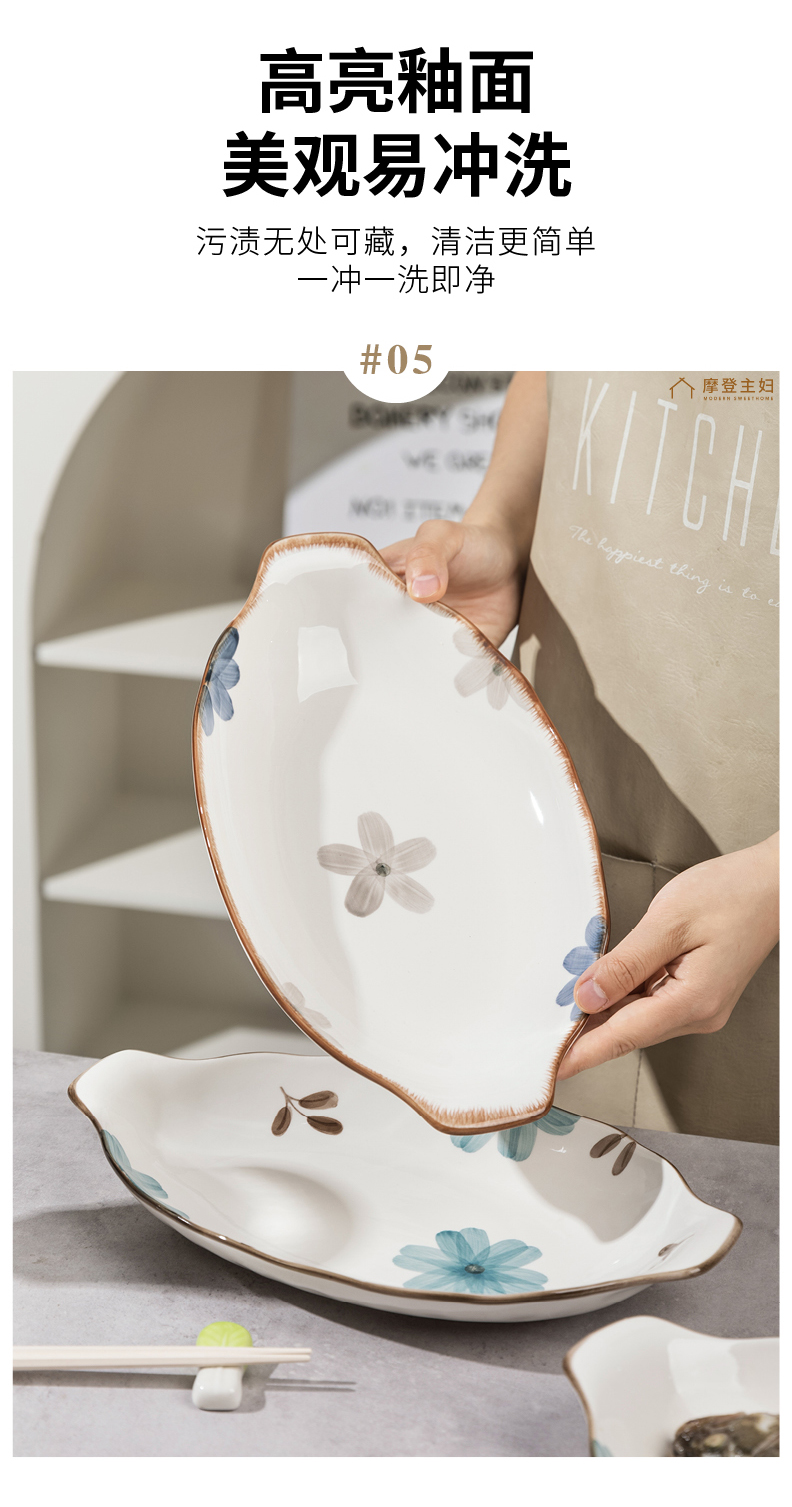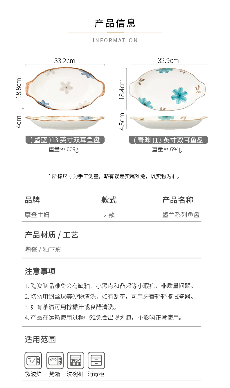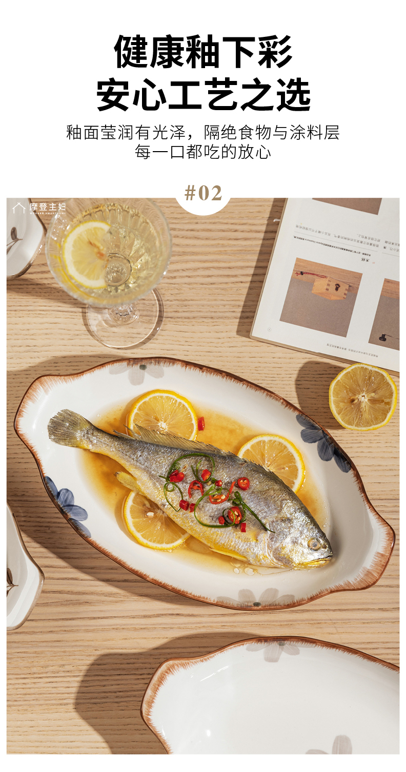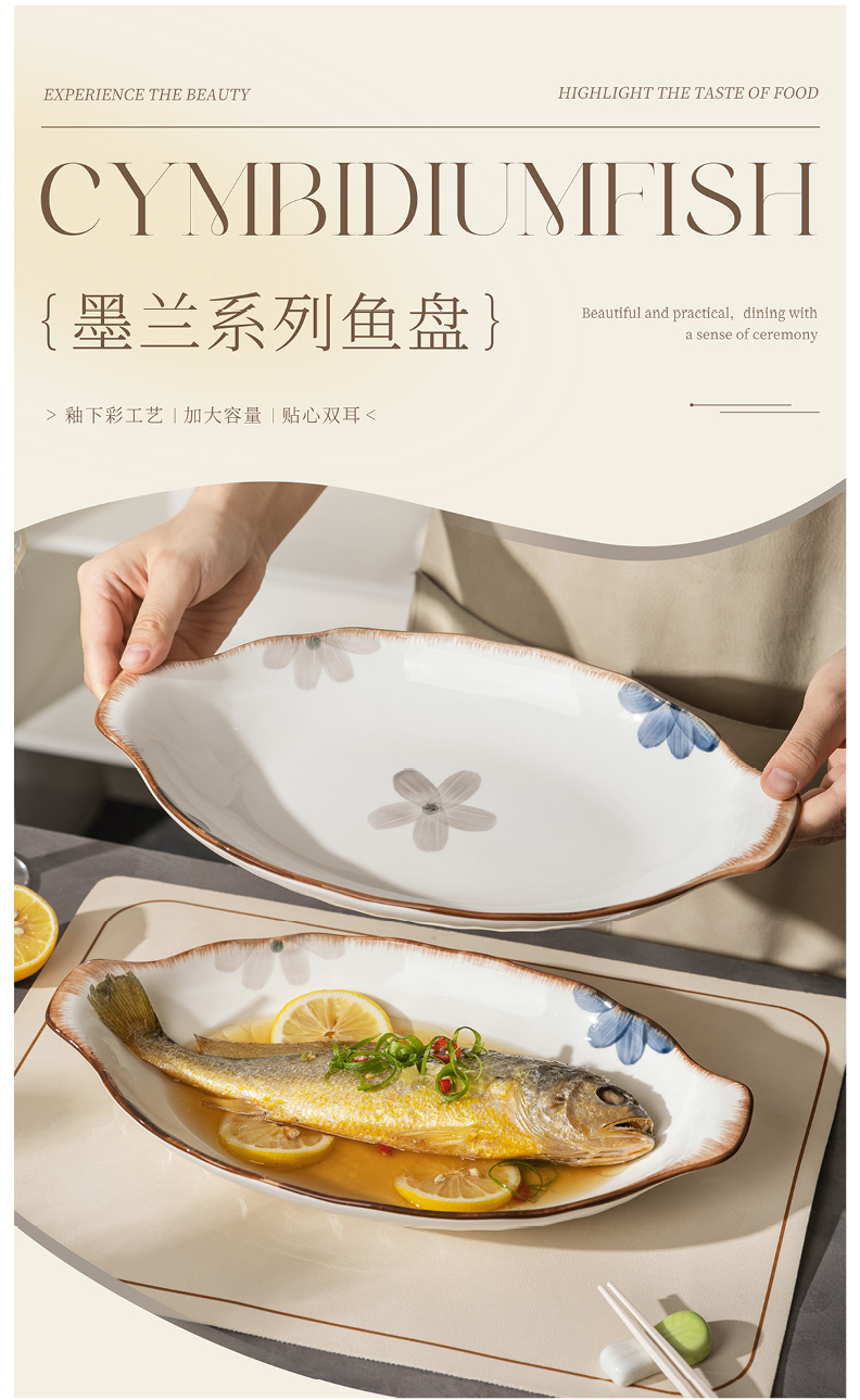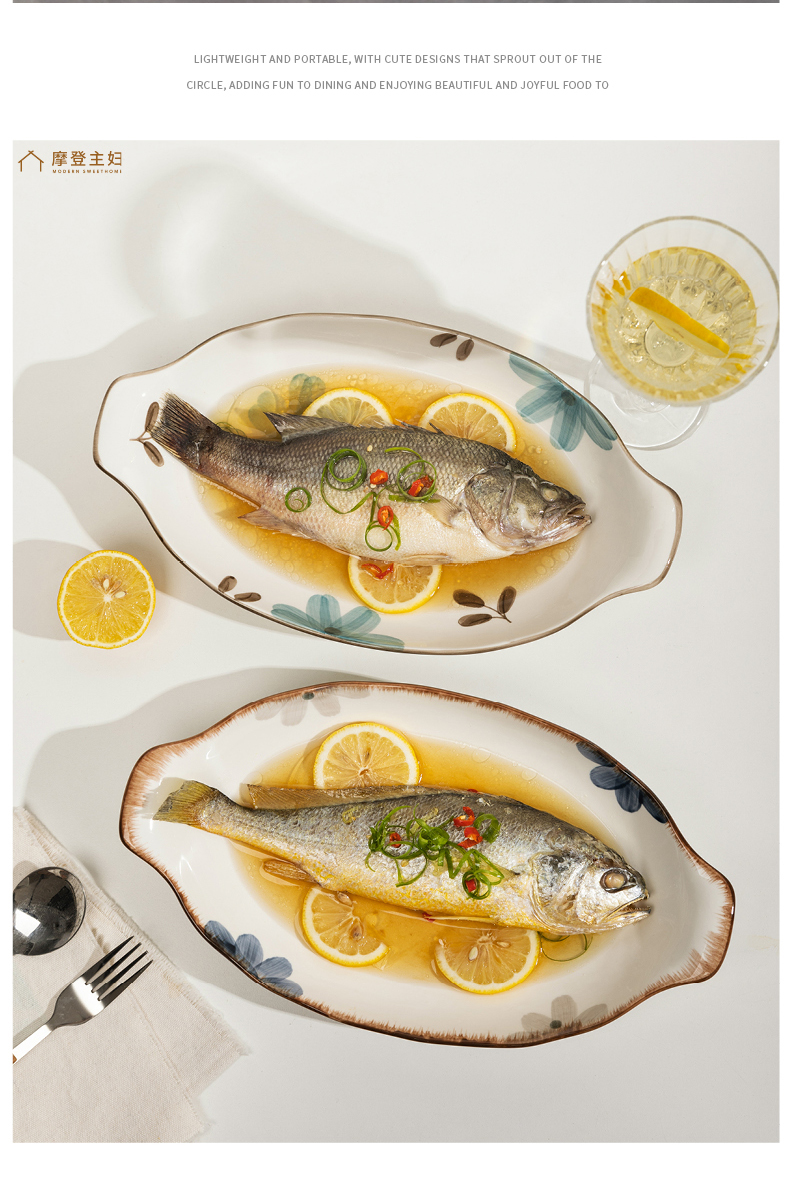 摩登主妇墨蓝蒸鱼专用盘子家用2024新款蒸鱼碟大号鱼碗高级感鱼盘