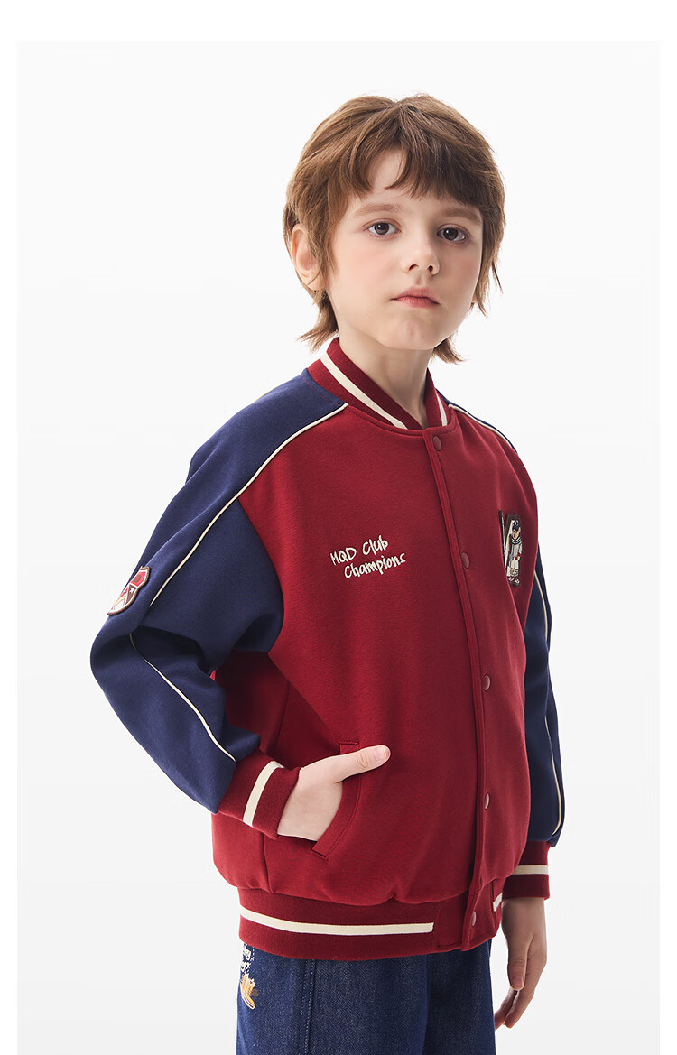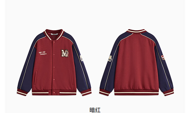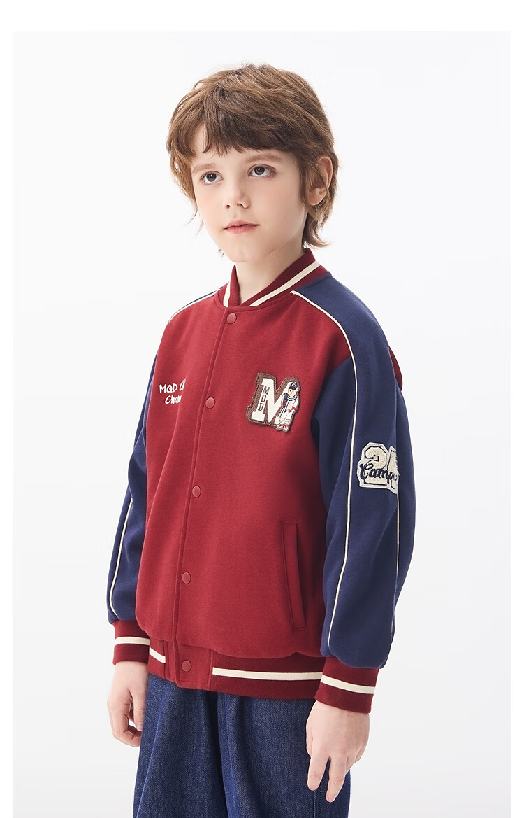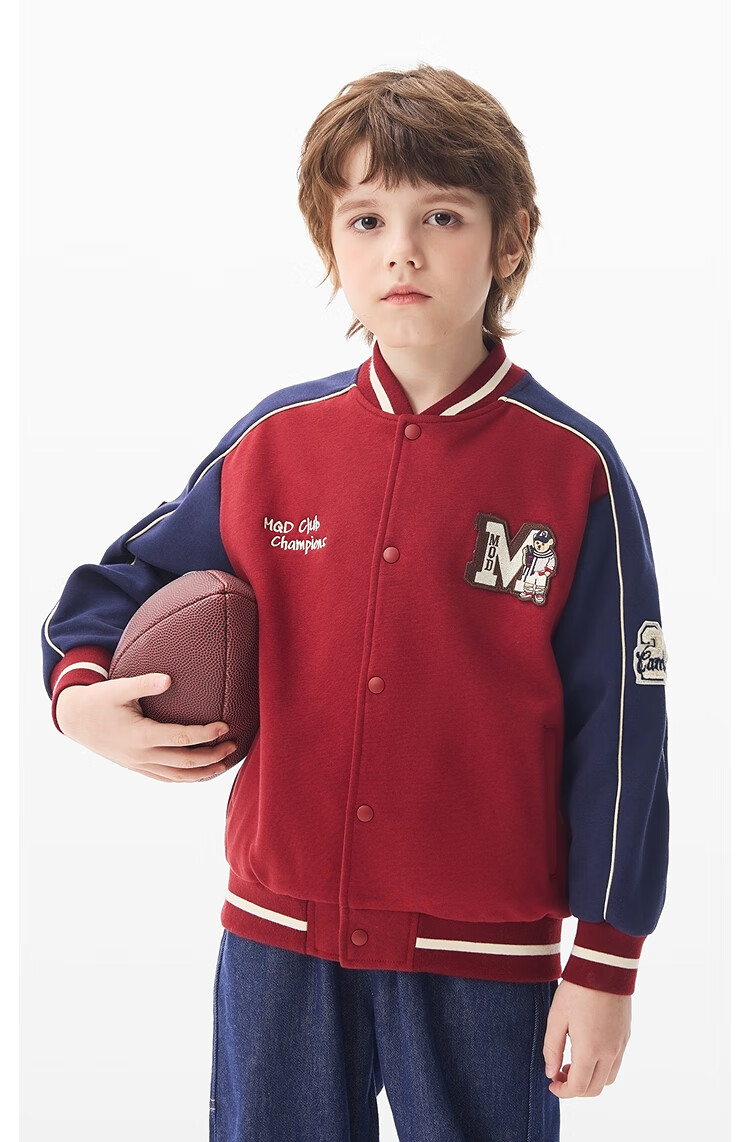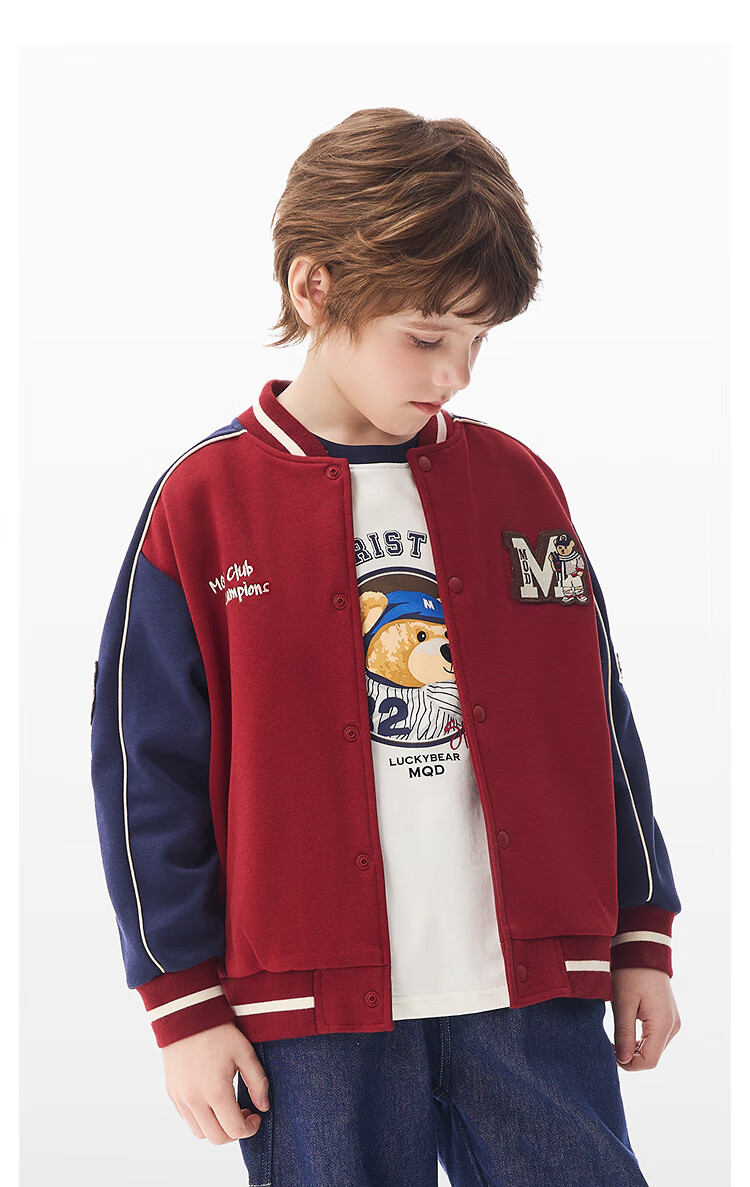【MQD】童装男大童春新款学院风经典字母撞色棒球领外套