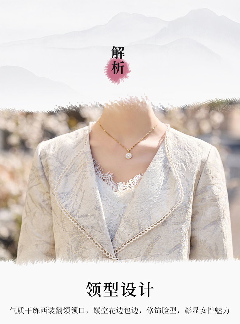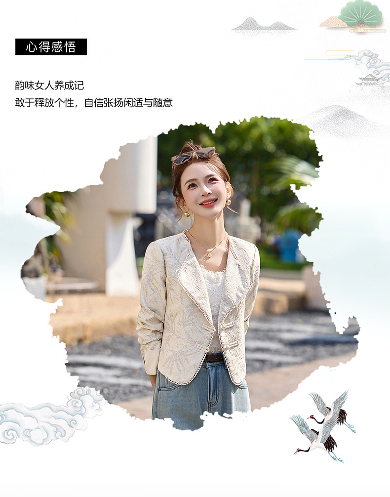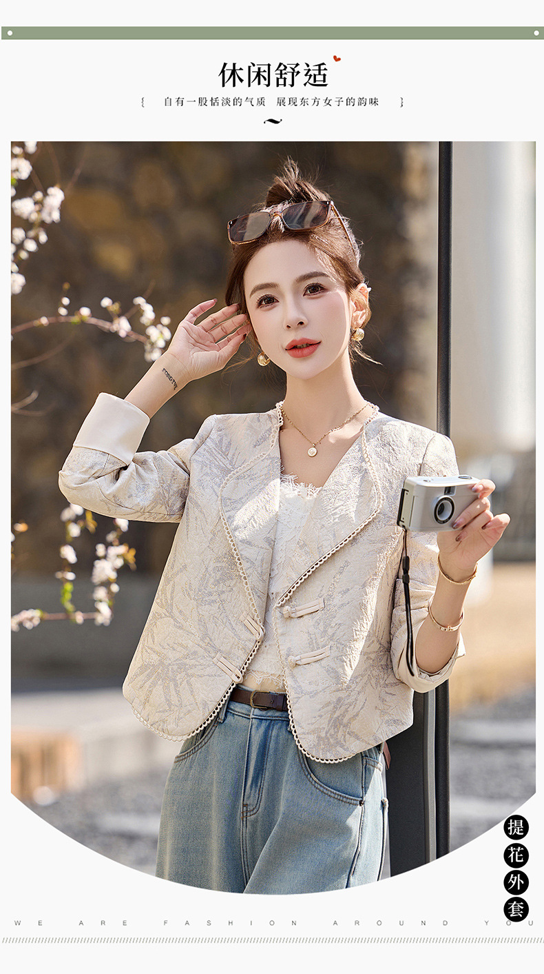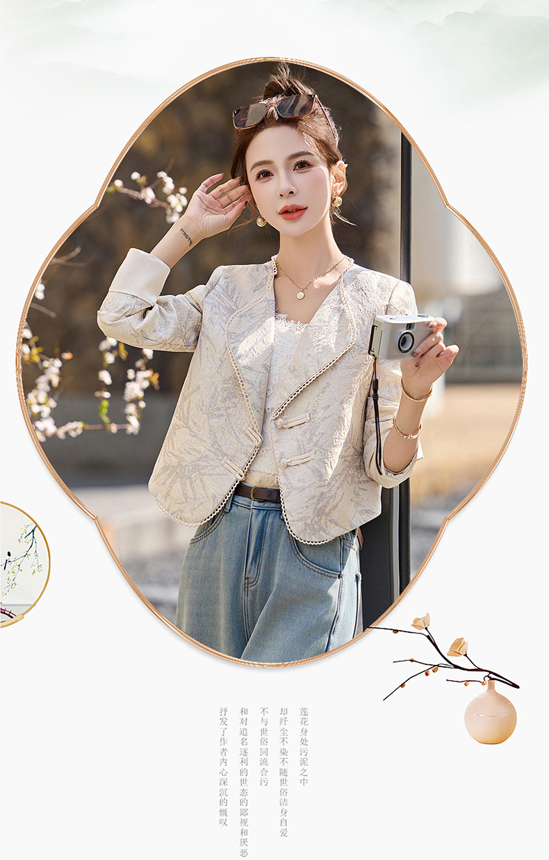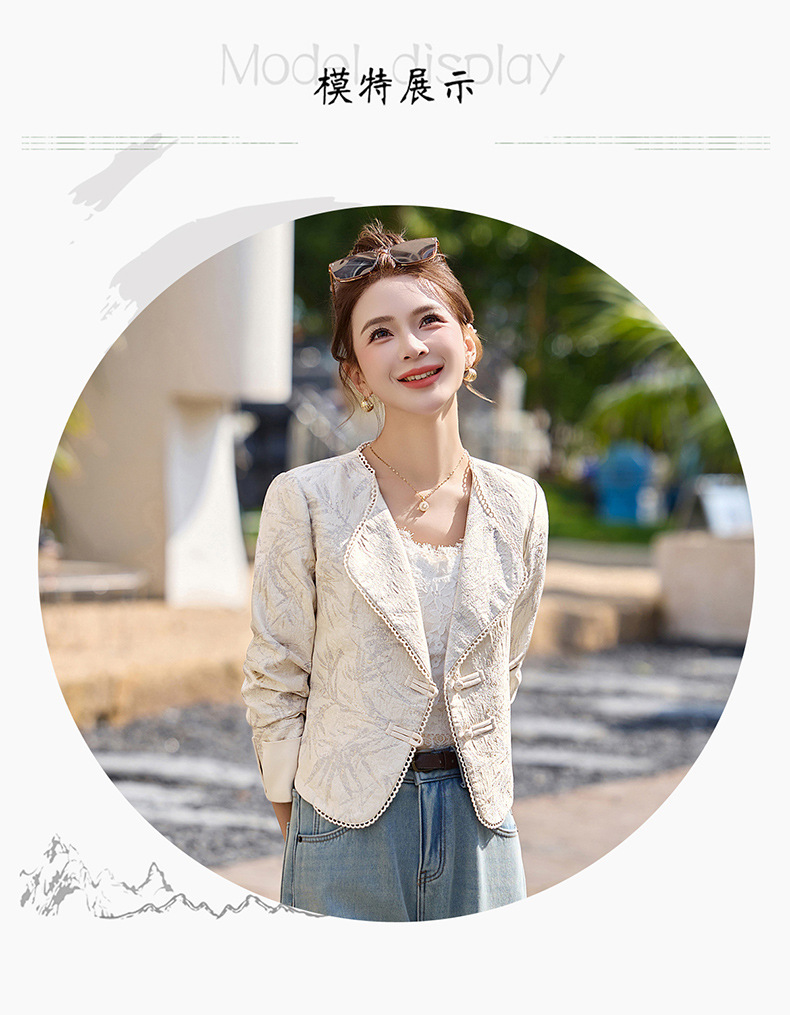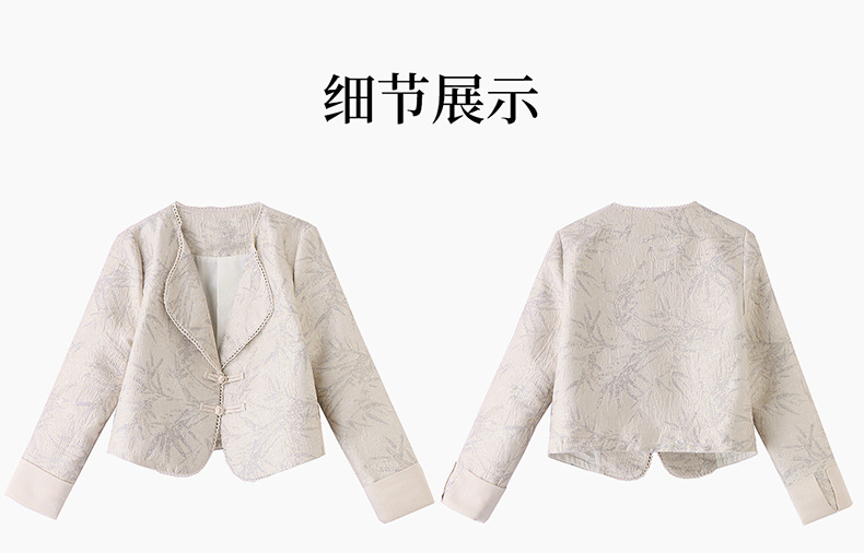 新中式国风竹叶提花,气质短外套轻奢撞色翻领西装上衣HR-LT8775