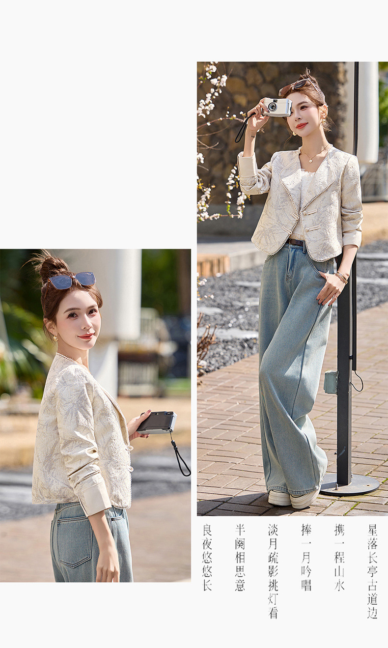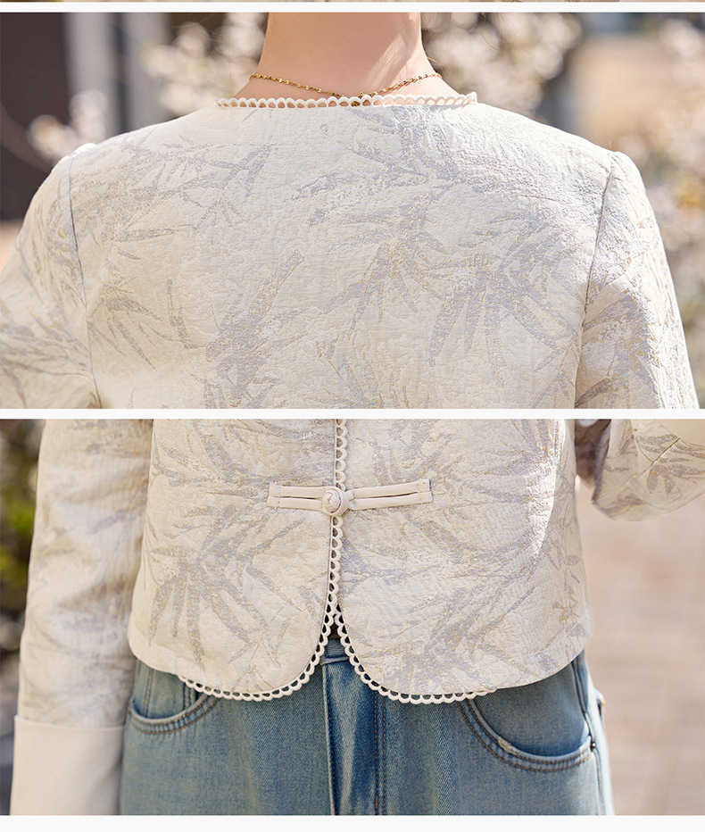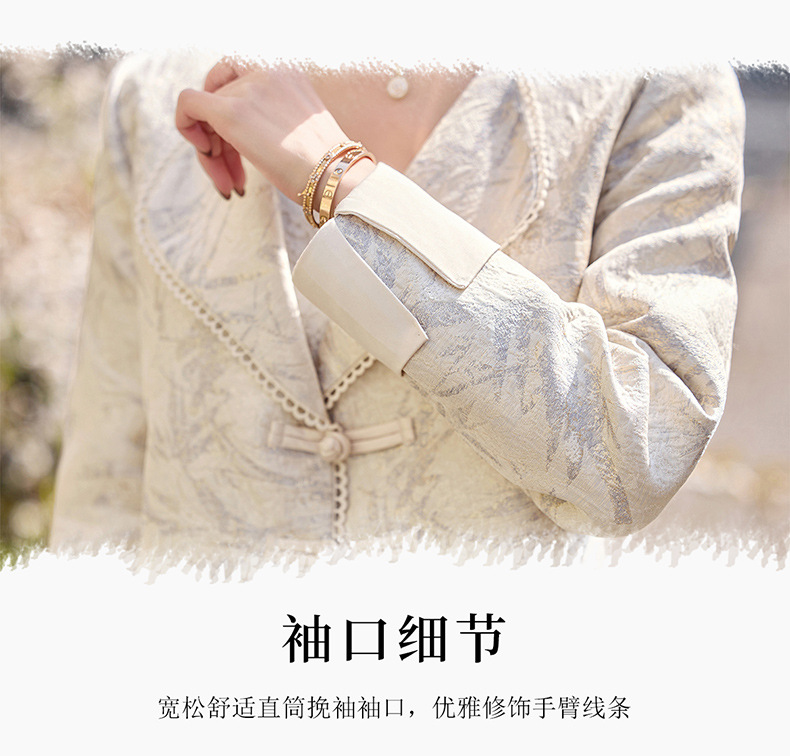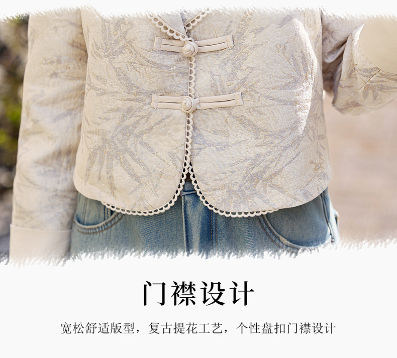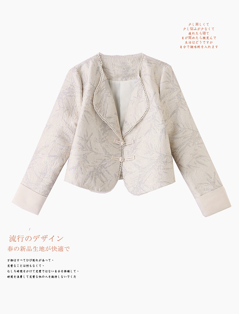 新中式国风竹叶提花,气质短外套轻奢撞色翻领西装上衣HR-LT8775