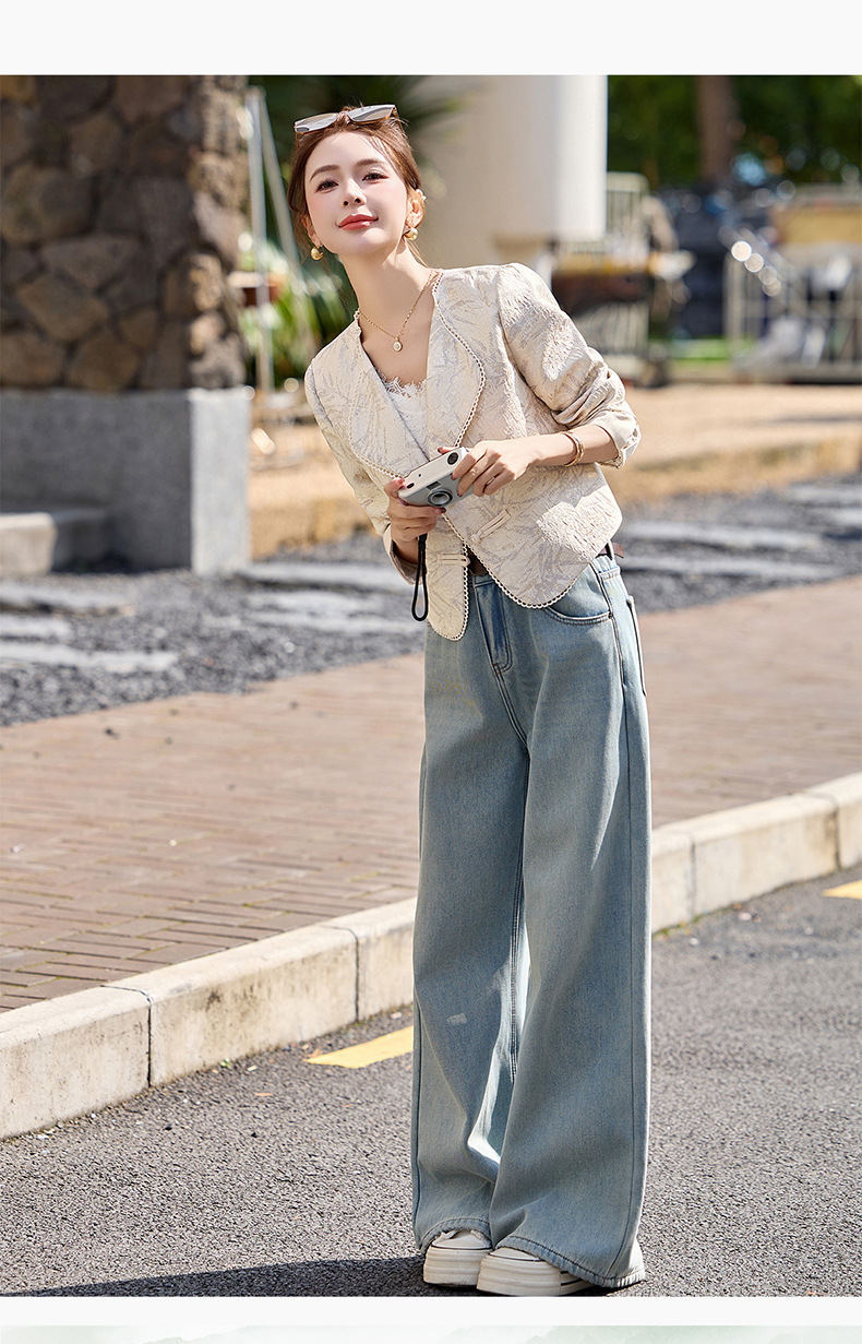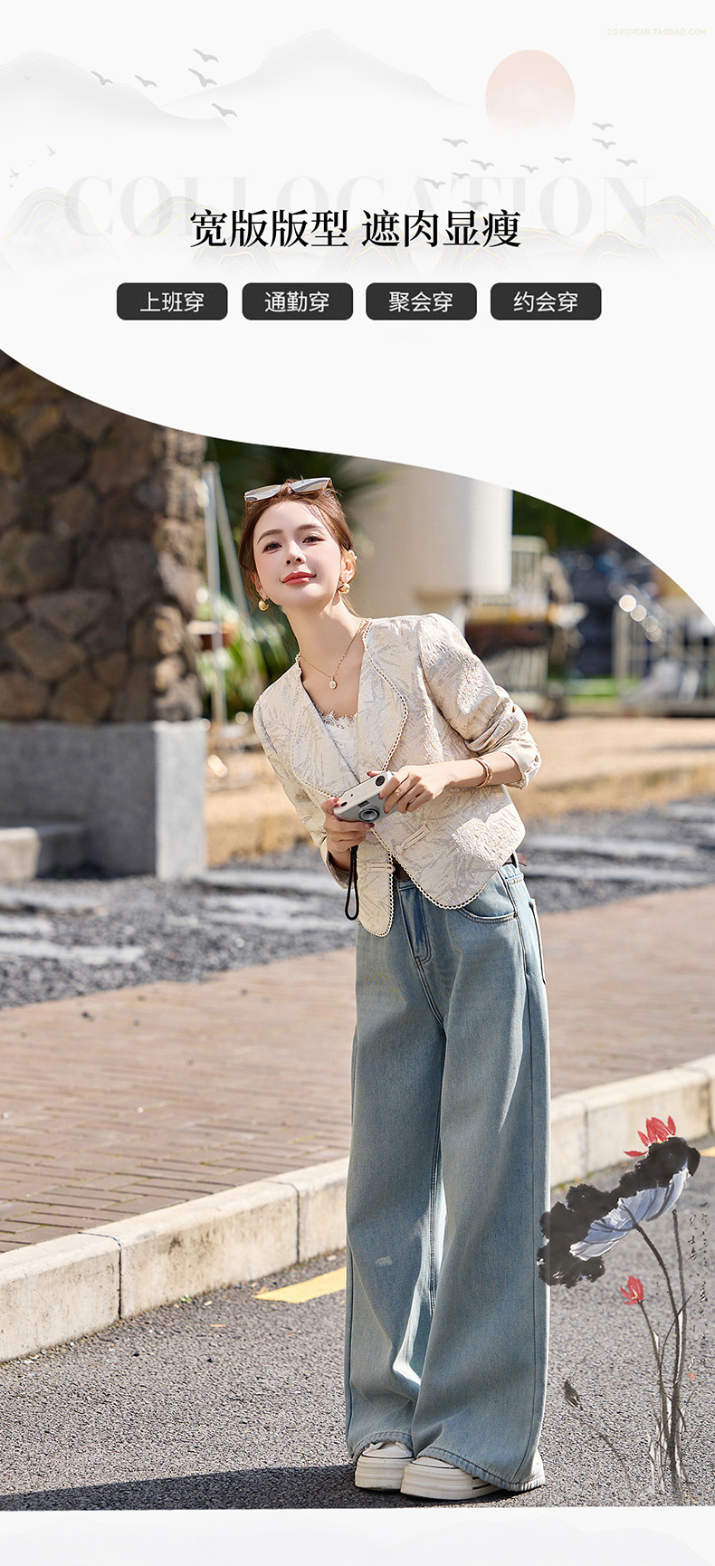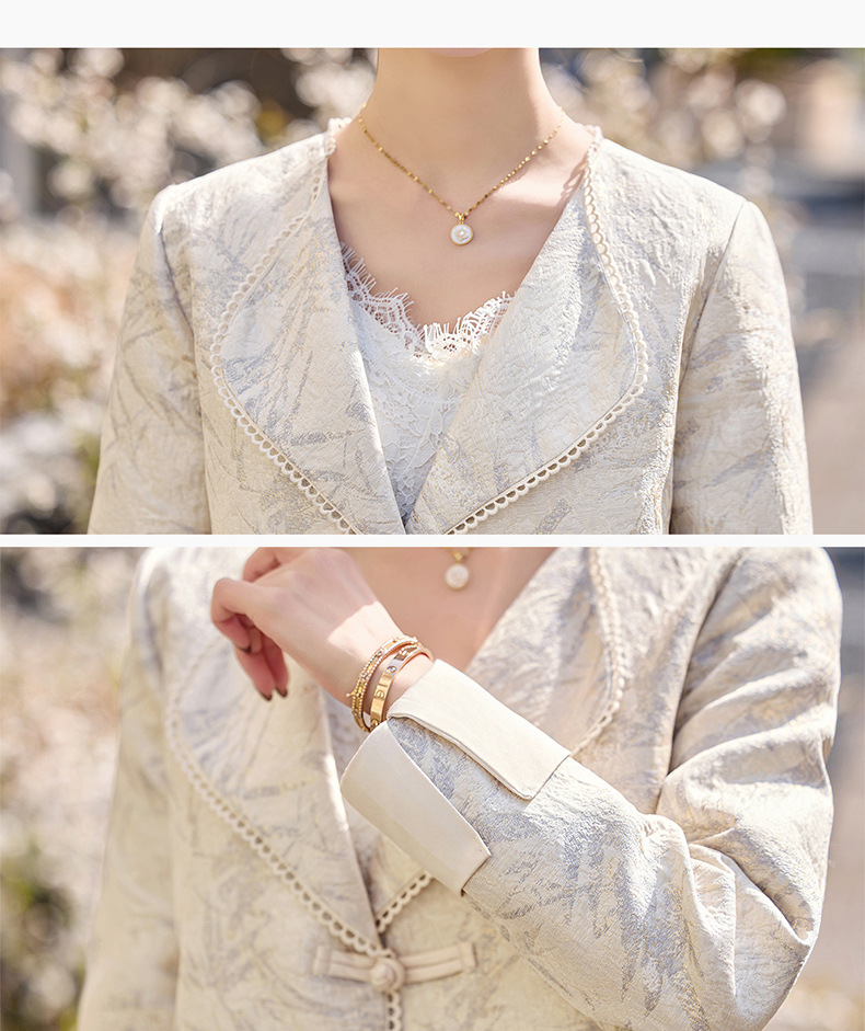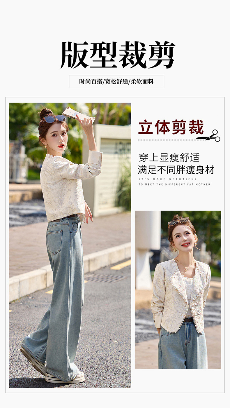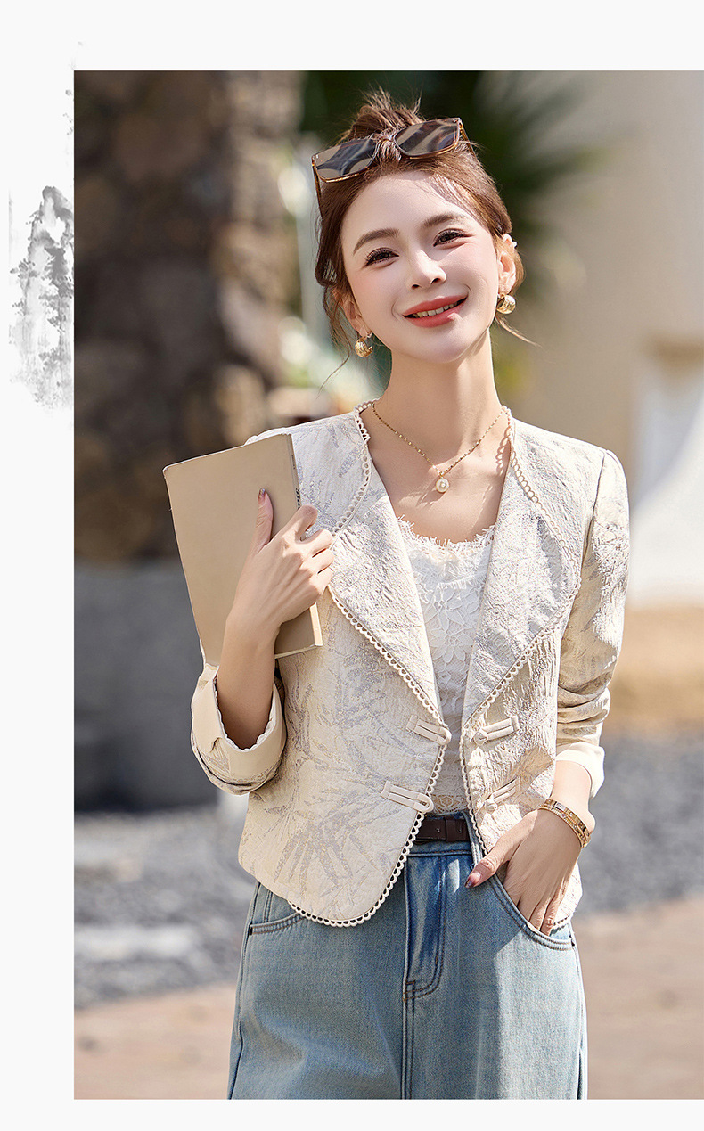新中式国风竹叶提花,气质短外套轻奢撞色翻领西装上衣HR-LT8775