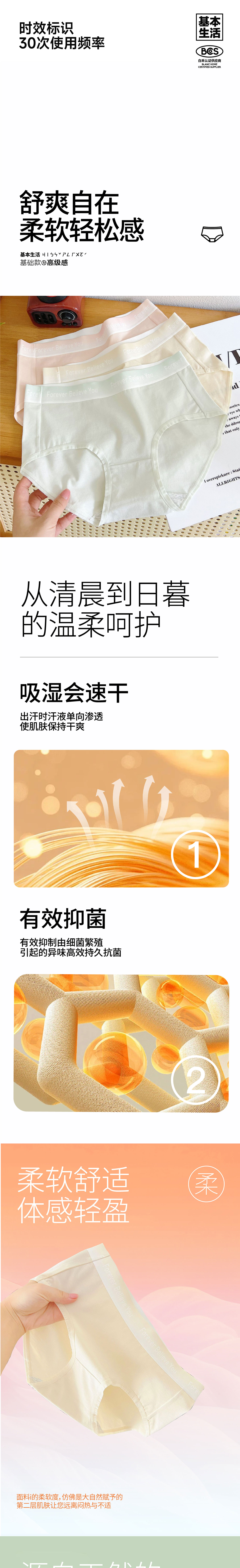 【白禾】基本生活女士三角内裤(单条装)-Ⅵ(颜色随机)