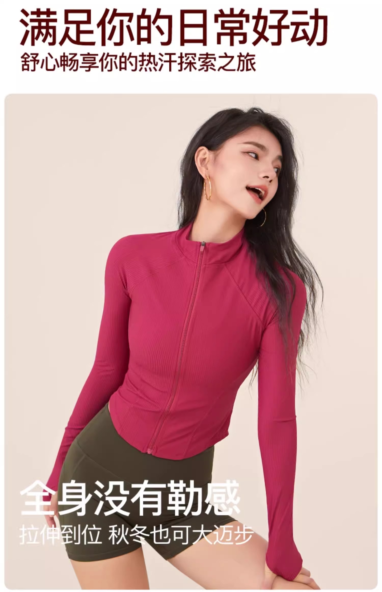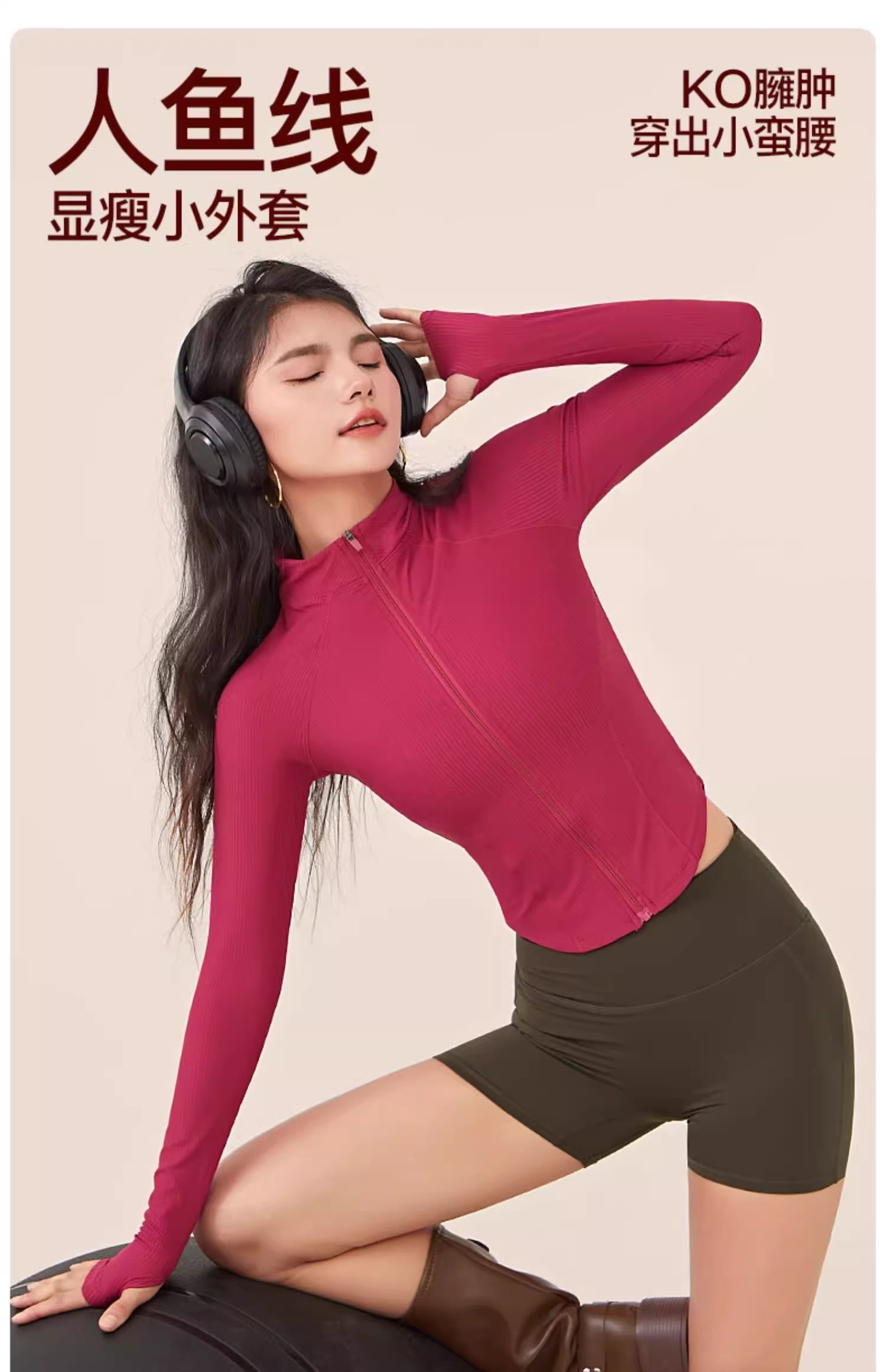 跃牌【禅语梵心】立领休闲跑步外穿瑜伽服女拉链修身运动外套高弹户外裸感健身夹克WT4061