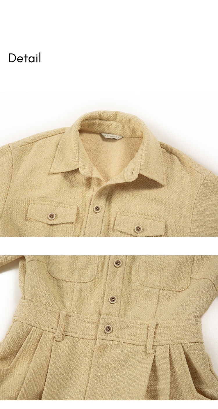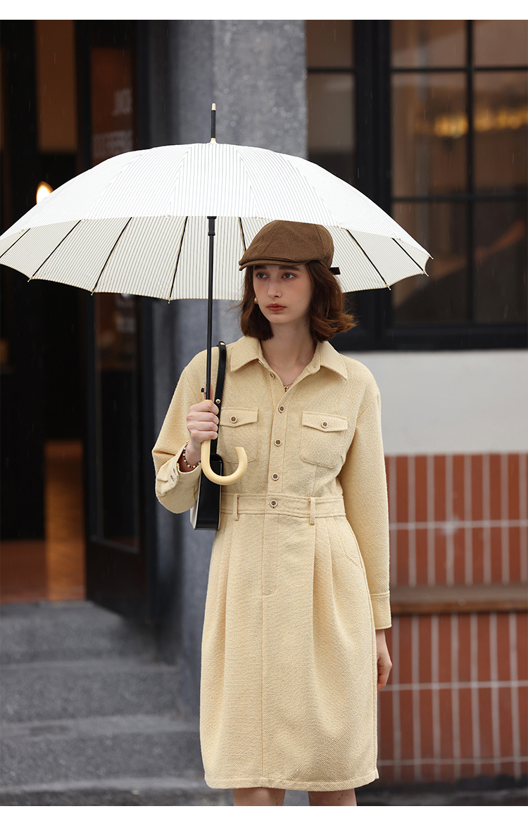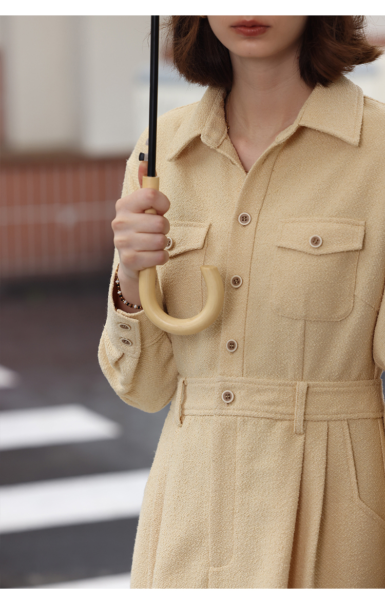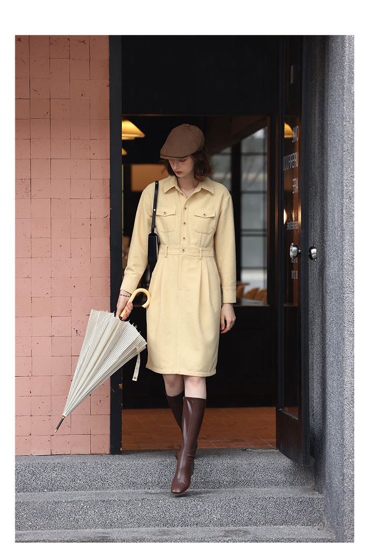 HeyDress香风洋装女秋冬法式翻领复古黄色衬衫裙收腰气质羊毛裙