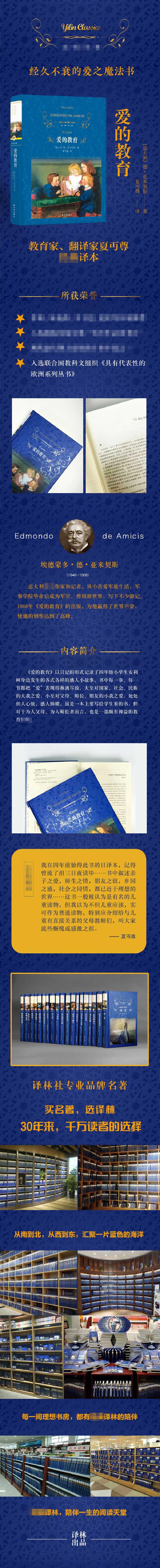 《爱的教育》采用日记的形式,以孩子的口吻、孩子的笔触来记录四年级小学生安利柯身边发生的各式各样的感人小故事,反映了意大利中下层人民穷困的生活和淳朴、友爱的品德,提倡爱国、善良、勇敢、宽大、无私和博爱等精神。书中每一章、每一节都把“爱”表现得淋漓尽致,大至对国家、社会、民族的大我之爱,小至对父母、师长、朋友的小我之爱,处处扣人心弦,感人肺腑。虽是一本主要写给学生看的书,但对于为人父母、为人师长者而言,也是一部颇有裨益的教育。