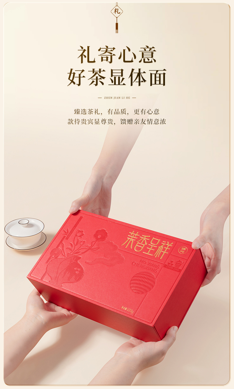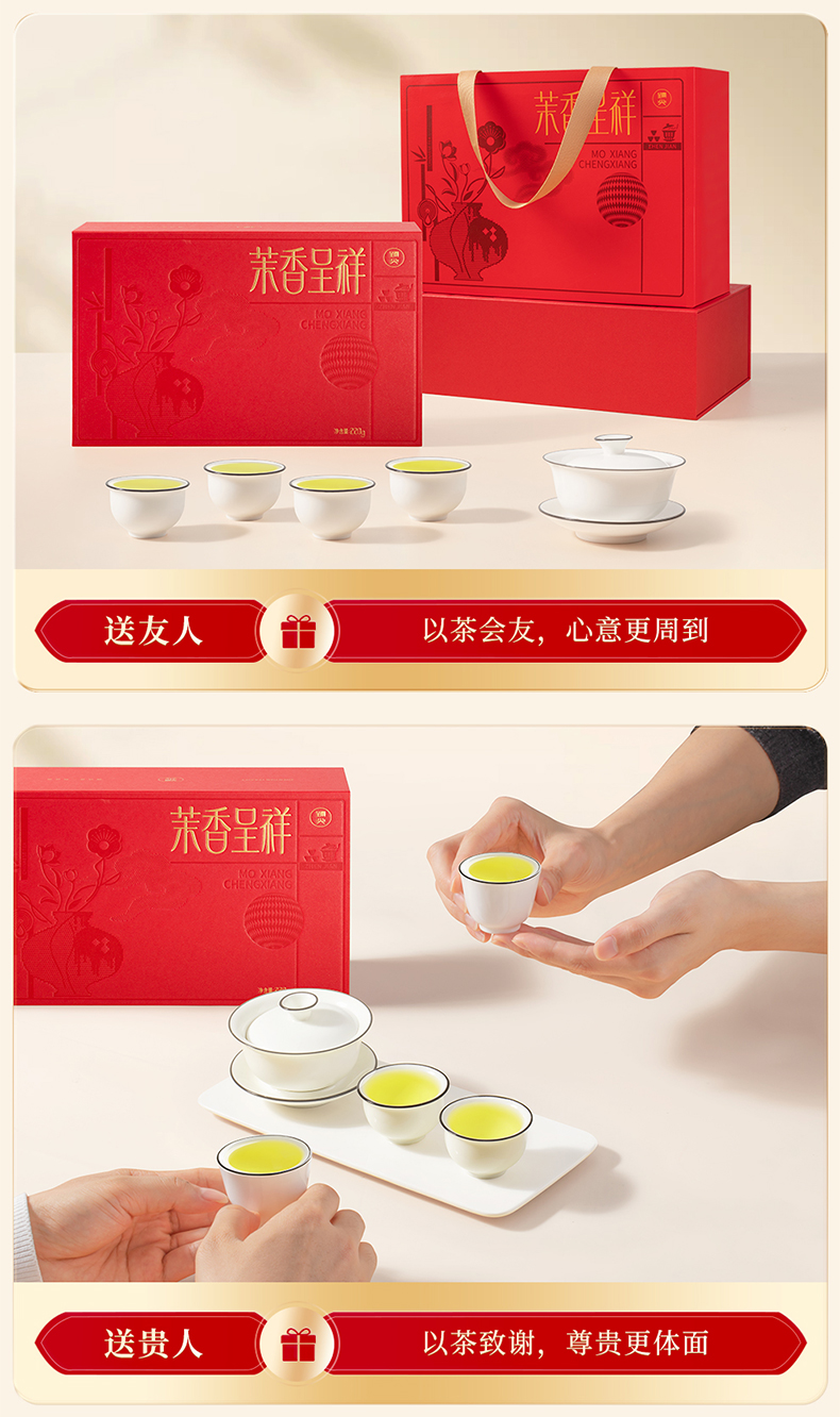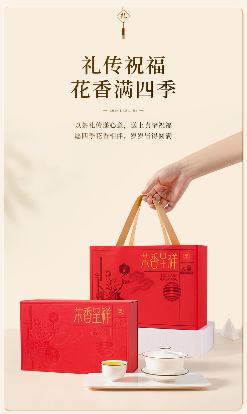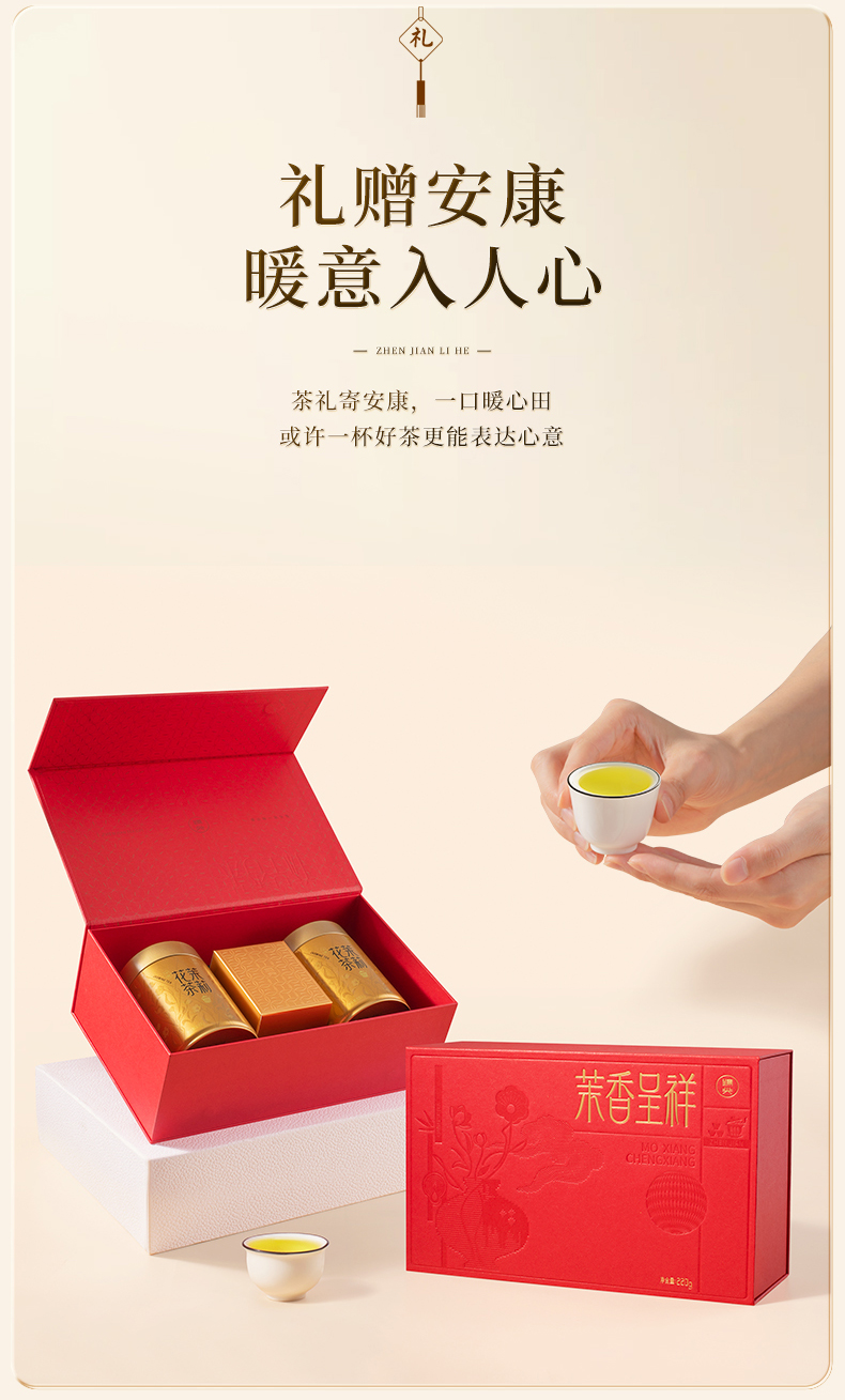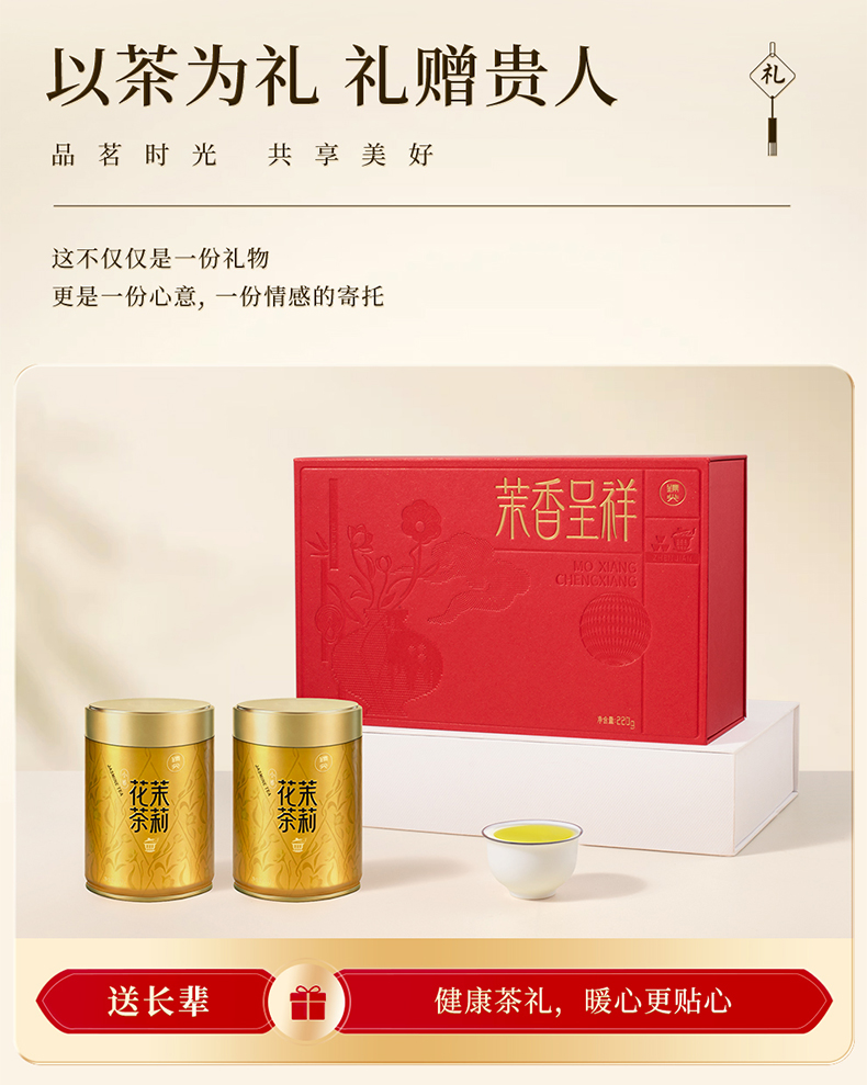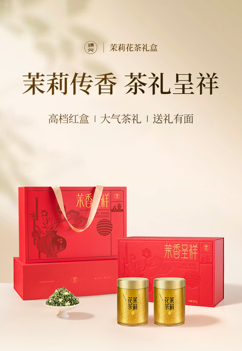 【臻尖-茉香呈祥红色礼盒】新花新茶茉莉飘雪花茶四川茉莉花茶 节日送礼长辈高档花茶茶叶礼盒