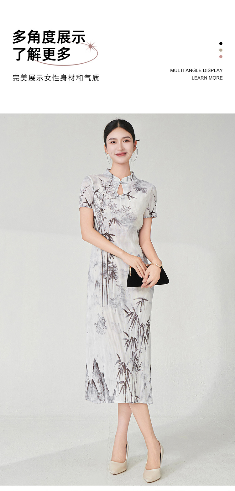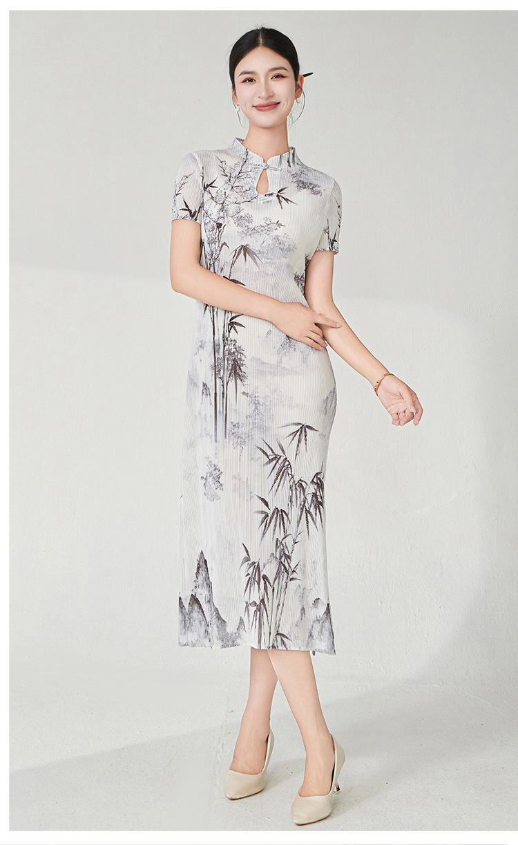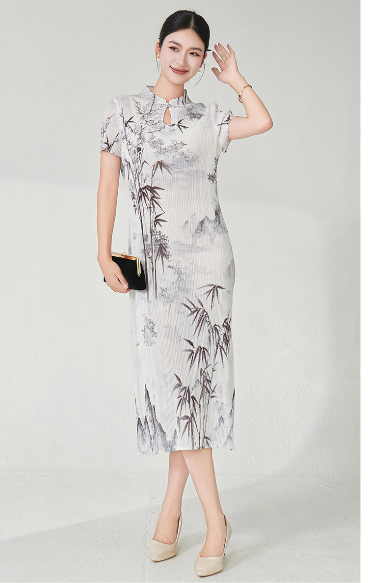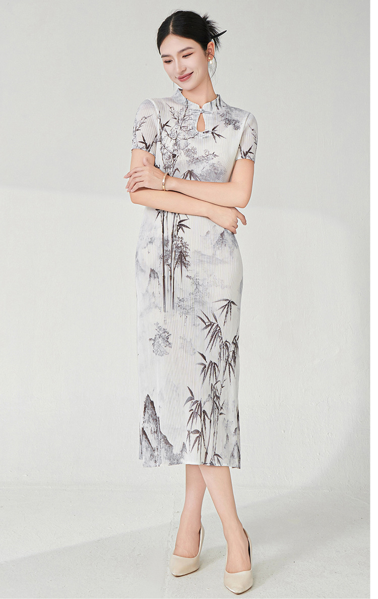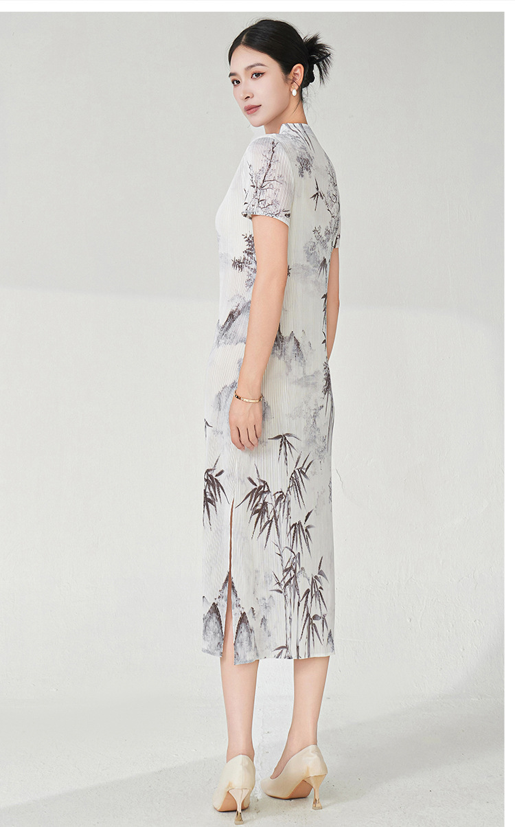 「自」全新升级【铂金会员247/天猫329/差价82】(84629)洛诗琳新中式改良旗袍裙2025复古水墨印花开叉褶皱连衣裙