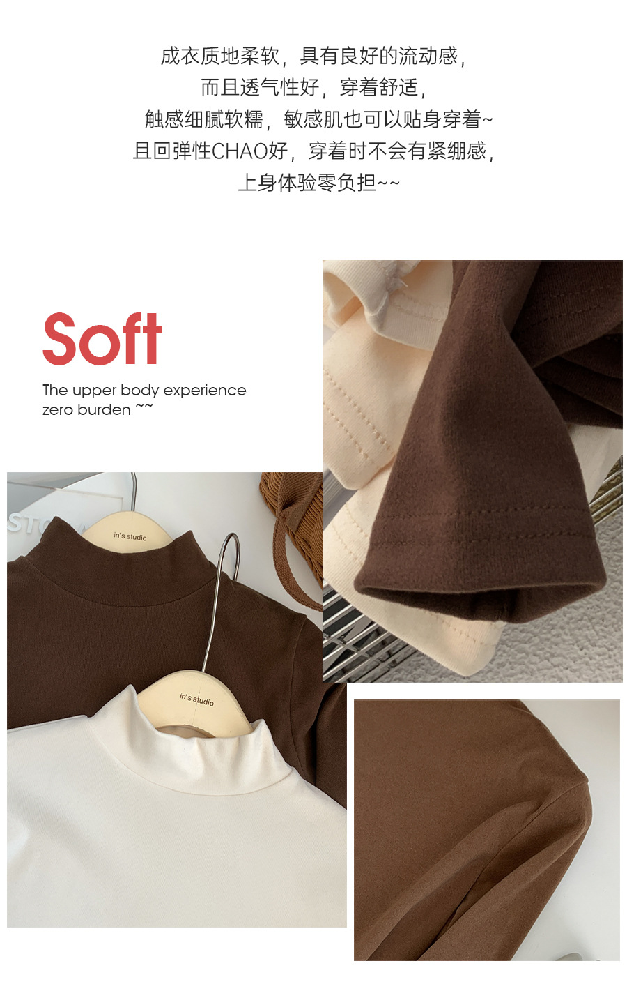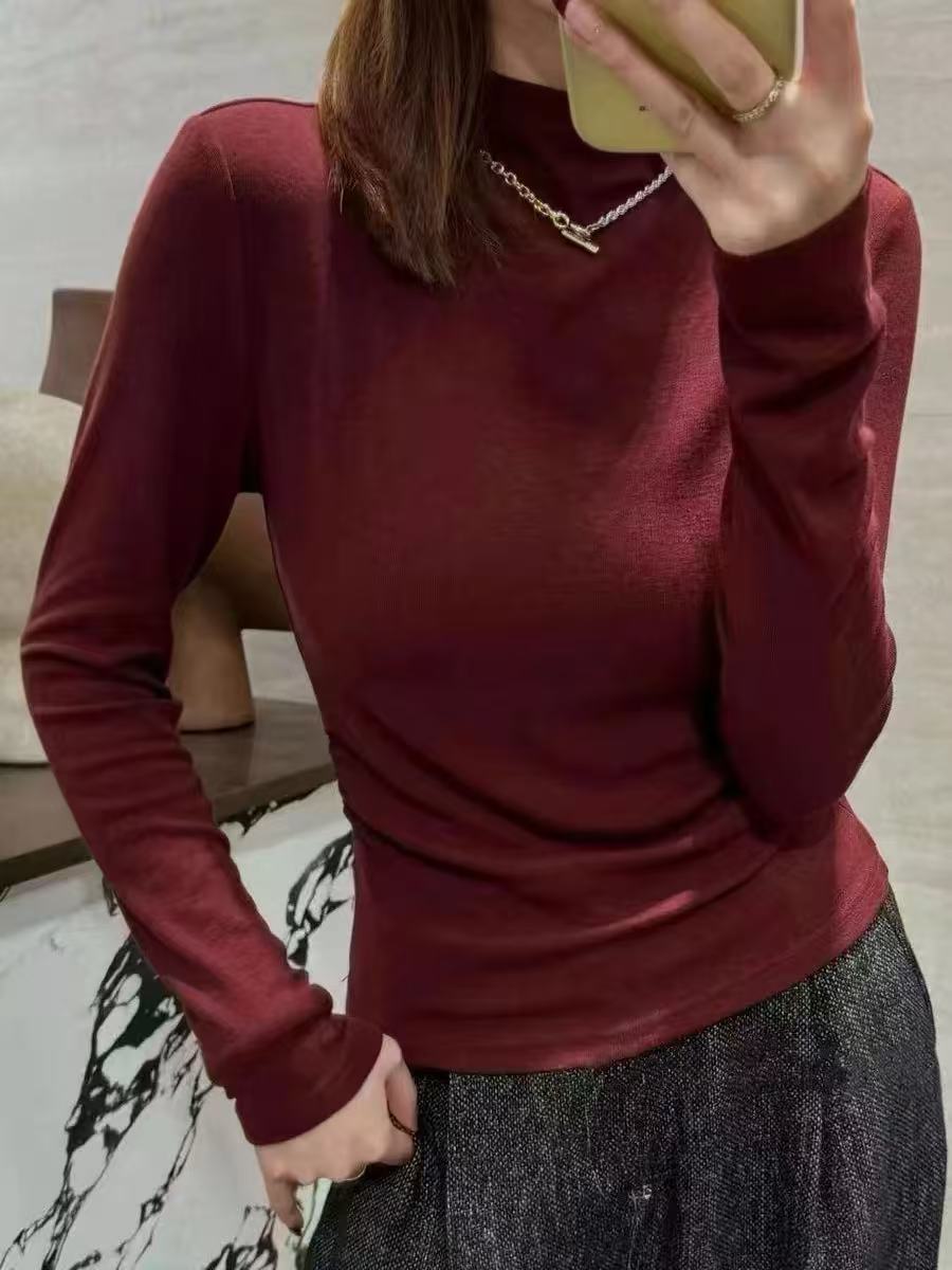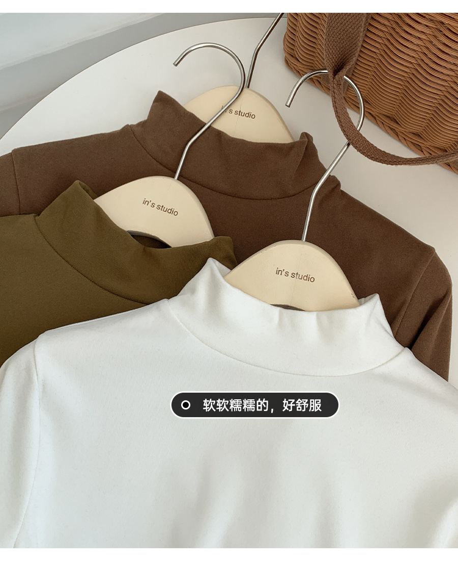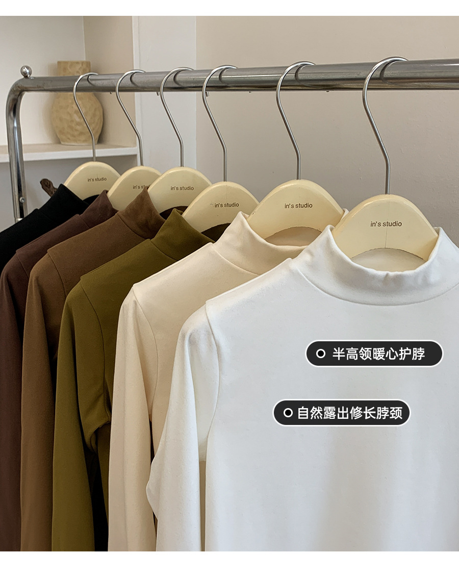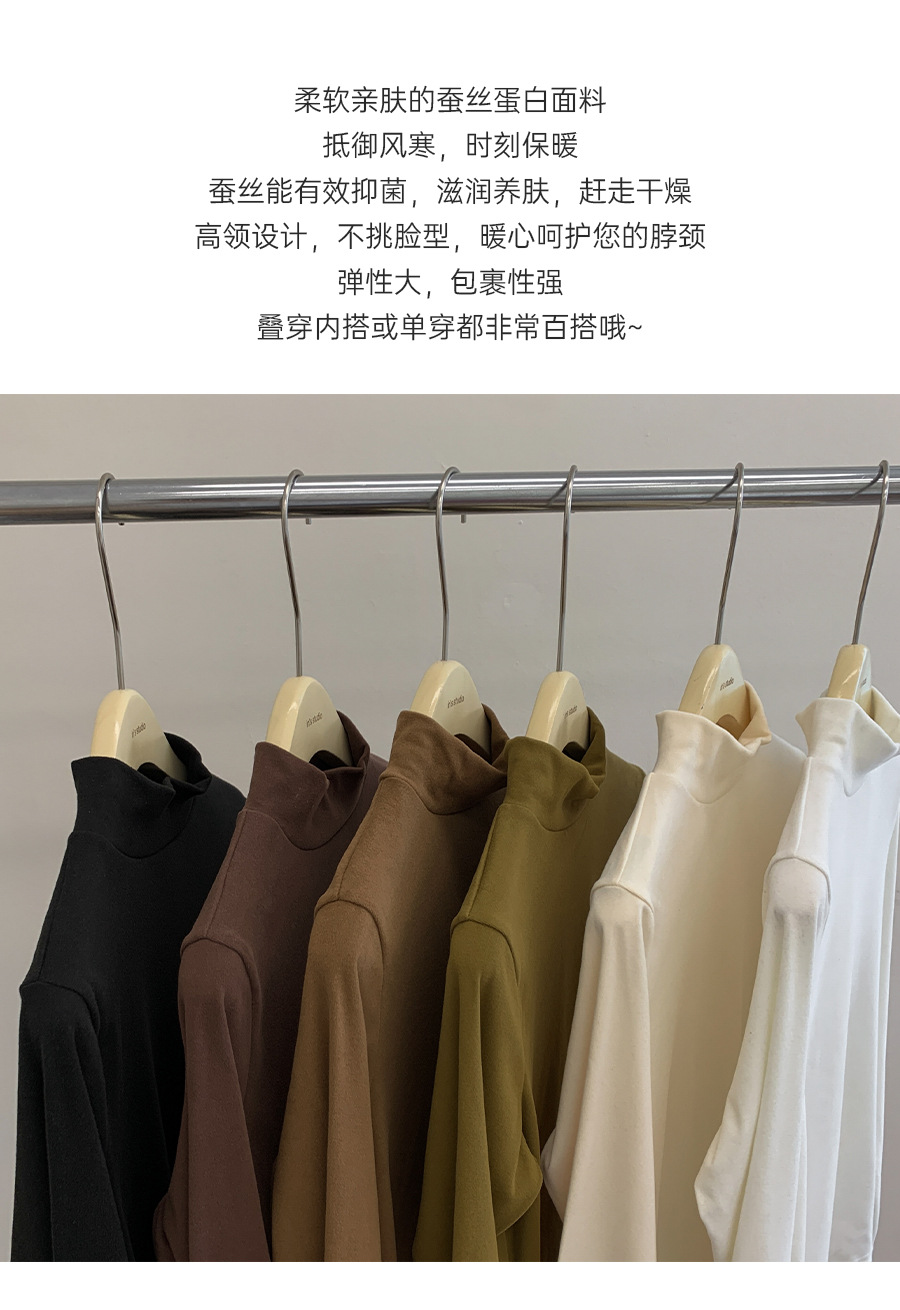 【轻薄软糯❗️精致锁边】半高领打底衫女韩系简约百搭长袖上衣秋冬修身纯色保暖打底内衣。ja