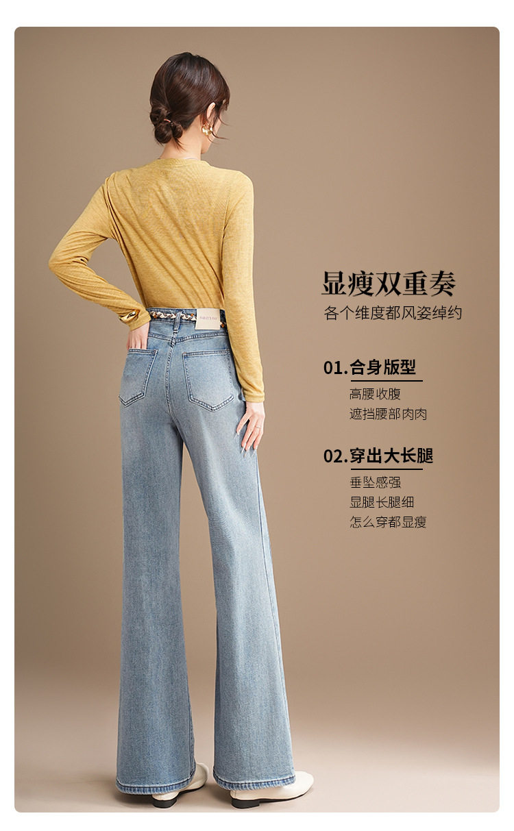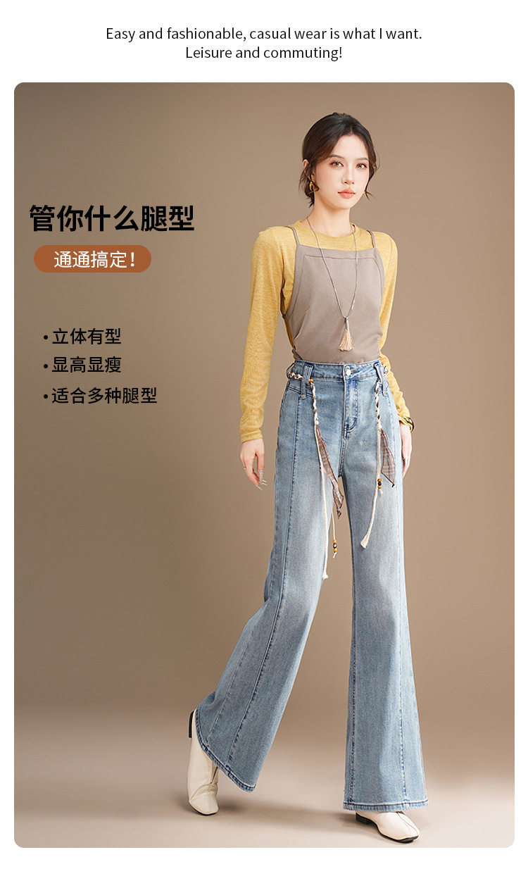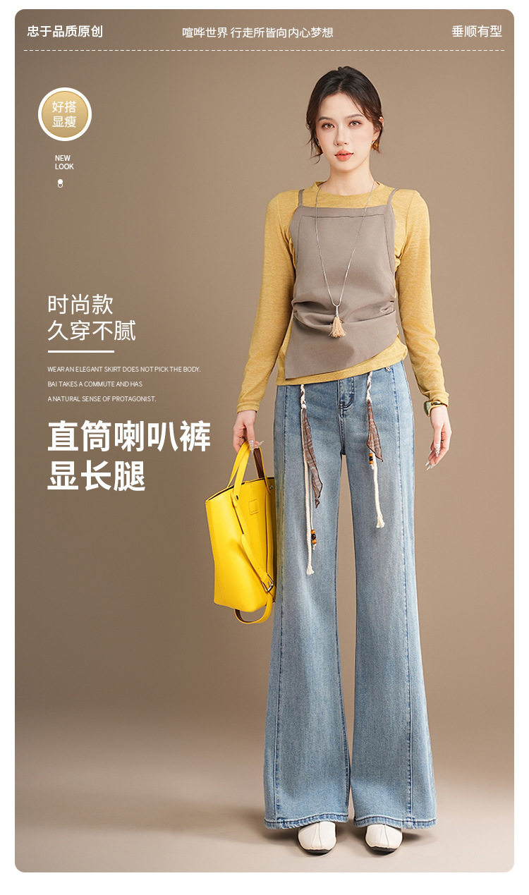 「自」全新升级【铂金会员192/天猫259/差价67】(01920)洛诗琳气质微喇牛仔裤2026春季新款高腰显瘦腰带直筒裤女