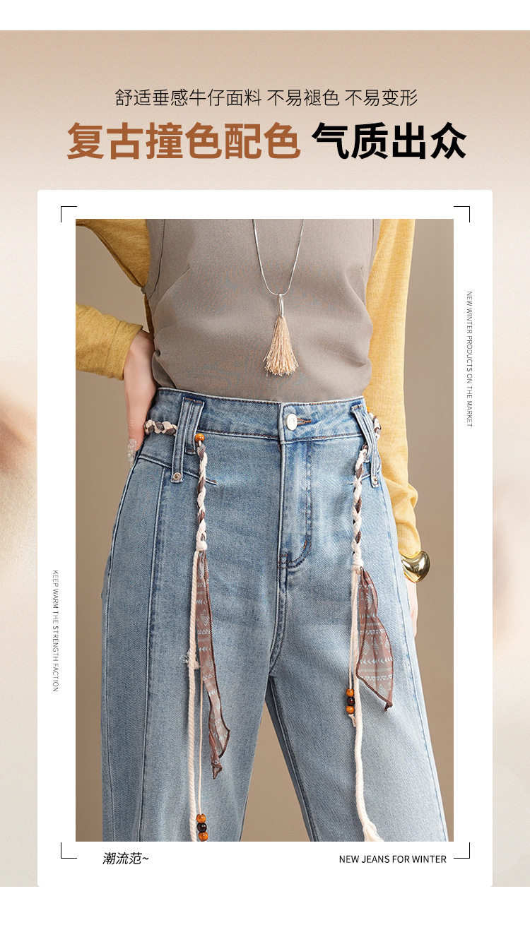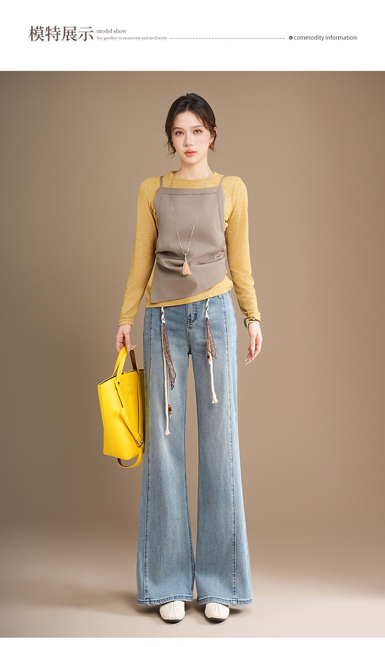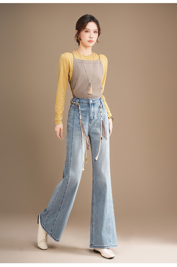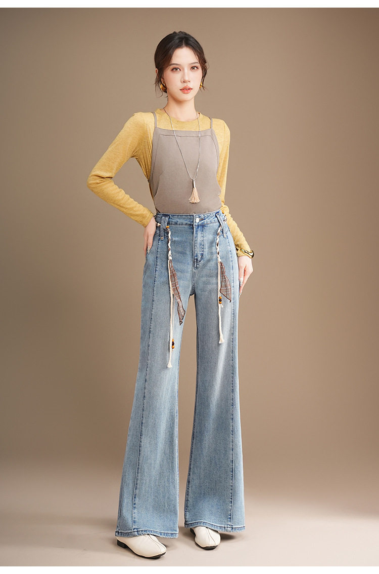 「自」全新升级【铂金会员192/天猫259/差价67】(01920)洛诗琳气质微喇牛仔裤2026春季新款高腰显瘦腰带直筒裤女