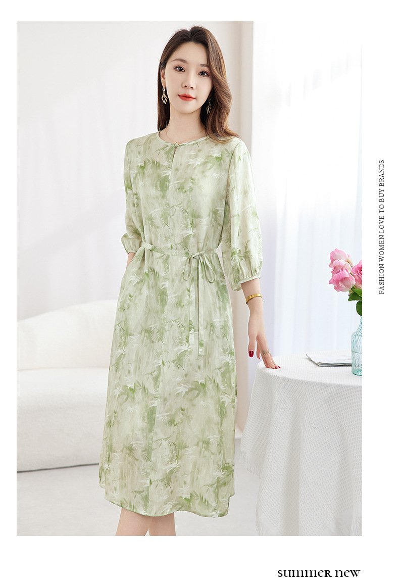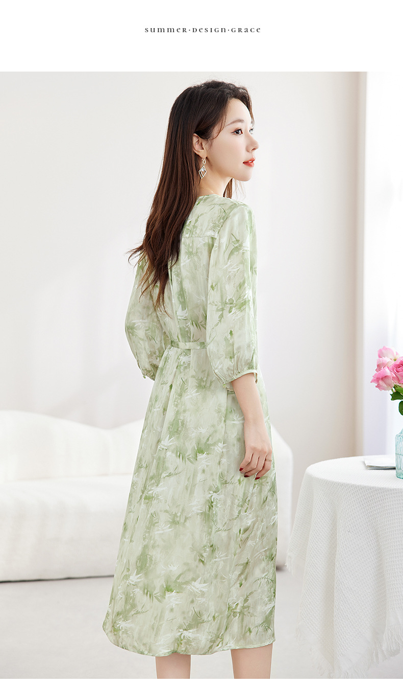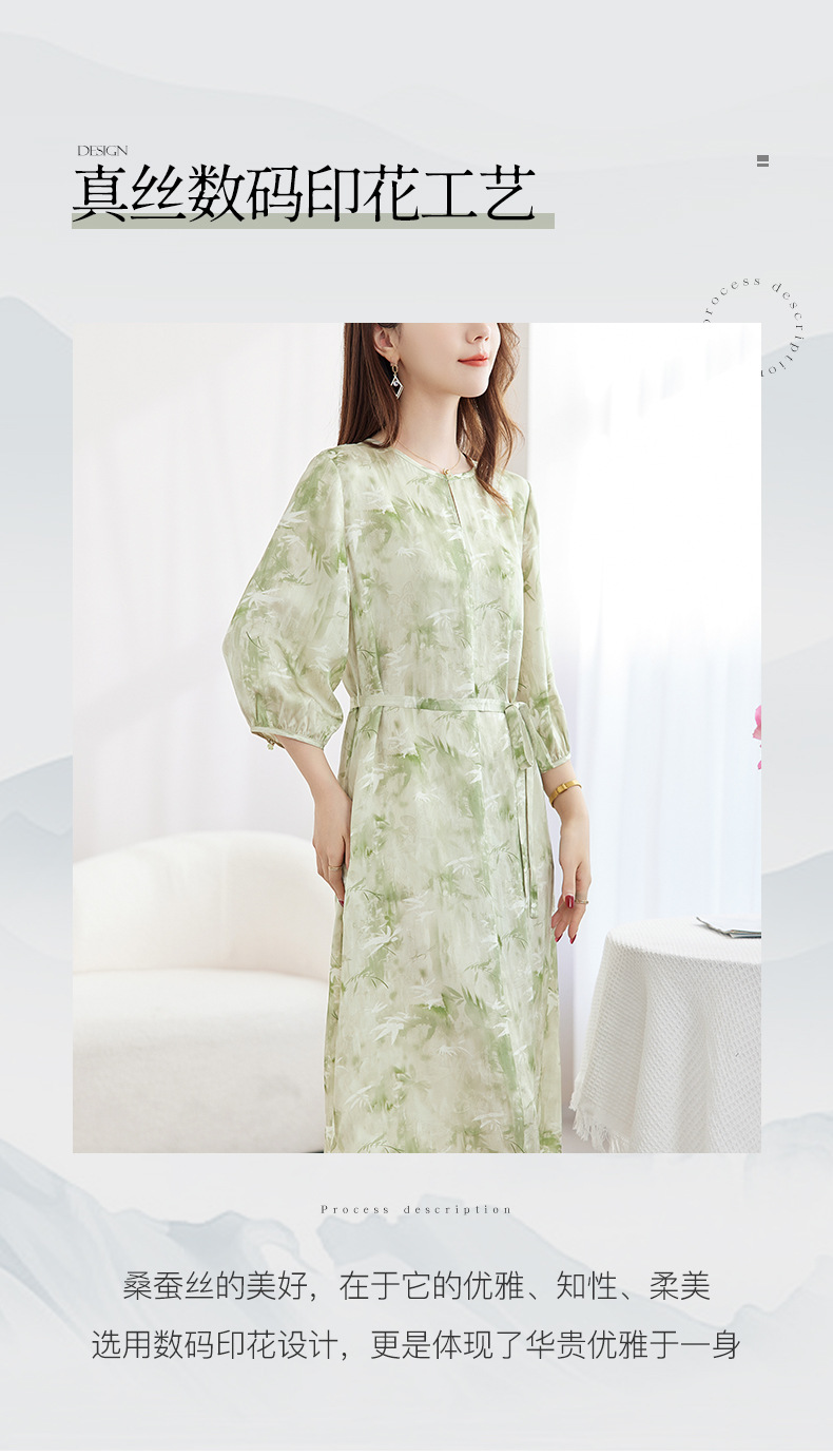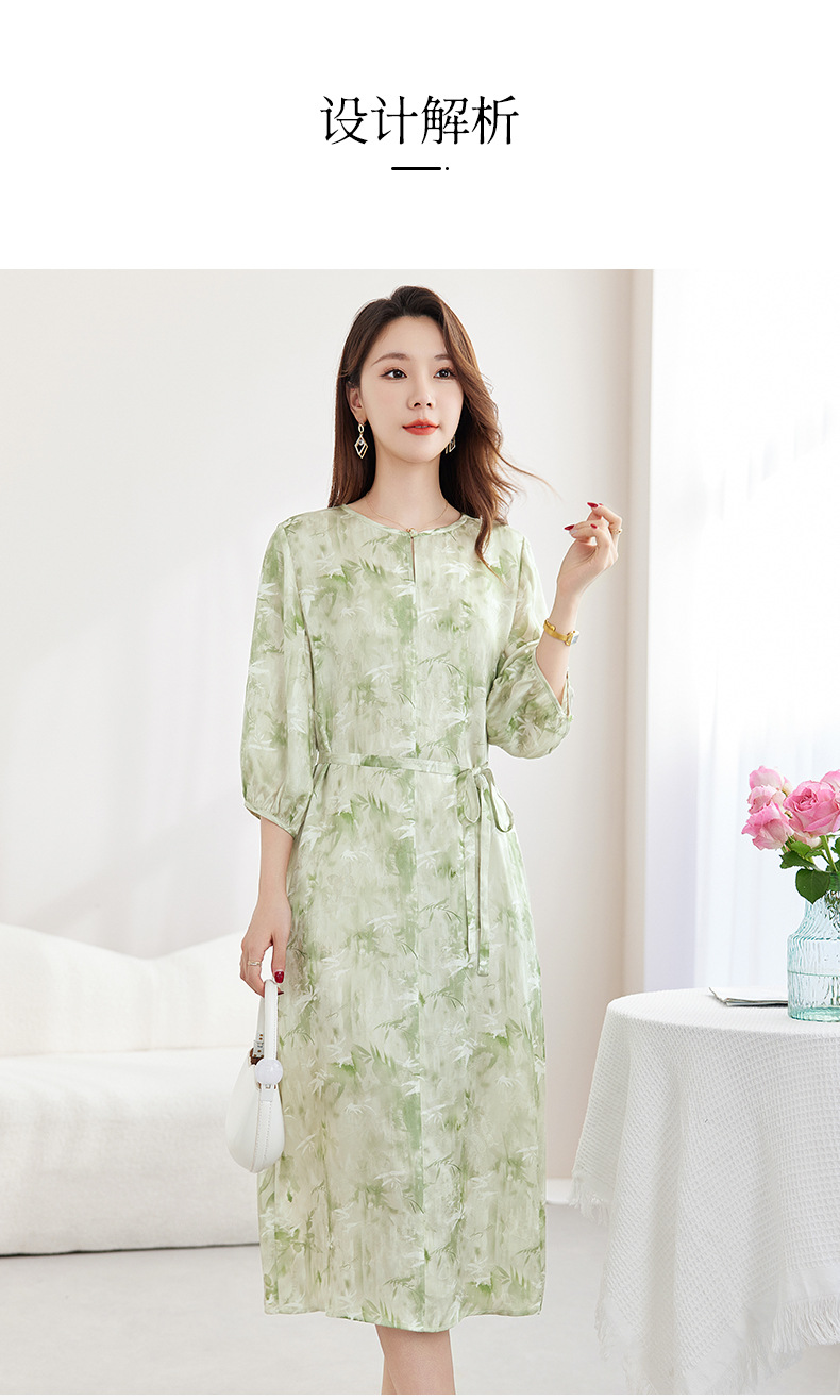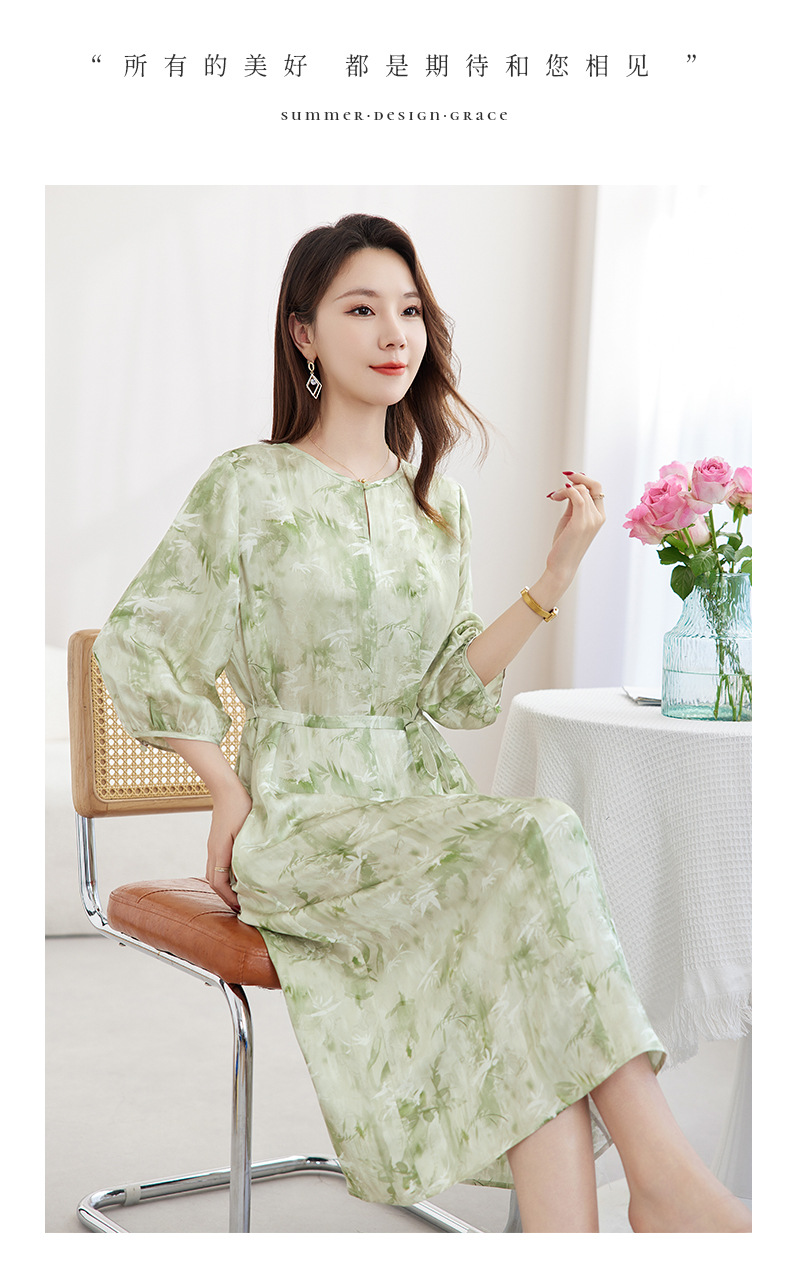 QS-82599730【休闲度假】原创桑蚕丝女装夏季新丝粘花螺真丝印花连衣裙女9730