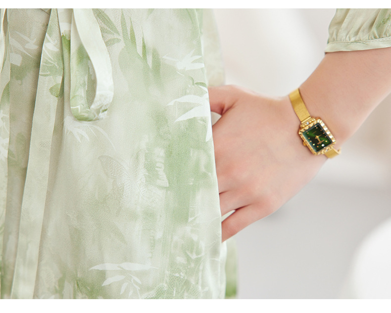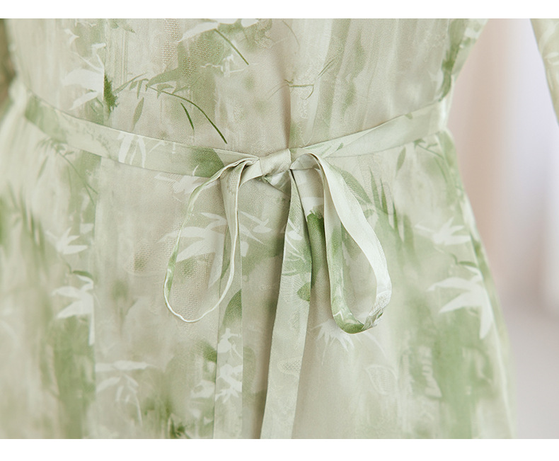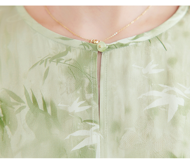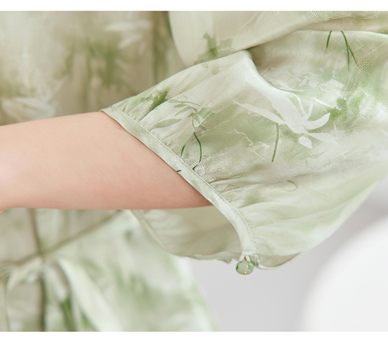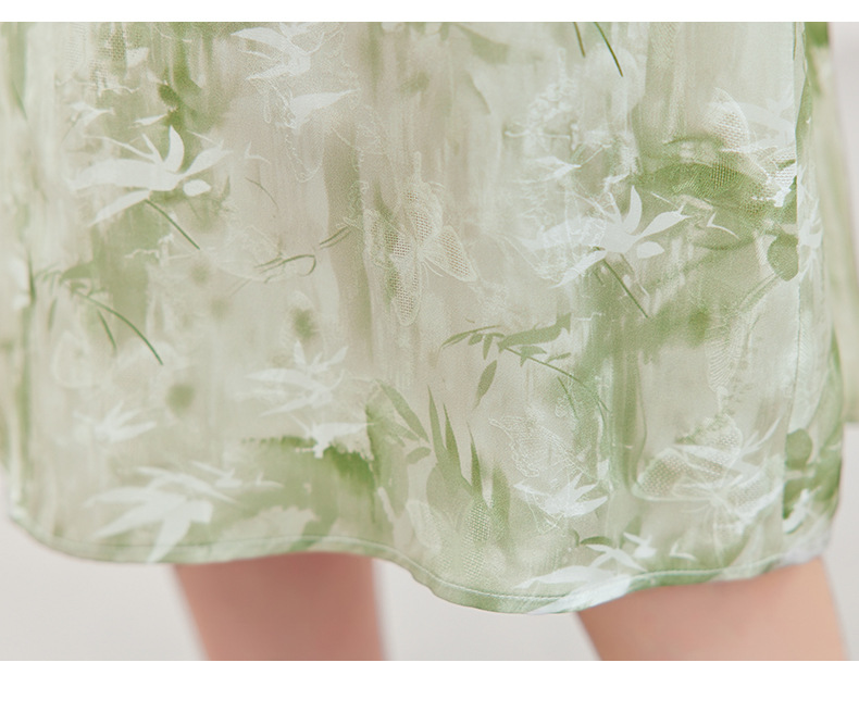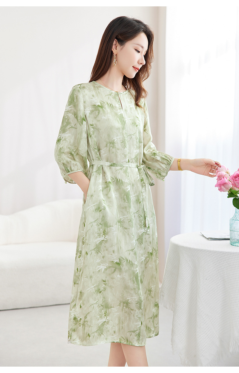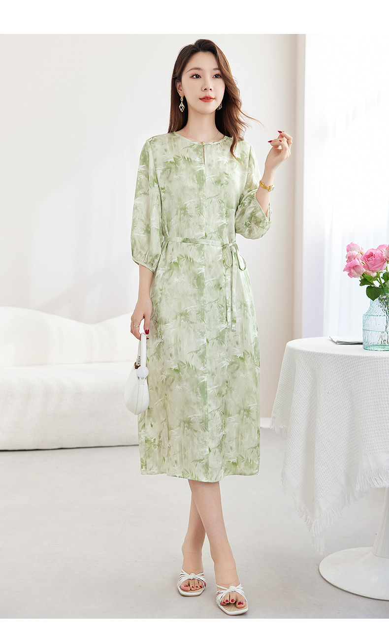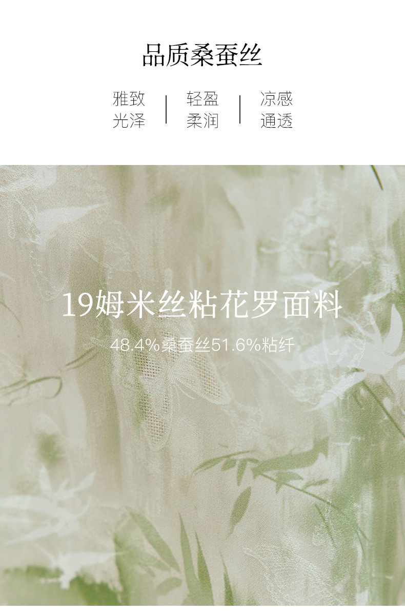 QS-82599730【休闲度假】原创桑蚕丝女装夏季新丝粘花螺真丝印花连衣裙女9730