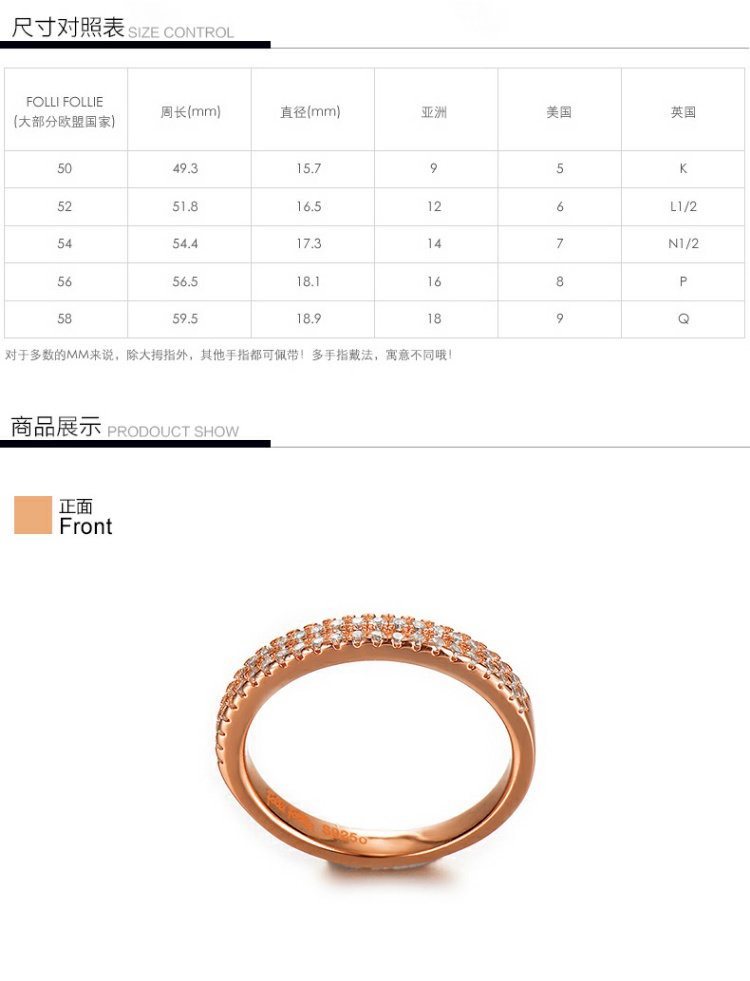 芙丽芙丽/Folli Follie 时尚甜美小清新镶钻戒指指环女