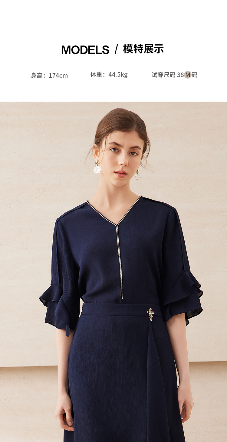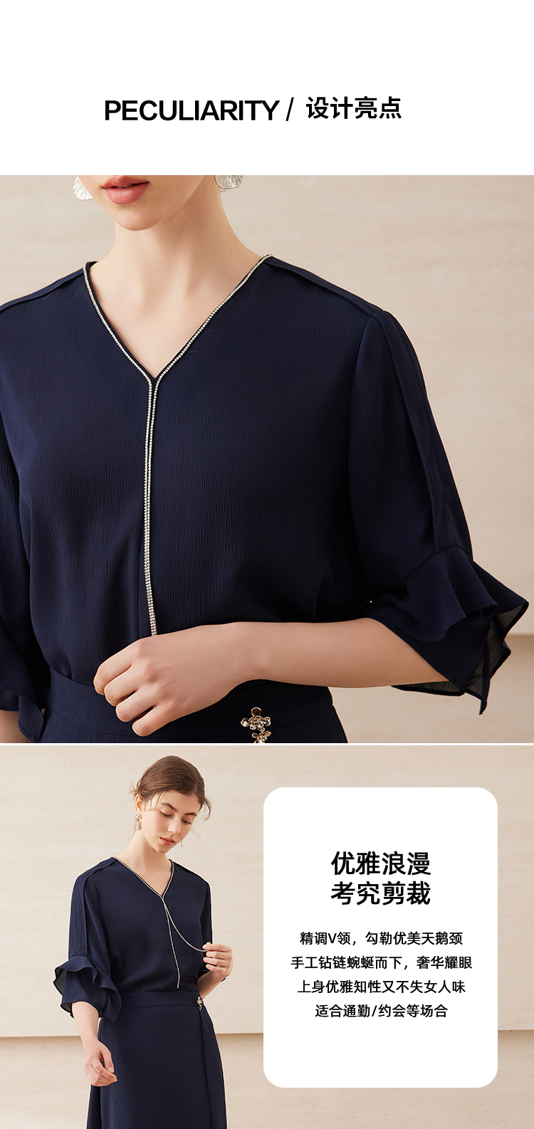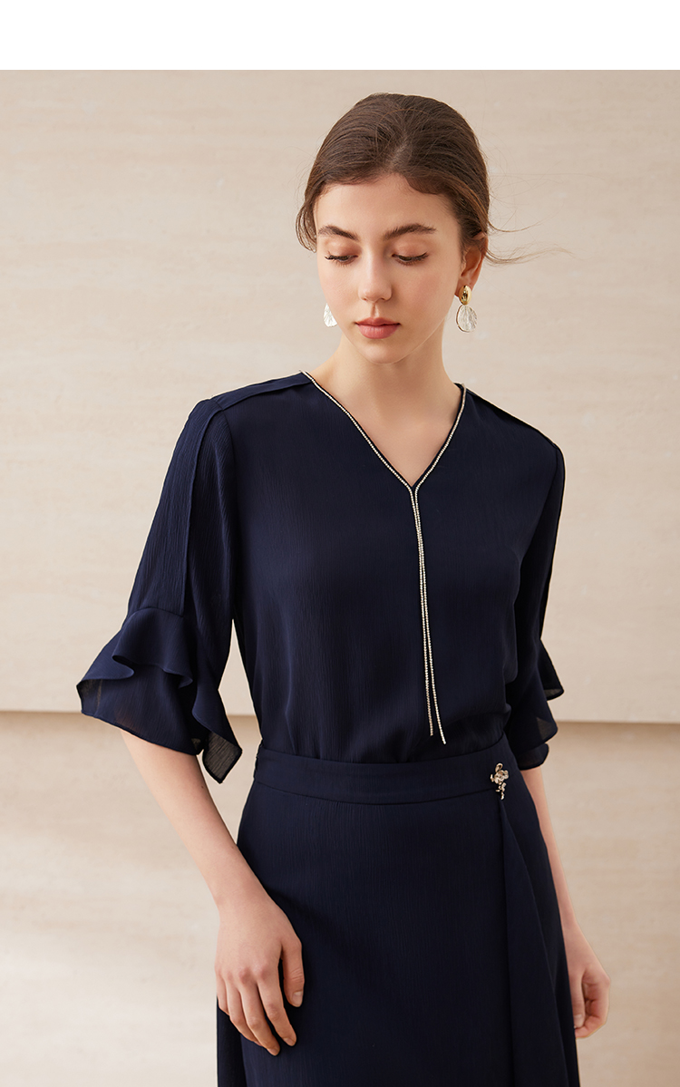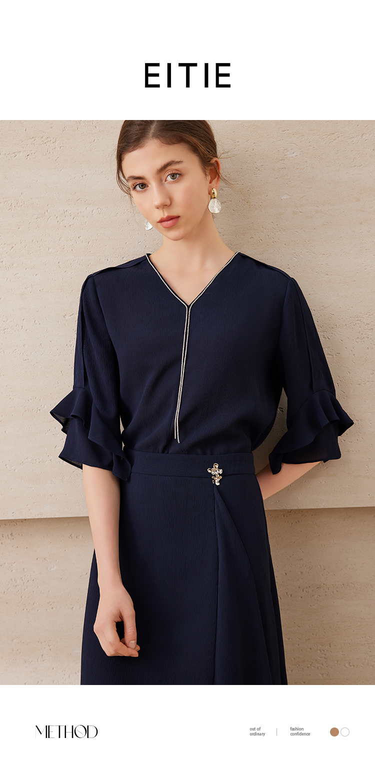 【深蓝色上衣】EITIE爱特爱精致通勤V领中袖衬衫2025夏季新款B2513608