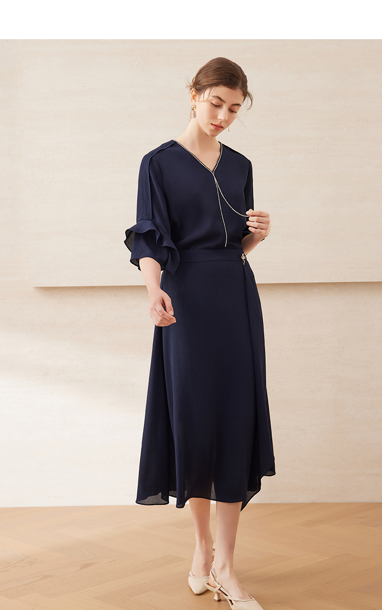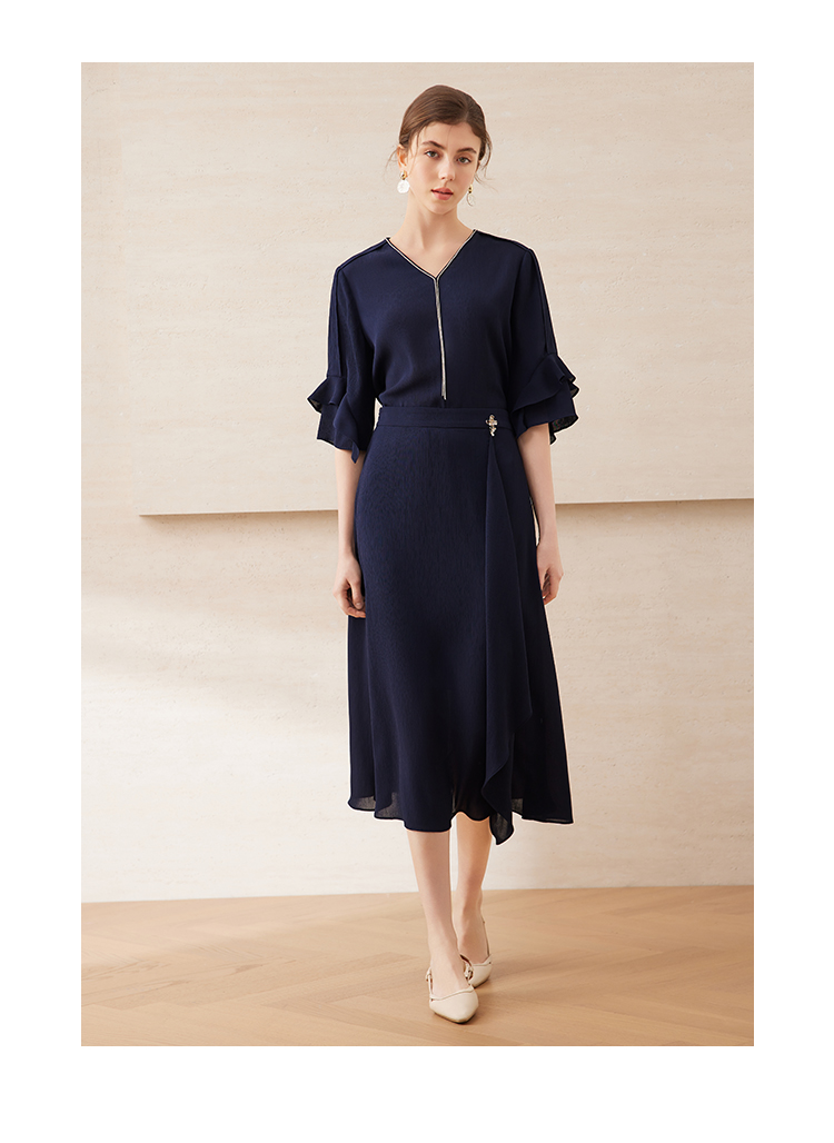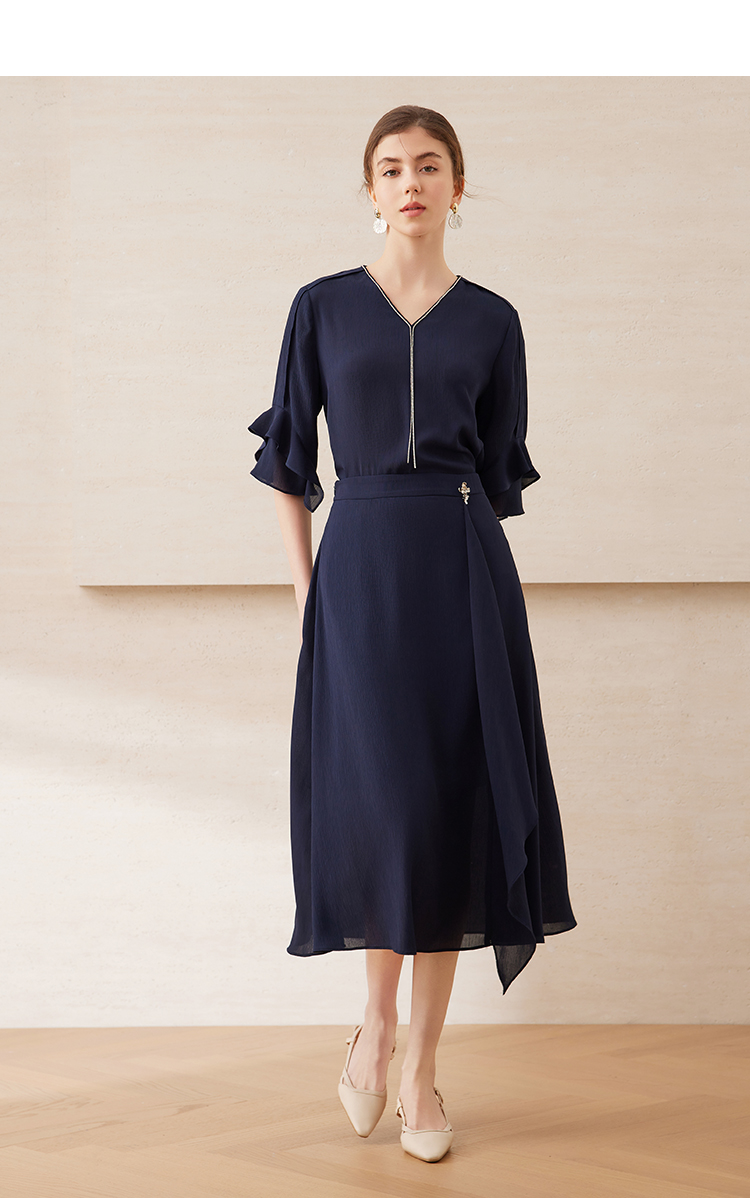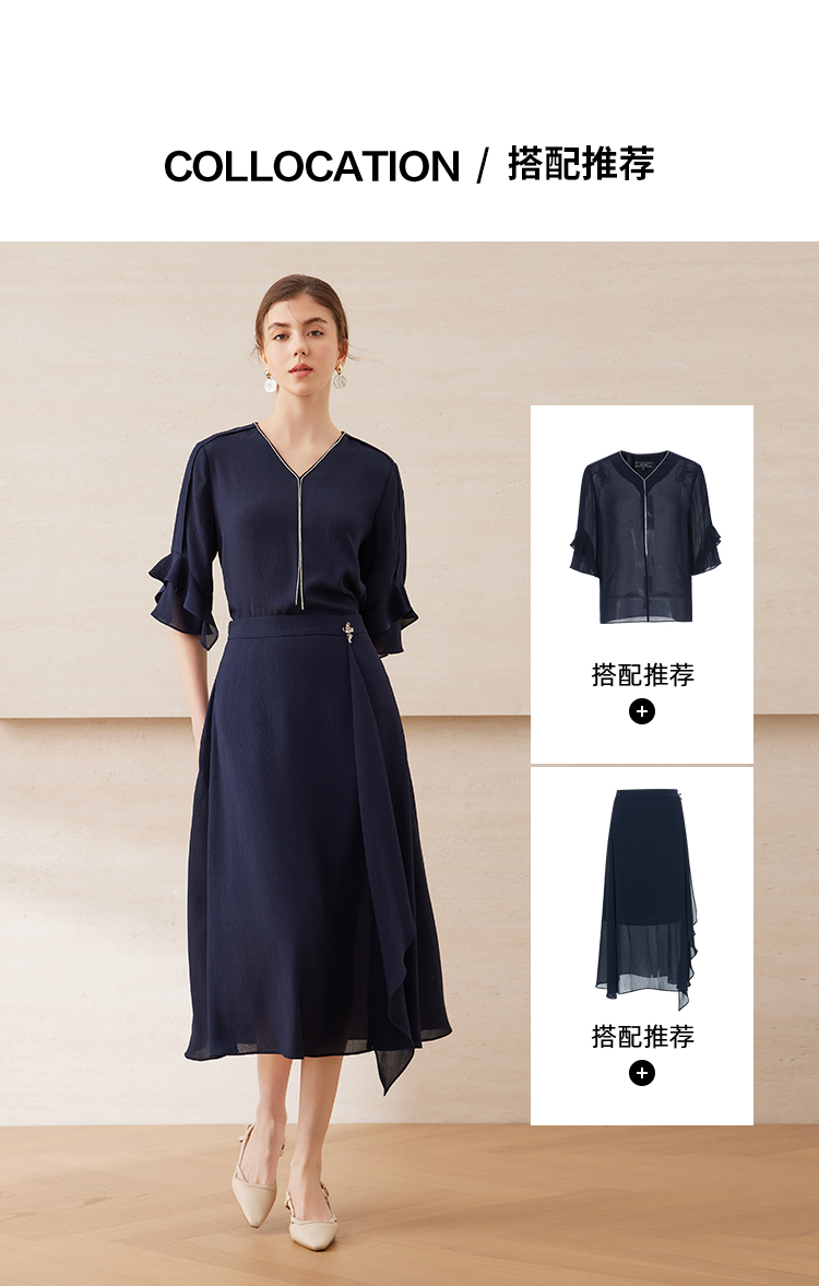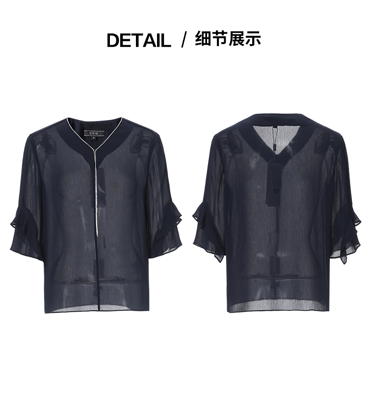 【深蓝色上衣】EITIE爱特爱精致通勤V领中袖衬衫2025夏季新款B2513608