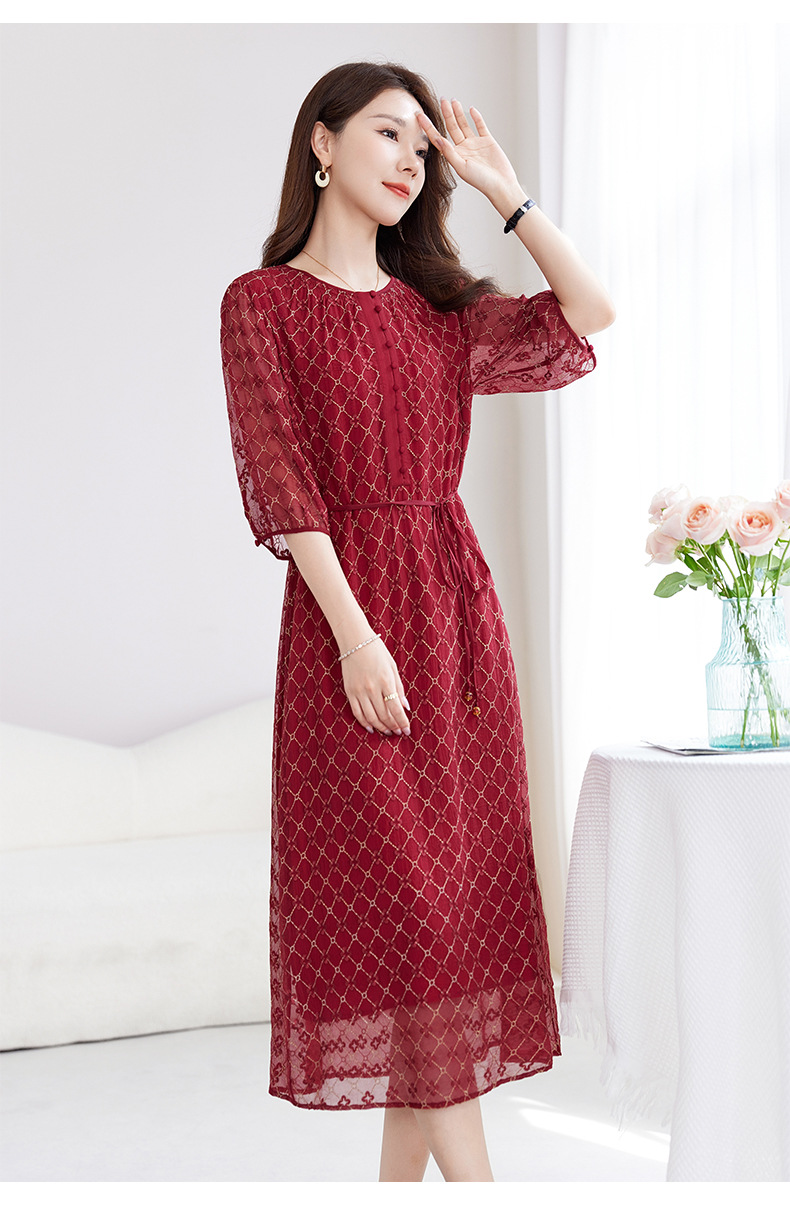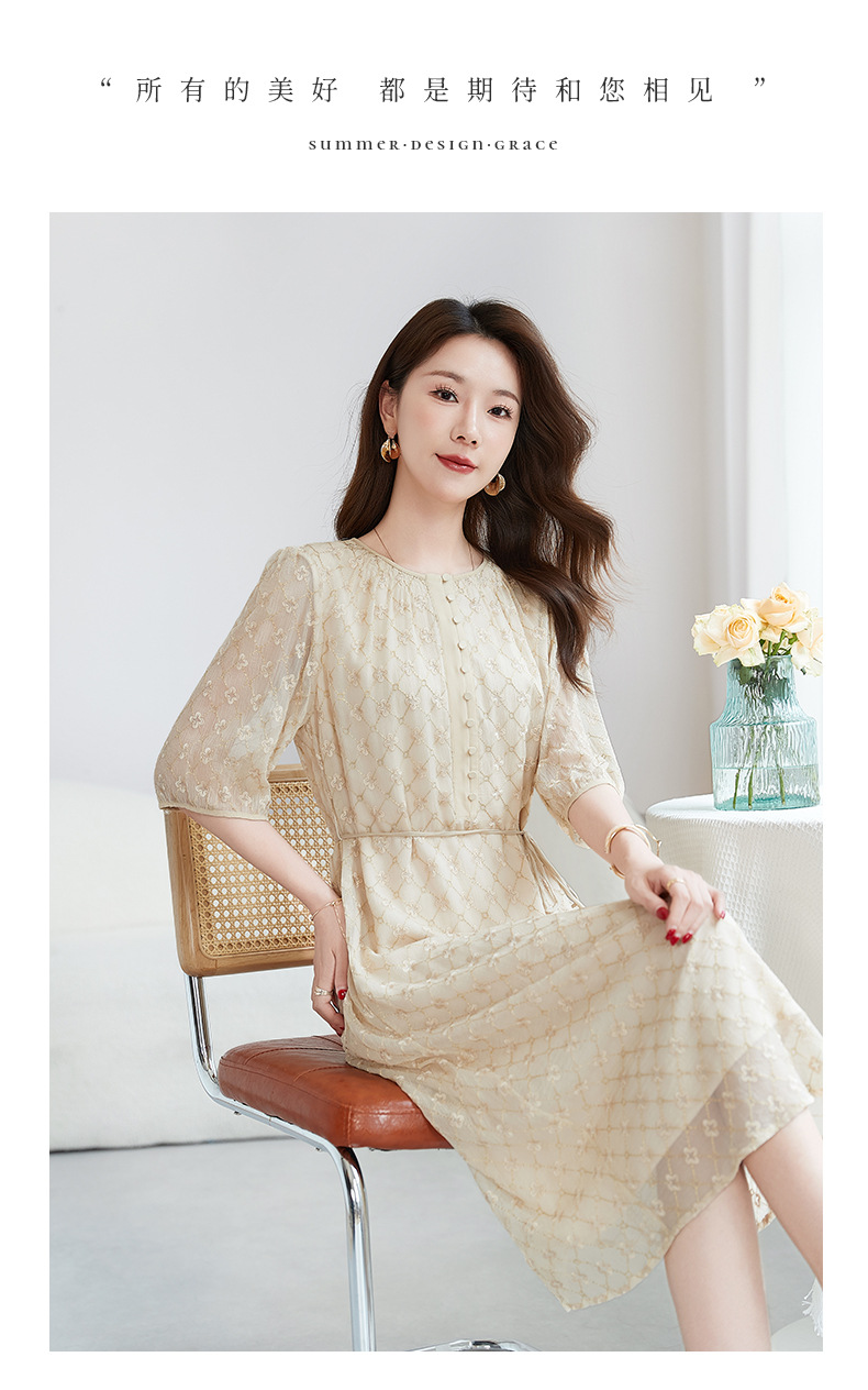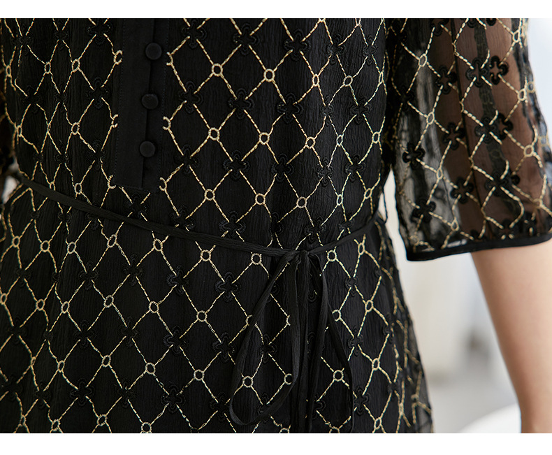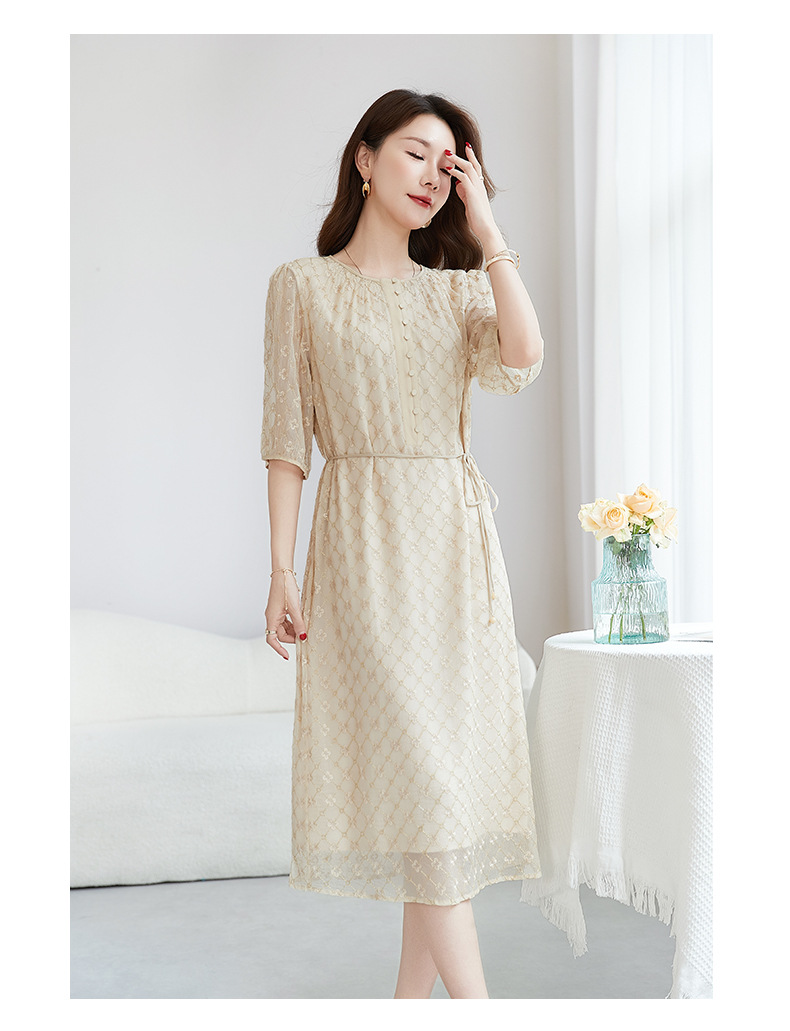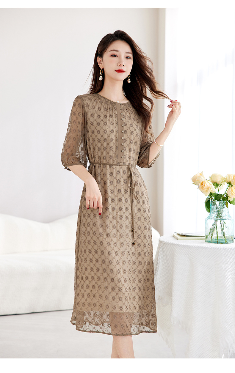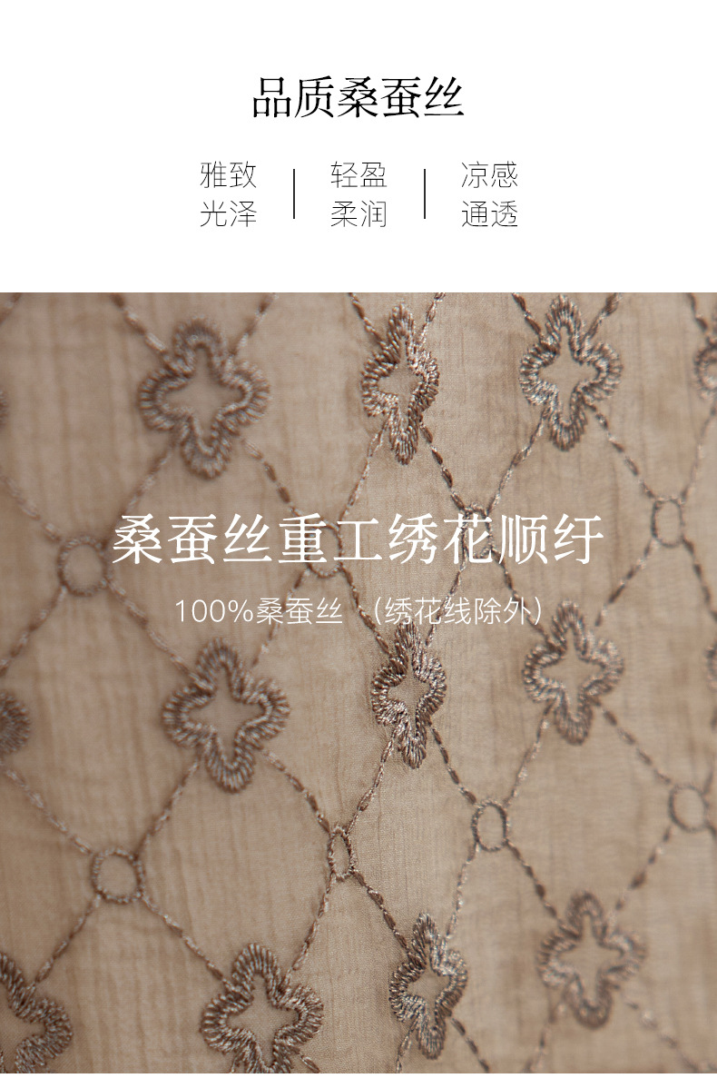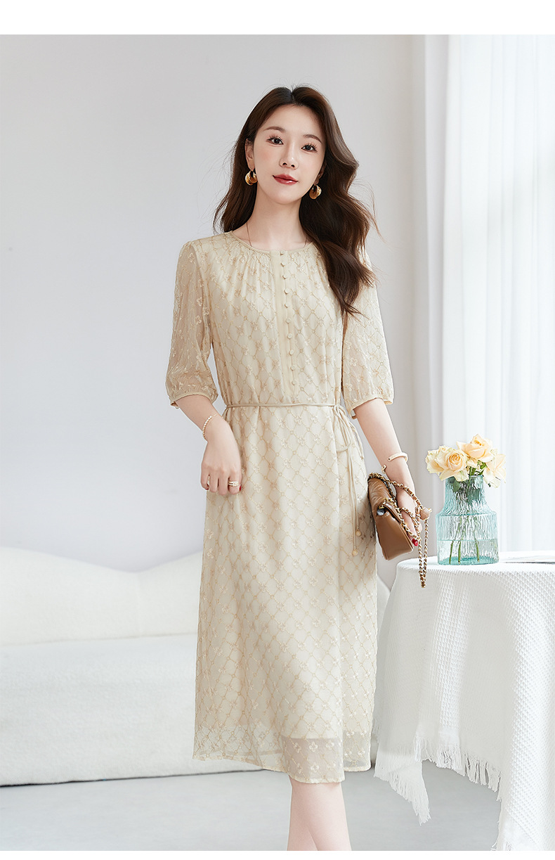 丁摩真丝绣花连衣裙收腰圆领减龄桑蚕丝连衣裙女AL9092